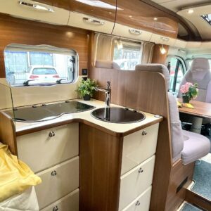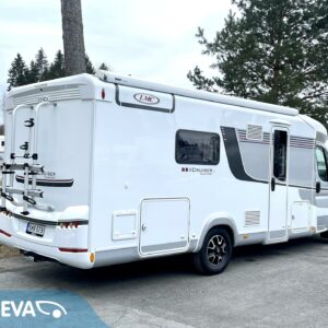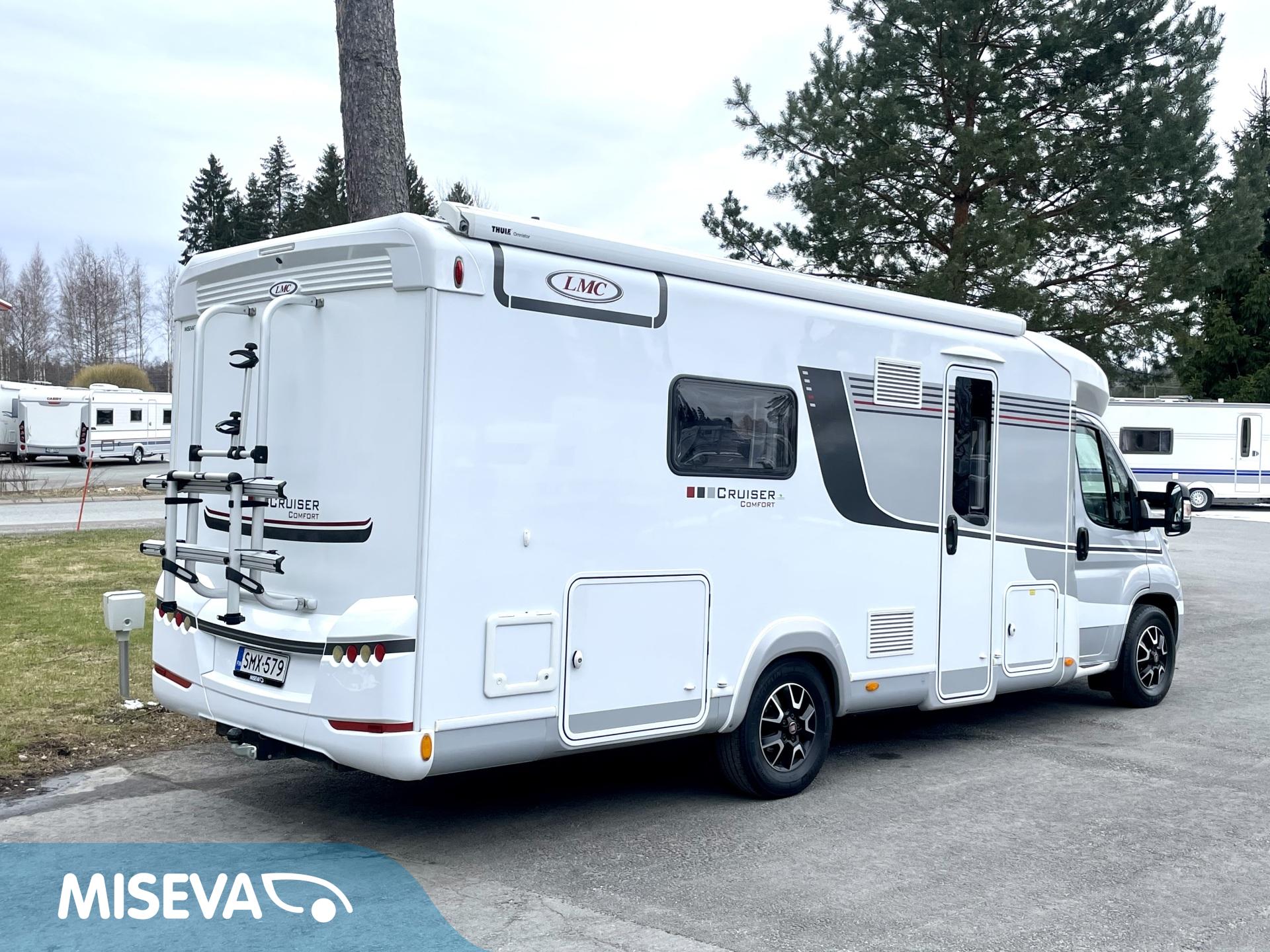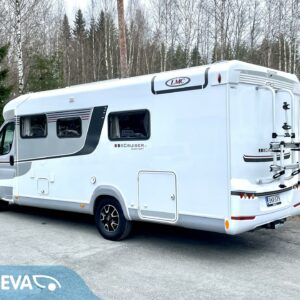On sitten hieno! Tyylikäs LMC:n puoli-integroitu matka-auto taka-WC ja erisllisvuode pohjaratkaisulla. Auton takaosa on pyhitetty kokonaisuudessaan WC-kylpyhuonetiloille. Täältä löytyy erillinen suihkutilansa, sekä säilytystiloja tavaroille. Kylppärin välittömässä läheisyydessä on pitkittäiset erillisvuoteet. Vuoteet saadaan nostettua ylös jolloin näiden alla oleva säilytystila saadaan hyödynnettyä sisäpuolelta. Molempien vuoteiden alle on käynti myös ulkopuolisten luukkujen kautta. L-keittiössä on iso jääkaappi sijoitettuna ihanteelliselle käyttökorkeudelle. Kaapin alapuollella on tilava vetomallinen erillinen pakastinlokero. Etuosaa hallitsee pöytäryhmä minne yhdistyvät kääntyvät ohjaamon penkit, sekä sivusohva. Tässä on hyvin tilaa illan istujaisiin suuremmallekin ryhmälle. Pöytäryhmästä saadaan sijattua myös tilapäisvuode yhdelle henkilölle. Katon kaksi isoa kattoluukkua antaa luonnonvalon suorastaan tulvia sisätiloihin. Auton lämmitysjärjestelmänä on Alden tehokas ja tasaisen lämmön tuottava nestekeskuslämmitys. Luonnollisesti sähkövastukset (sähköpatruuna) ja lämminvesiboileri on integroitu samaan lämmitinyksikköön. Extrana vielä lämmönvaihdin Alden ja moottorin välillä. Sisus on tyylikäs ja moderni. Valaistusta sisätiloihin on tarjolla vähintäänkin riittävästi. Jotta matkan taittaminen olisi mahdollisimman vaivatonta ja mukavaa, niin ohjaamosta löytyy automaattivaihteisto ja vakionopeuden säädin ja tietysti ilmastointi. Viihdepuolikin on kohdallaan Zenecin multimediaviihdejärjestelmän ansiosta ja tämä hoitaa myös navin, sekä peruutuskameran virkaa. Sitten vielä pihan puolen varusteista mainittakoon markiisi, pyöräteline ja automaattinen kaasupullon vaihtaja. Tekisi mieli käyttää jopa vanhaa sanontaa ”vaihtoehto uudelle”, ei se ainakaan visuaalisen kunnon puolesta paljon pieleen mene, toki kilometrejä on hieman enemmin kun uudessa. Saa tulla ihastumaan …