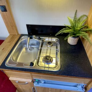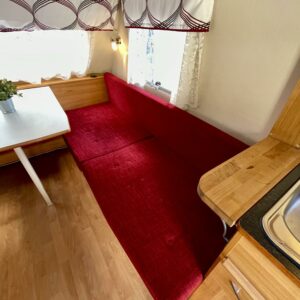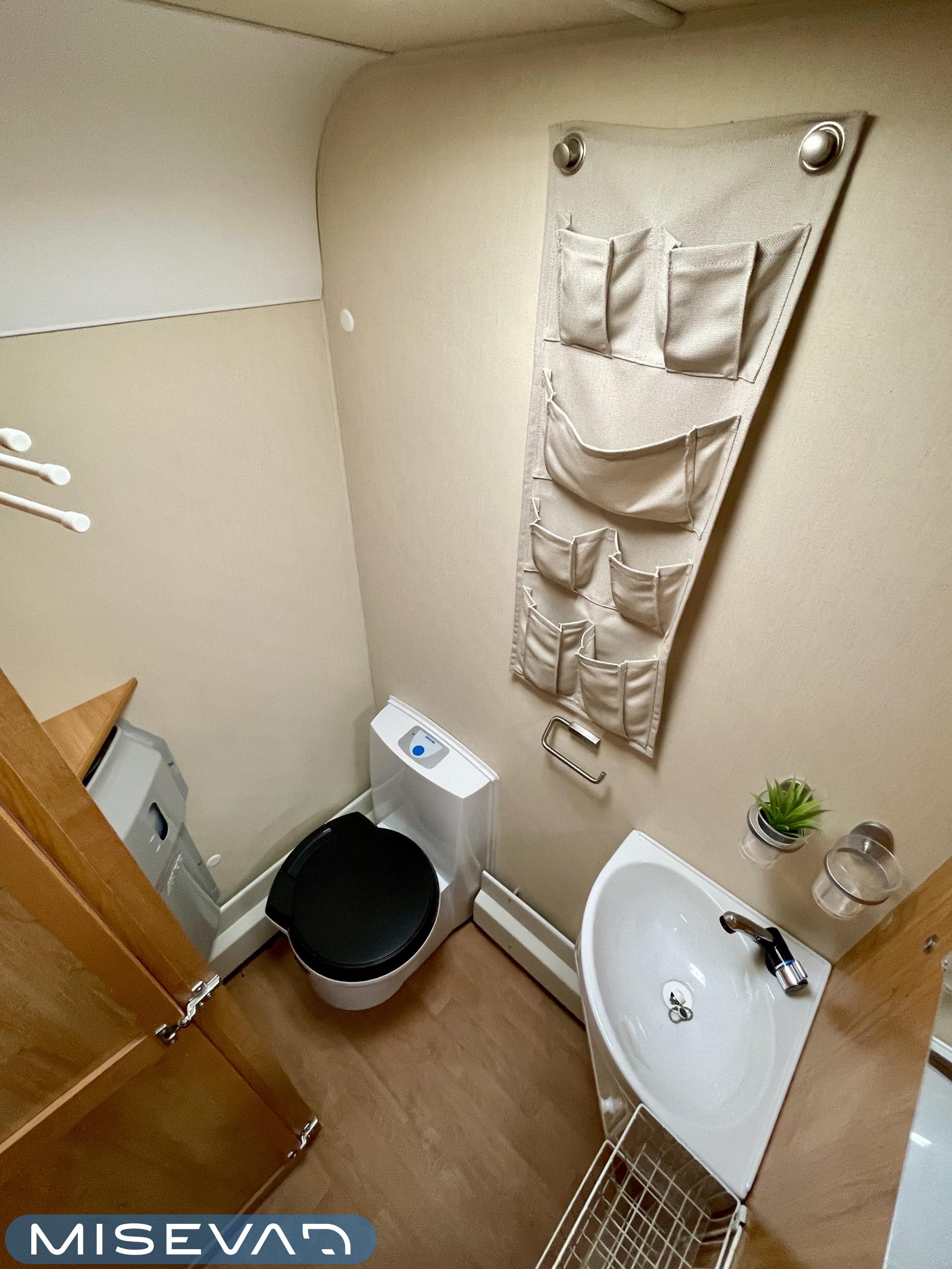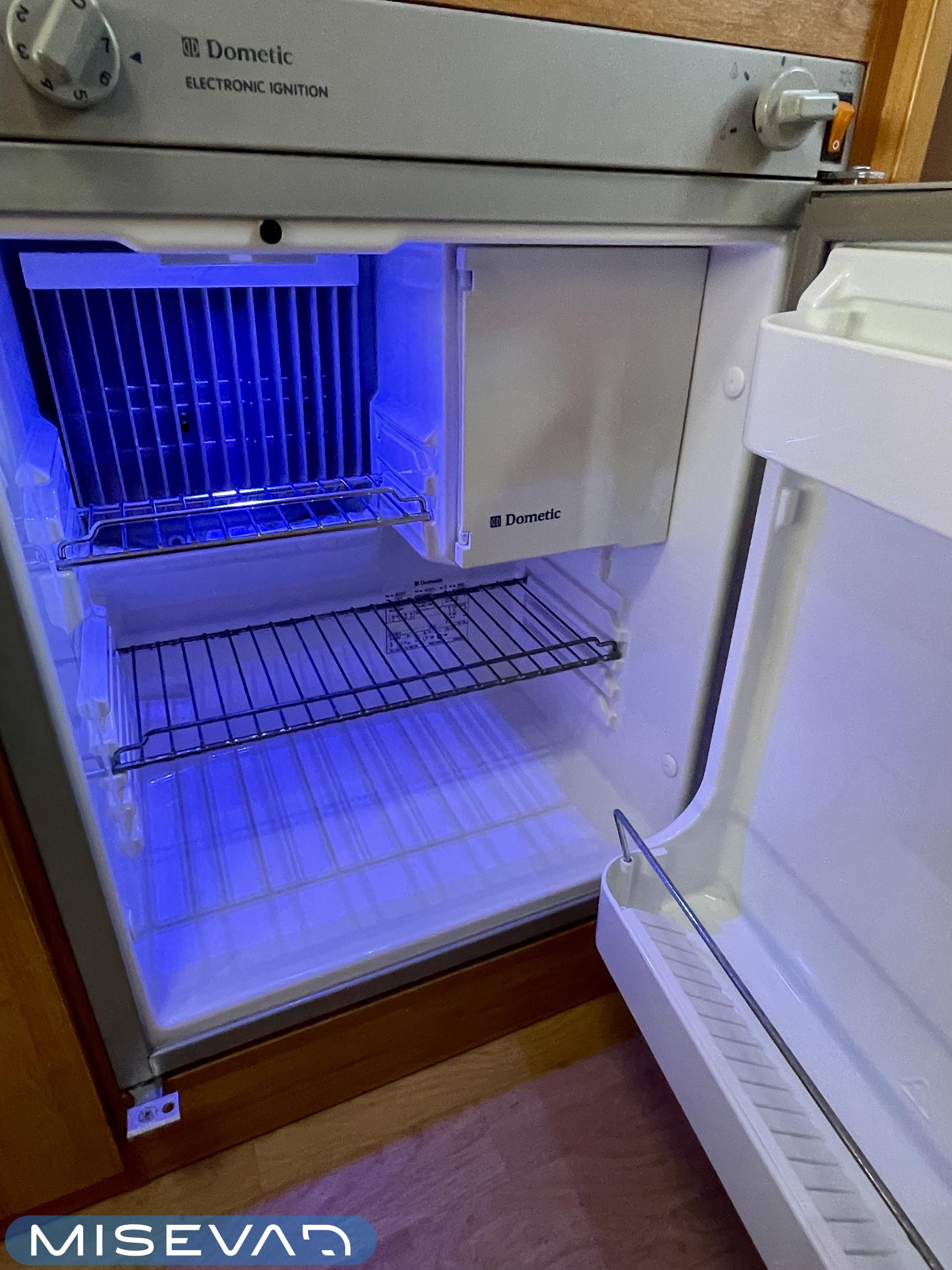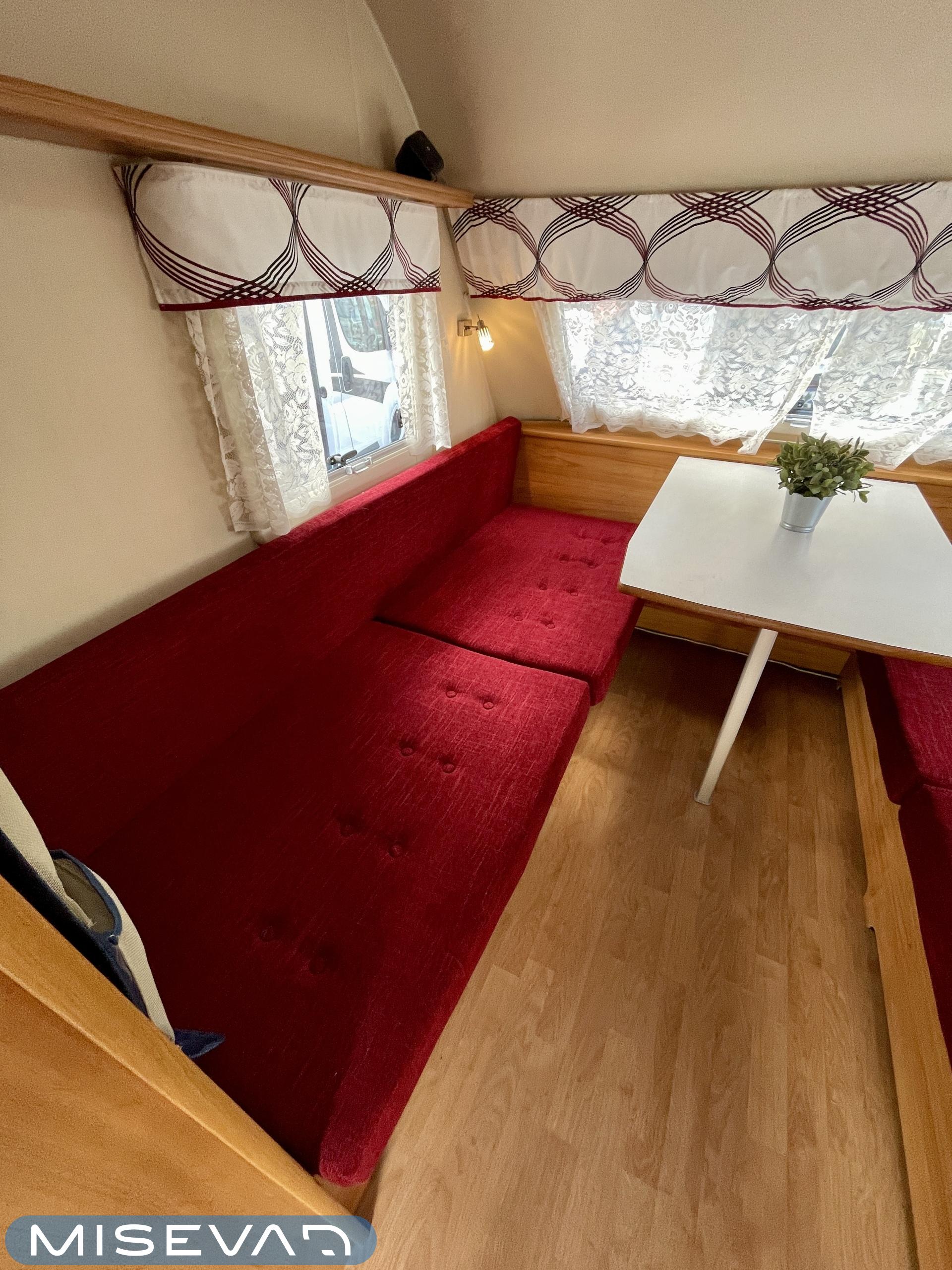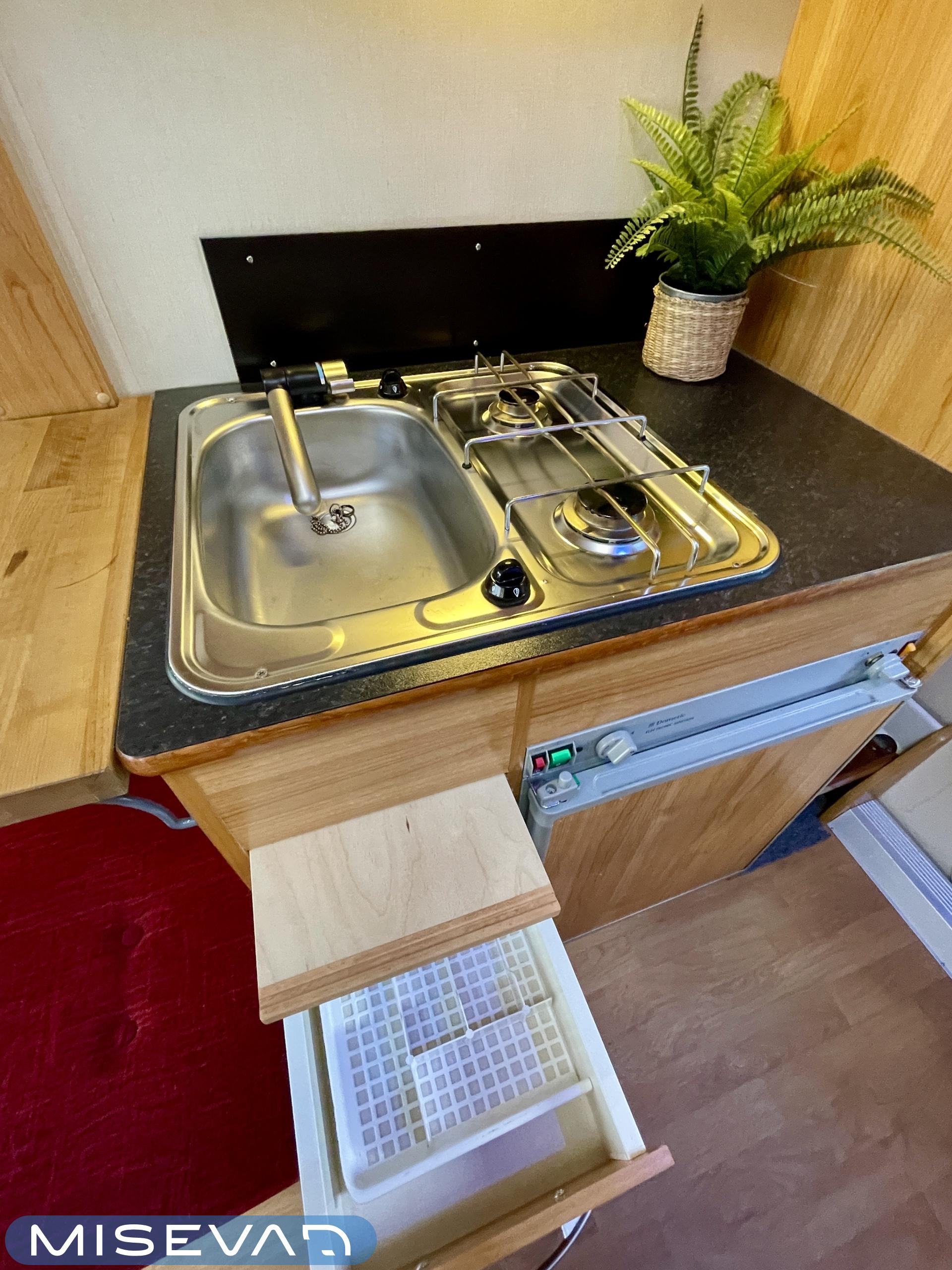 Lämminvesiboileri, Alde- nestekiertoinen keskuslämmitys, Alde, Sähköpatruuna, Jääkaappi, Kasetti WC, Kasettiverhot, Kattoluukku, Liesi, Nestekiertolämmitys, Pakastelokero, Pesuallas, Radio, TV-antenni tai lautasantenni, Tukijalat, televisioteline