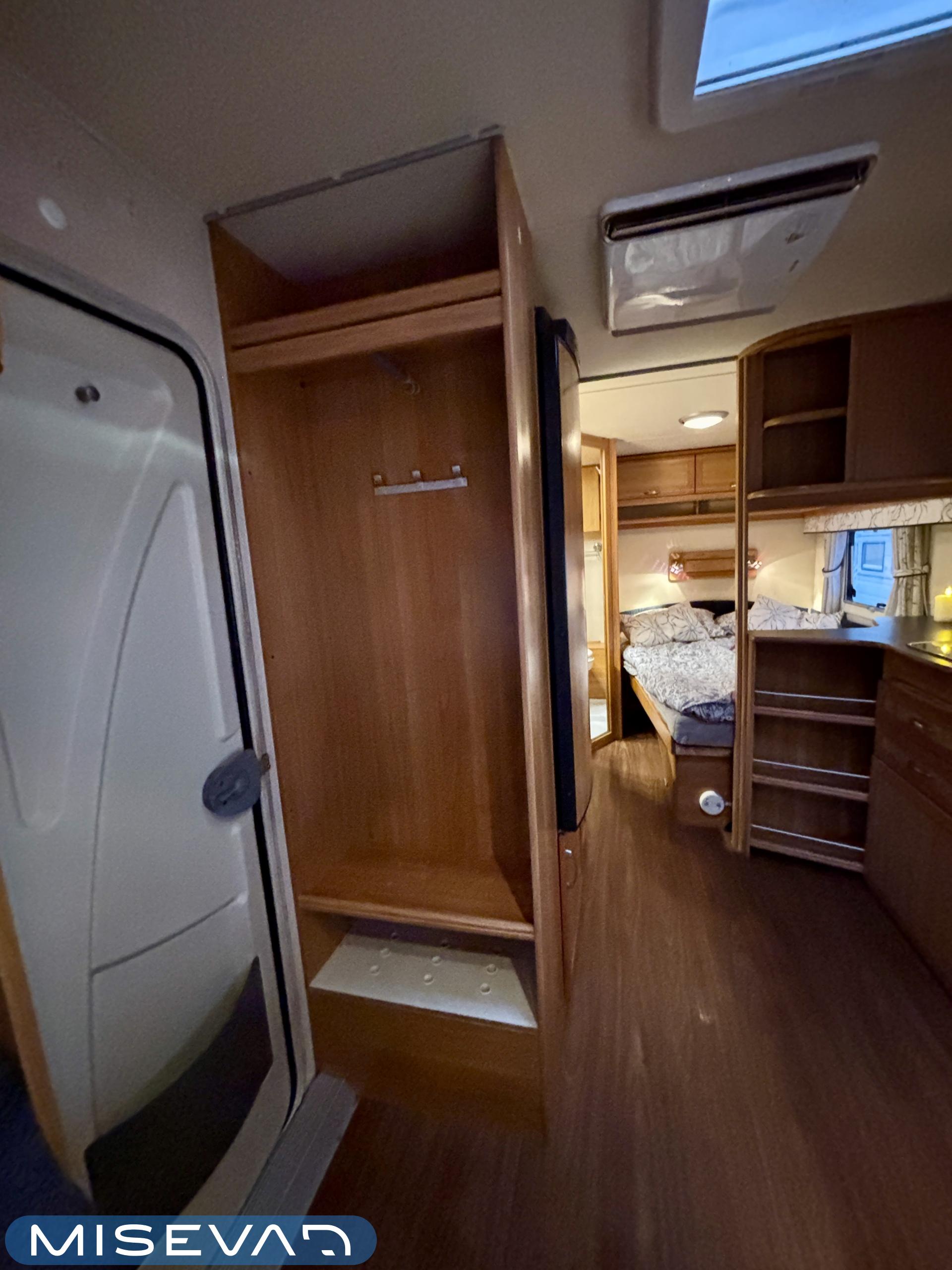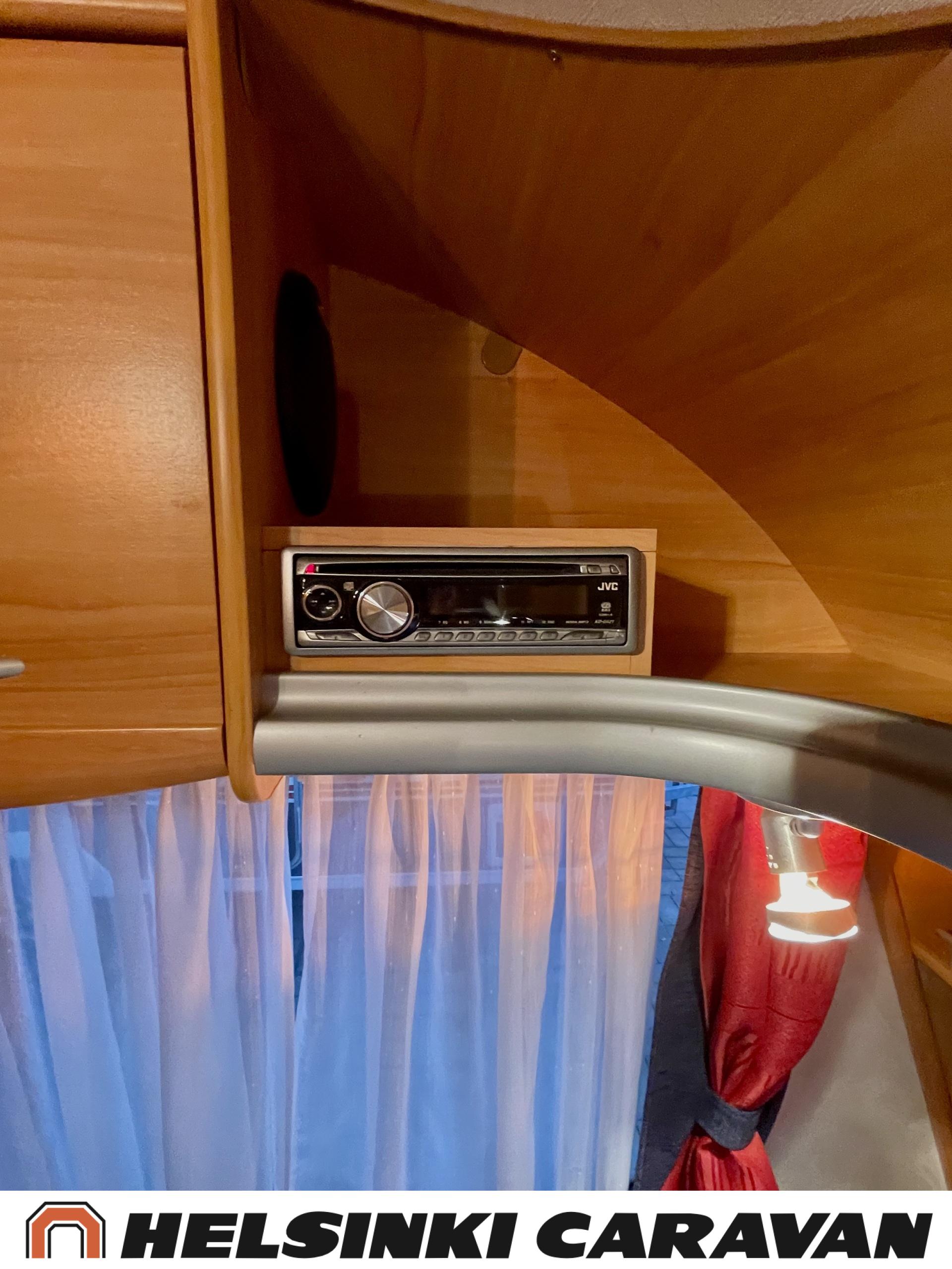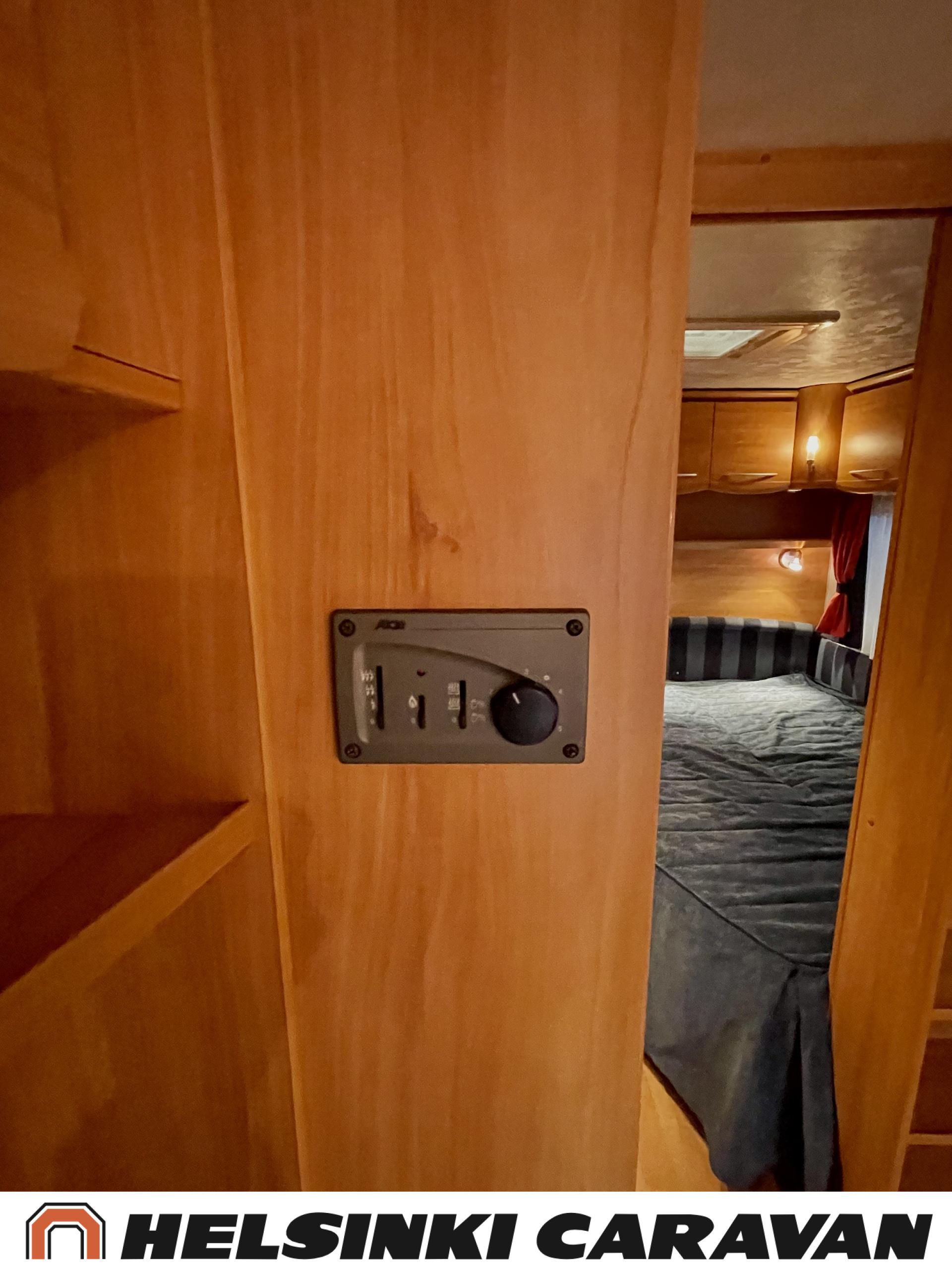 Alde, Sähköpatruuna, Nestekiertolämmitys, Kaasu-uuni, mover, Erikoisvanteet, Eristetty harmaavesisäiliö, Jääkaappi, Kasetti WC, Kasettiverhot, Kattoluukku, Liesi, Lämminvesiboileri, Markiisi, Pakastelokero, Parivuode, Pesuallas, Radio, Tukijalat, Lattialämmitys (nestekierto), Ilmastointi (asuintila), Kesärenkaat, kwh-mittari, kaasun ulosotto, sähkön ulosotto