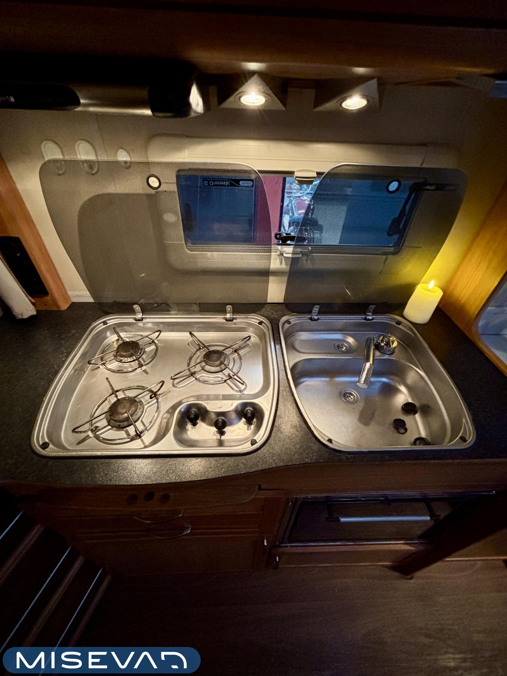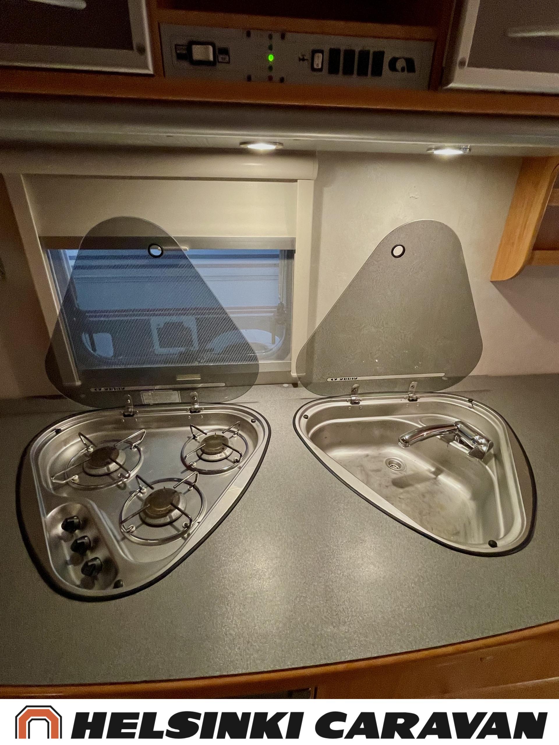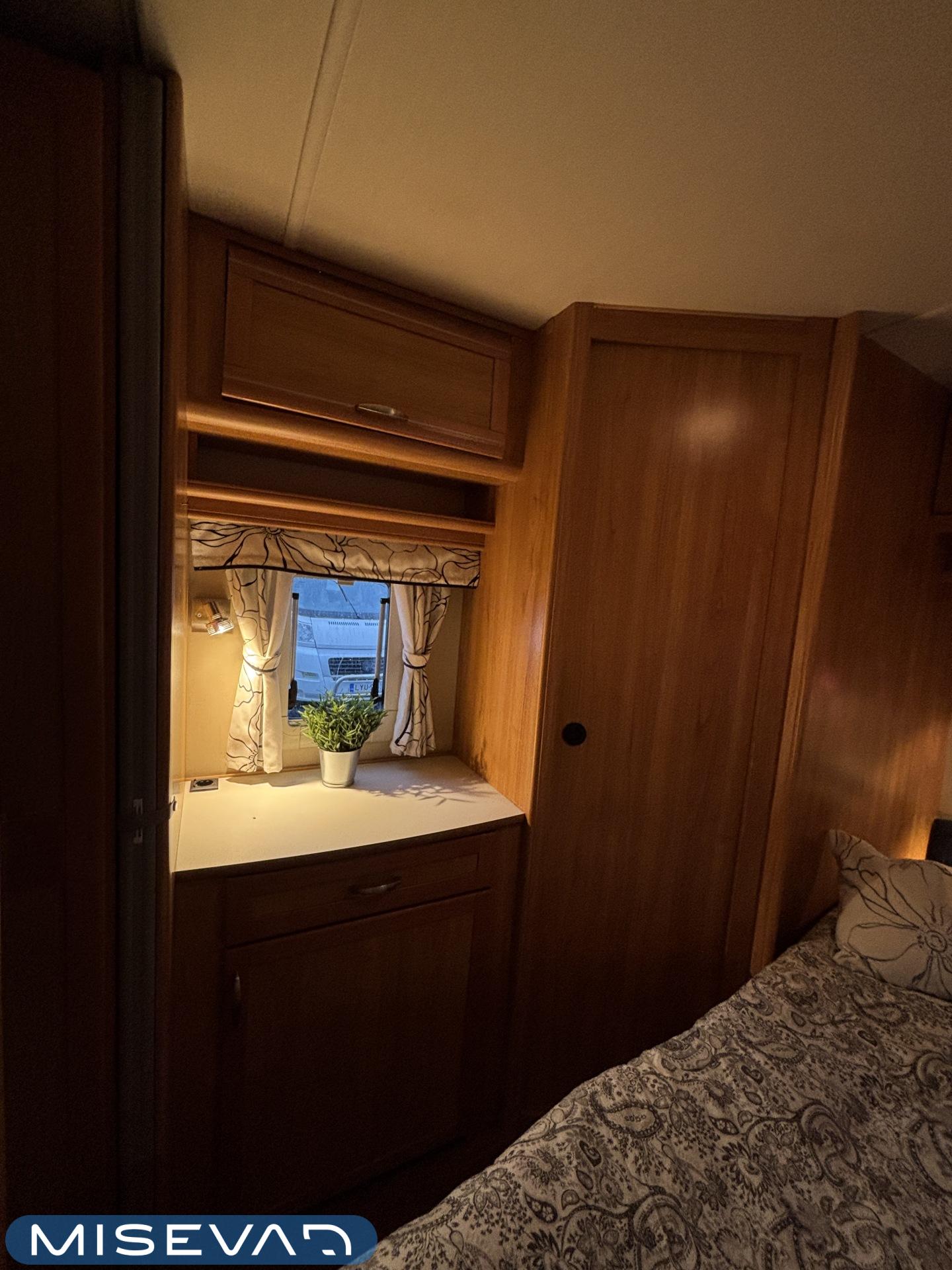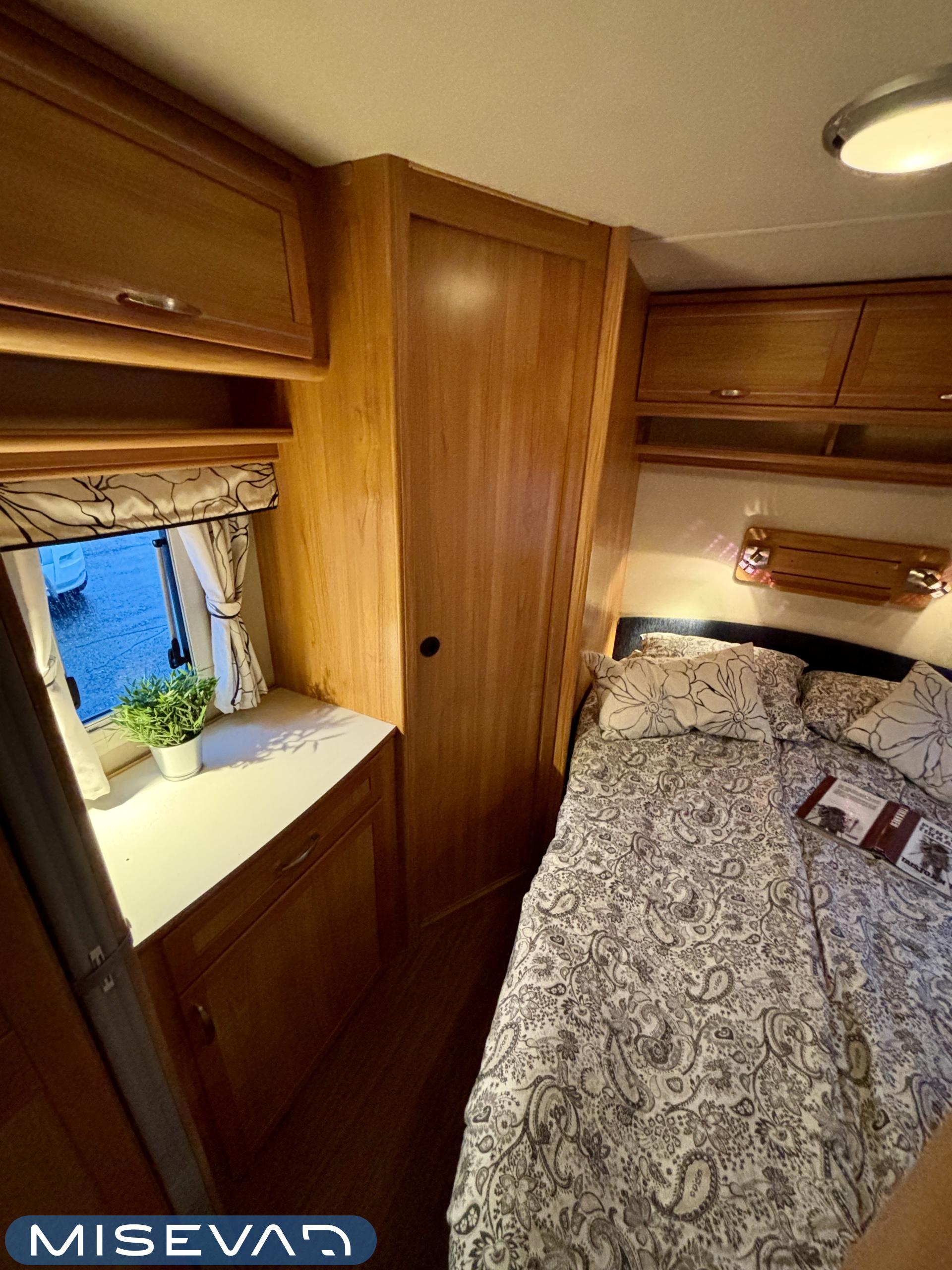 Alde, Sähköpatruuna, Nestekiertolämmitys, Kaasu-uuni, mover, Erikoisvanteet, Eristetty harmaavesisäiliö, Jääkaappi, Kasetti WC, Kasettiverhot, Kattoluukku, Liesi, Lämminvesiboileri, Markiisi, Pakastelokero, Parivuode, Pesuallas, Radio, Tukijalat, Lattialämmitys (nestekierto), Ilmastointi (asuintila), Kesärenkaat, kwh-mittari, kaasun ulosotto, sähkön ulosotto