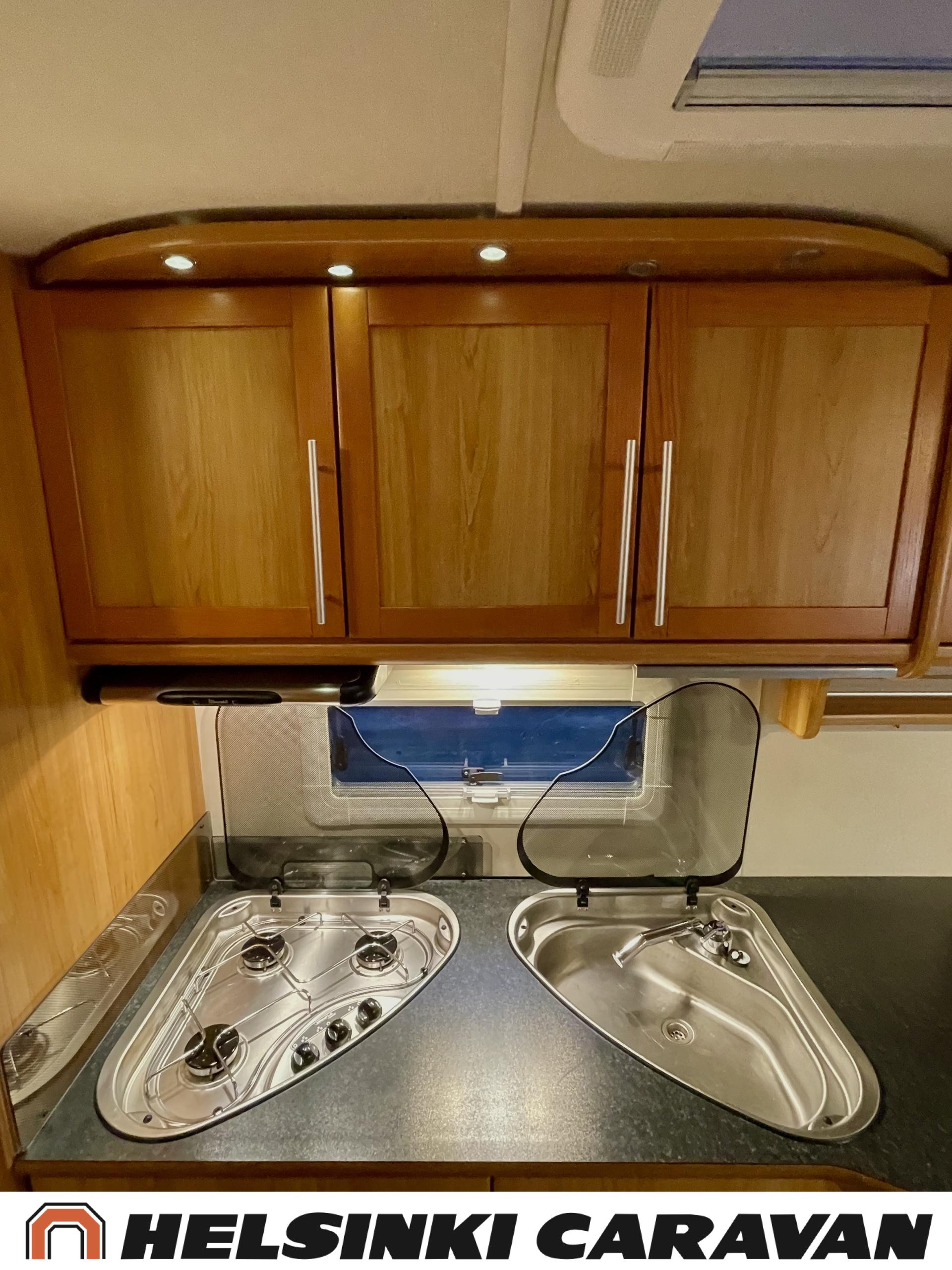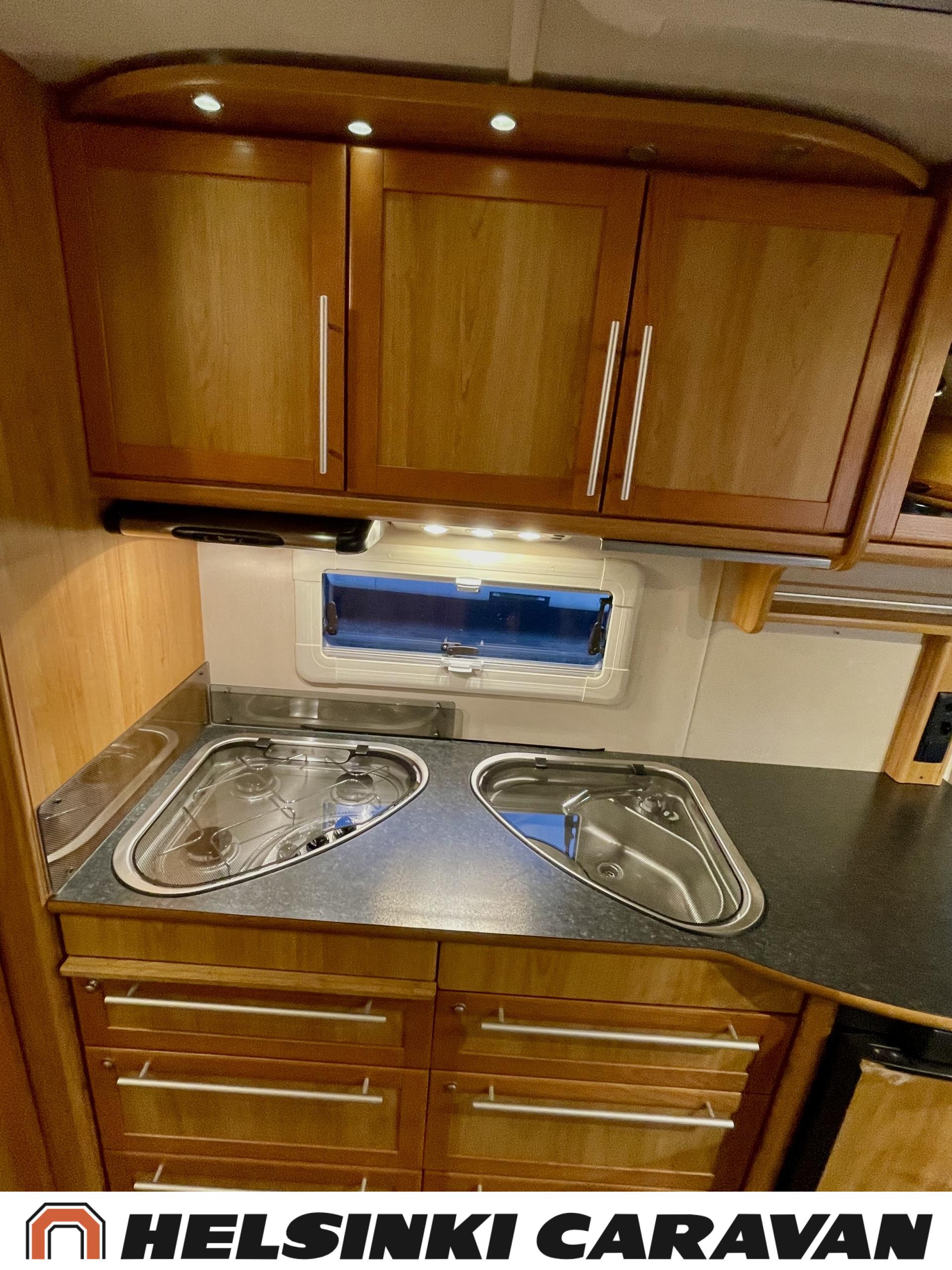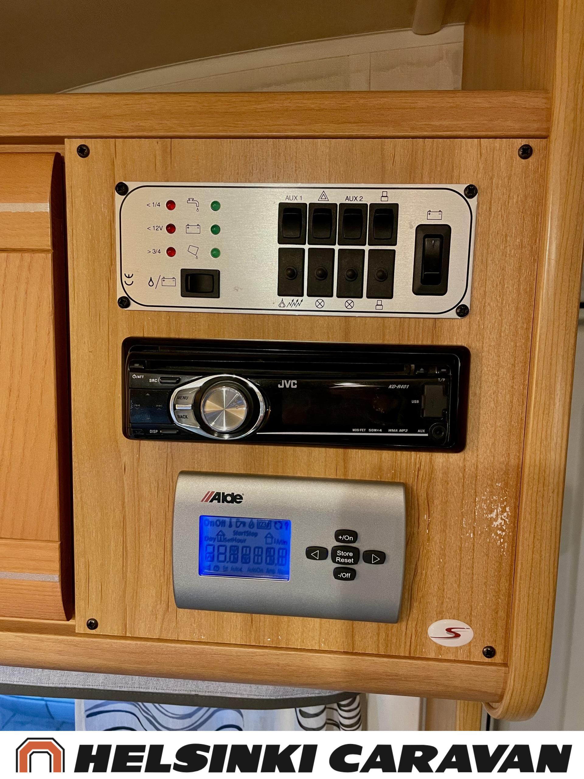 Alde, Sähköpatruuna, Nestekiertolämmitys, Kaasu-uuni, mover, Erikoisvanteet, Eristetty harmaavesisäiliö, Jääkaappi, Kasetti WC, Kasettiverhot, Kattoluukku, Liesi, Lämminvesiboileri, Markiisi, Pakastelokero, Parivuode, Pesuallas, Radio, Tukijalat, Lattialämmitys (nestekierto), Ilmastointi (asuintila), Kesärenkaat, kwh-mittari, kaasun ulosotto, sähkön ulosotto