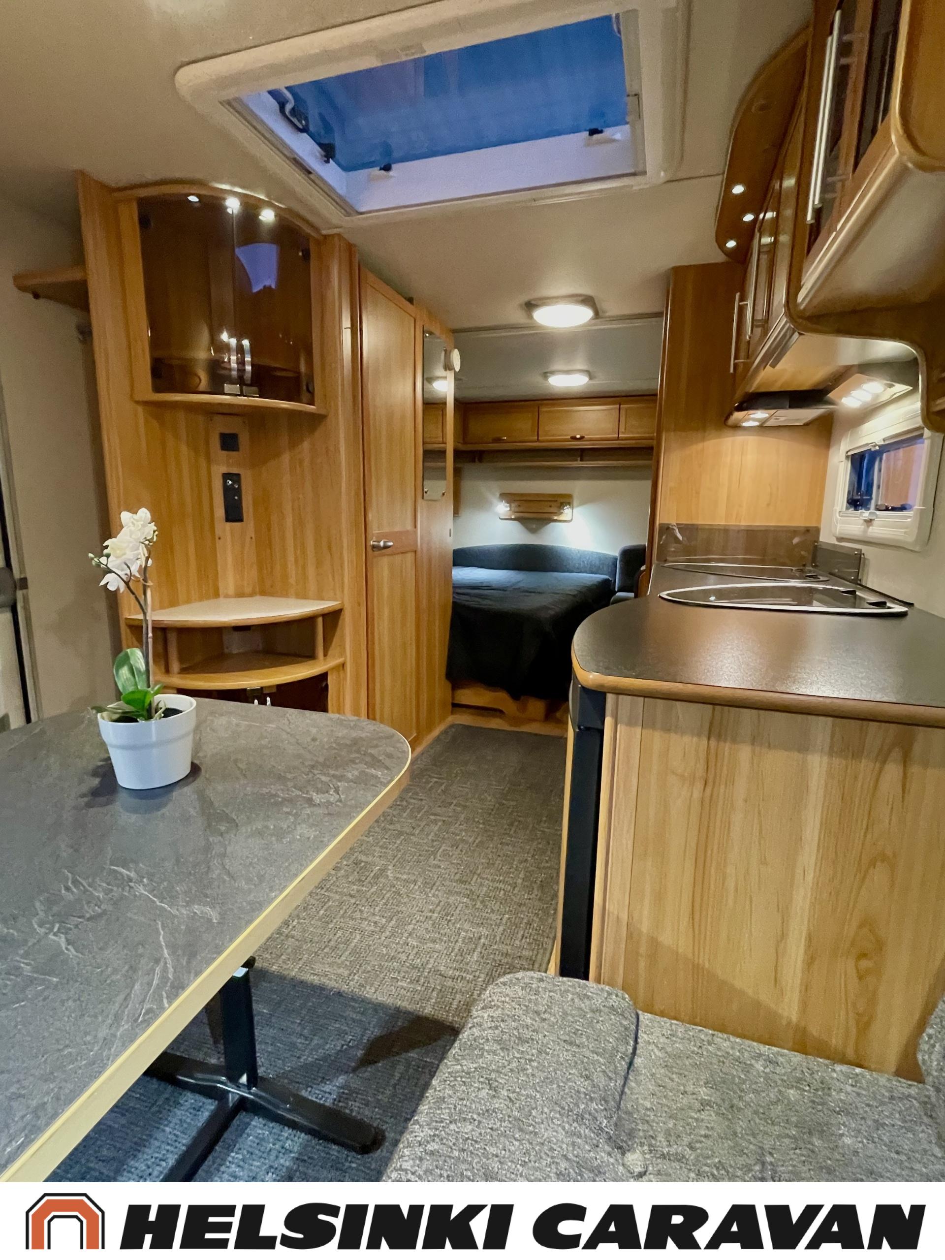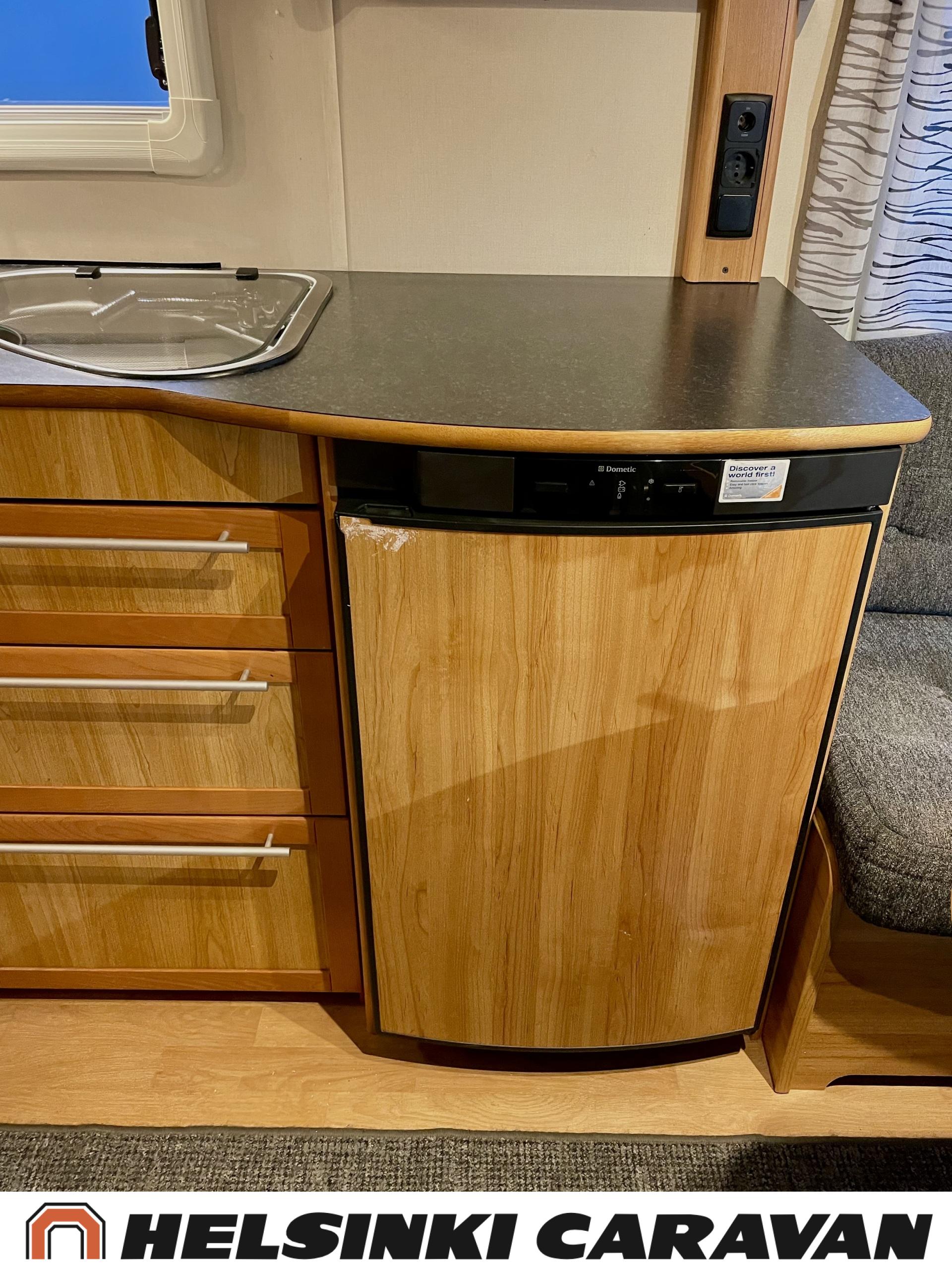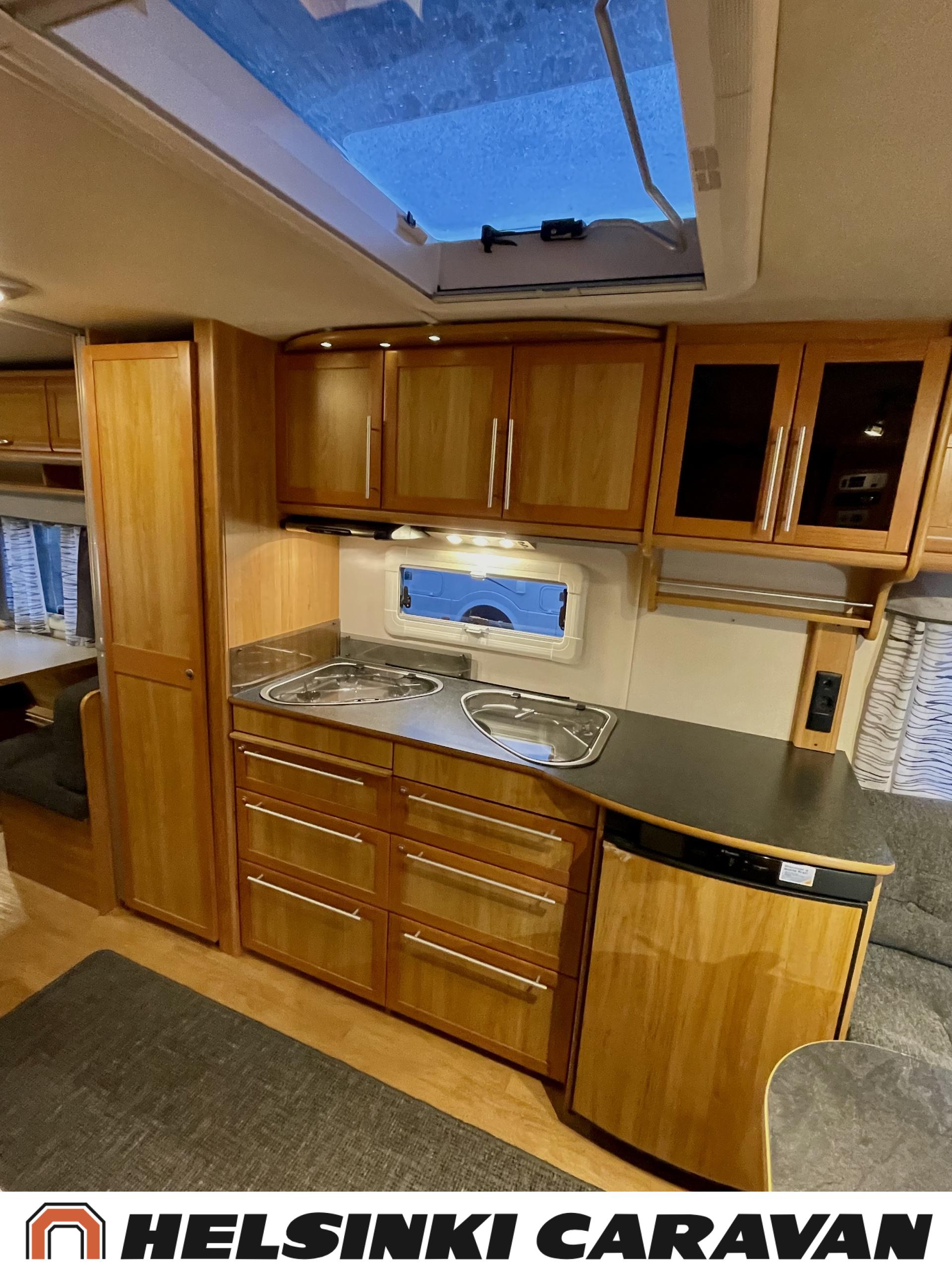 Alde, Sähköpatruuna, Nestekiertolämmitys, Kaasu-uuni, mover, Erikoisvanteet, Eristetty harmaavesisäiliö, Jääkaappi, Kasetti WC, Kasettiverhot, Kattoluukku, Liesi, Lämminvesiboileri, Markiisi, Pakastelokero, Parivuode, Pesuallas, Radio, Tukijalat, Lattialämmitys (nestekierto), Ilmastointi (asuintila), Kesärenkaat, kwh-mittari, kaasun ulosotto, sähkön ulosotto