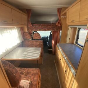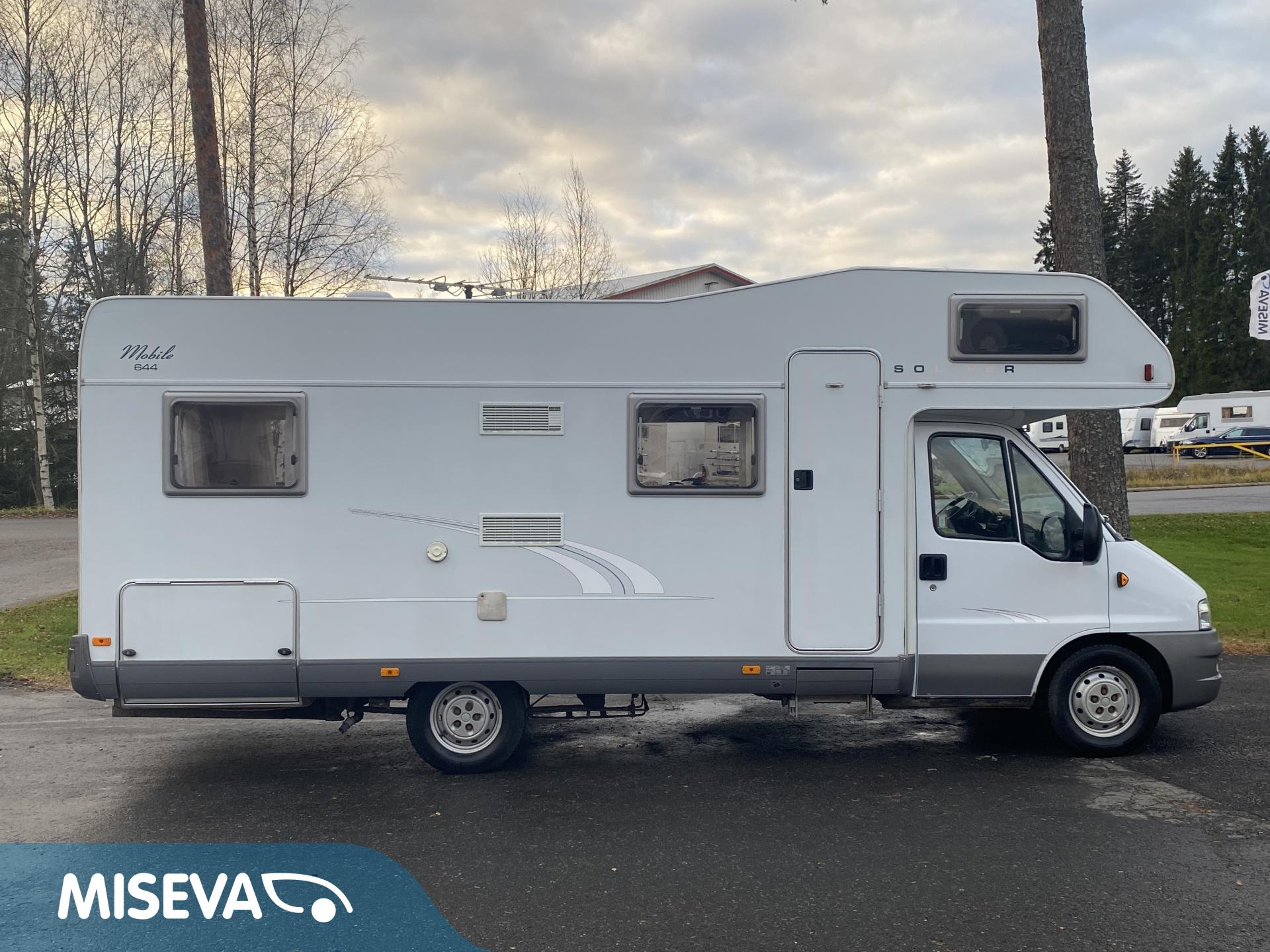 Suomeen uutena yksityishenkilölle vuonna 2002 rekisteröity alkovimallinen mukavat tilat tarjoava laatu Solikka. Palvellut samaa tyytyväistä omistajaa yli 20 vuotta ja varmasti palvelee myös seuraavaa käyttäjäänsä oikeinkin hyvin. Auton takaosasta löytyy poikittainen parivuode. Vaikka vuode on matalaa mallia, niin silti vuoteen alle jää todella hyvät säilytystilat ja sinne on käynti myös ulkopuolisen luukun kautta. Keskelle on sijoitettu WC/kylpyhuonetilat, sekä säilytystiloja. Etuosaa hallitsee vastakkain istuttava pöytäryhmä mistä saadaan sijattu vuode kahdelle hengelle. Ohjaamon päältä löytyy vielä tilava alkovivuode kahdelle henkilölle. Lämmitysjärjestelmänä on Alden nestekeskuslämmitys ja mukavuusvarusteena lisäksi sähköinen lattianlämmitys. Aika siistissä ja ryhdikkäässä kunnossa niin päältä kun sisältäkin. Toki jo reilu 20 vuotta on hiukan käytön jälkiä ja patinaa hipiään tuonut mutta näin se vähän tahtoo väkisin tapahtua.
