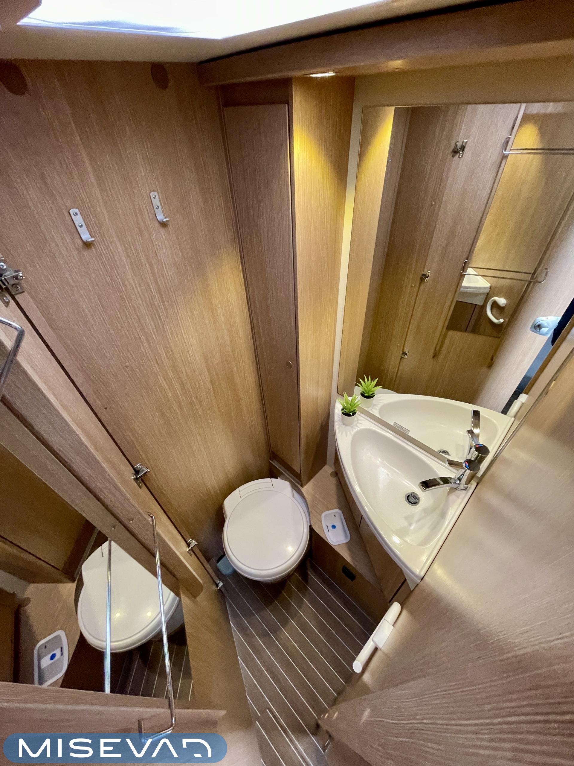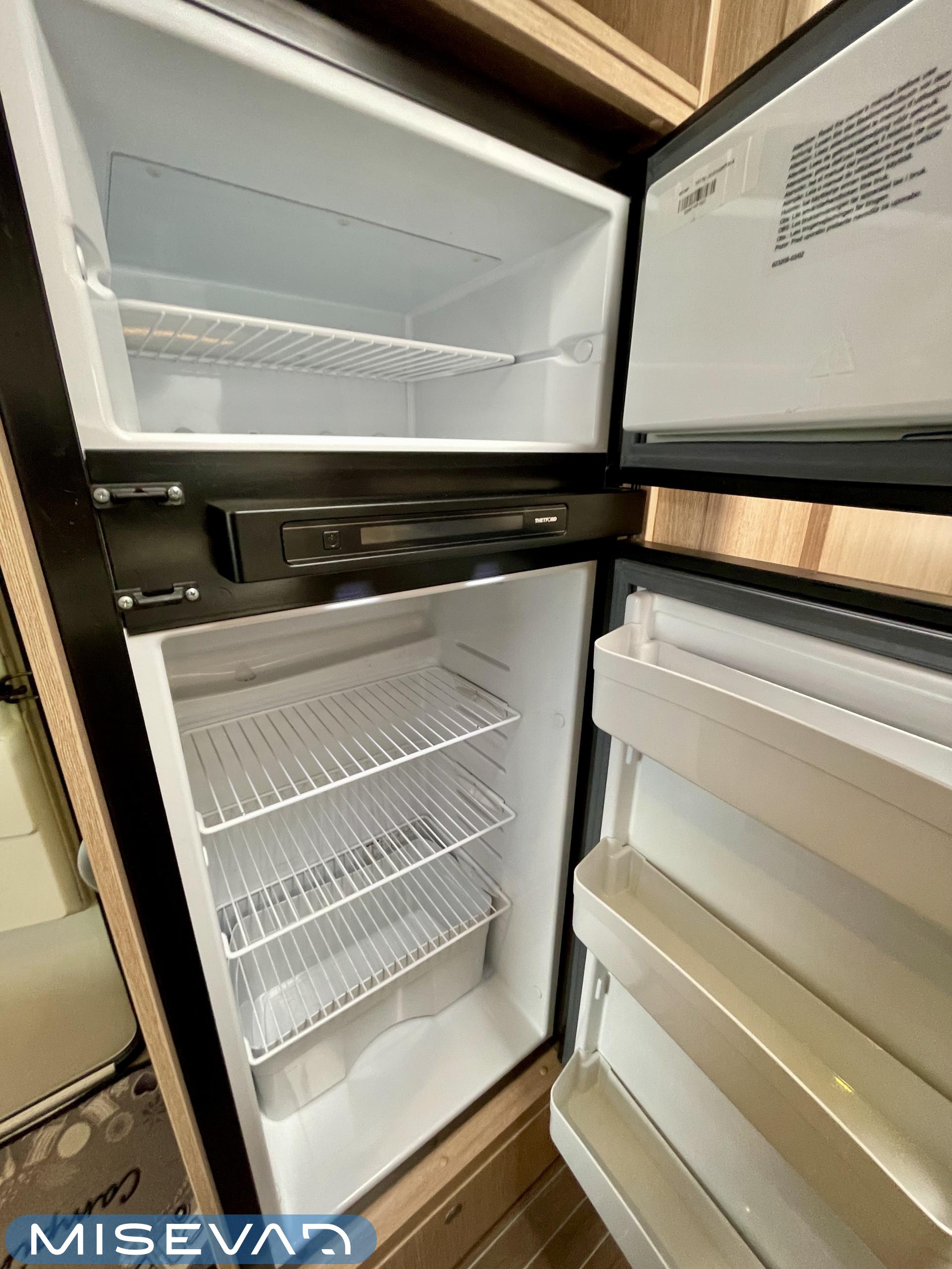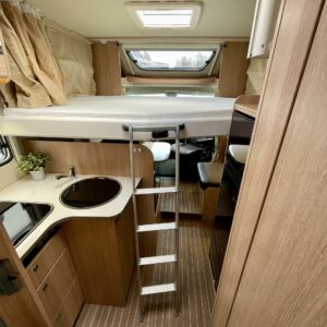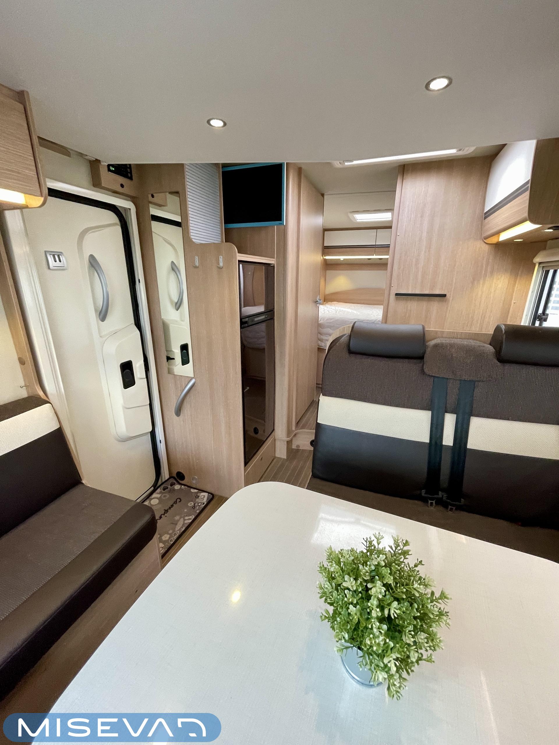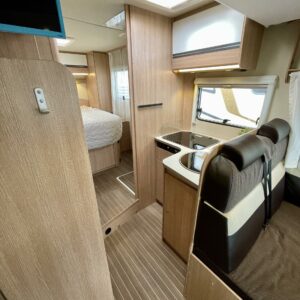 Sisätiloissa viihtyy pidemmälläkin reissulla: saarekevuode ja alaslaskusänky tarjoavat reilusti nukkumatilaa, keittiössä on jenkkijääkaappi ja liesi sekä kaasun ulosotto. Erillinen WC sekä erillinen suihku lisäävät asumismukavuutta. Takatalliin mahtuvat harrastusvälineet, ja markiisin alle luot mukavan oleskelutilan.