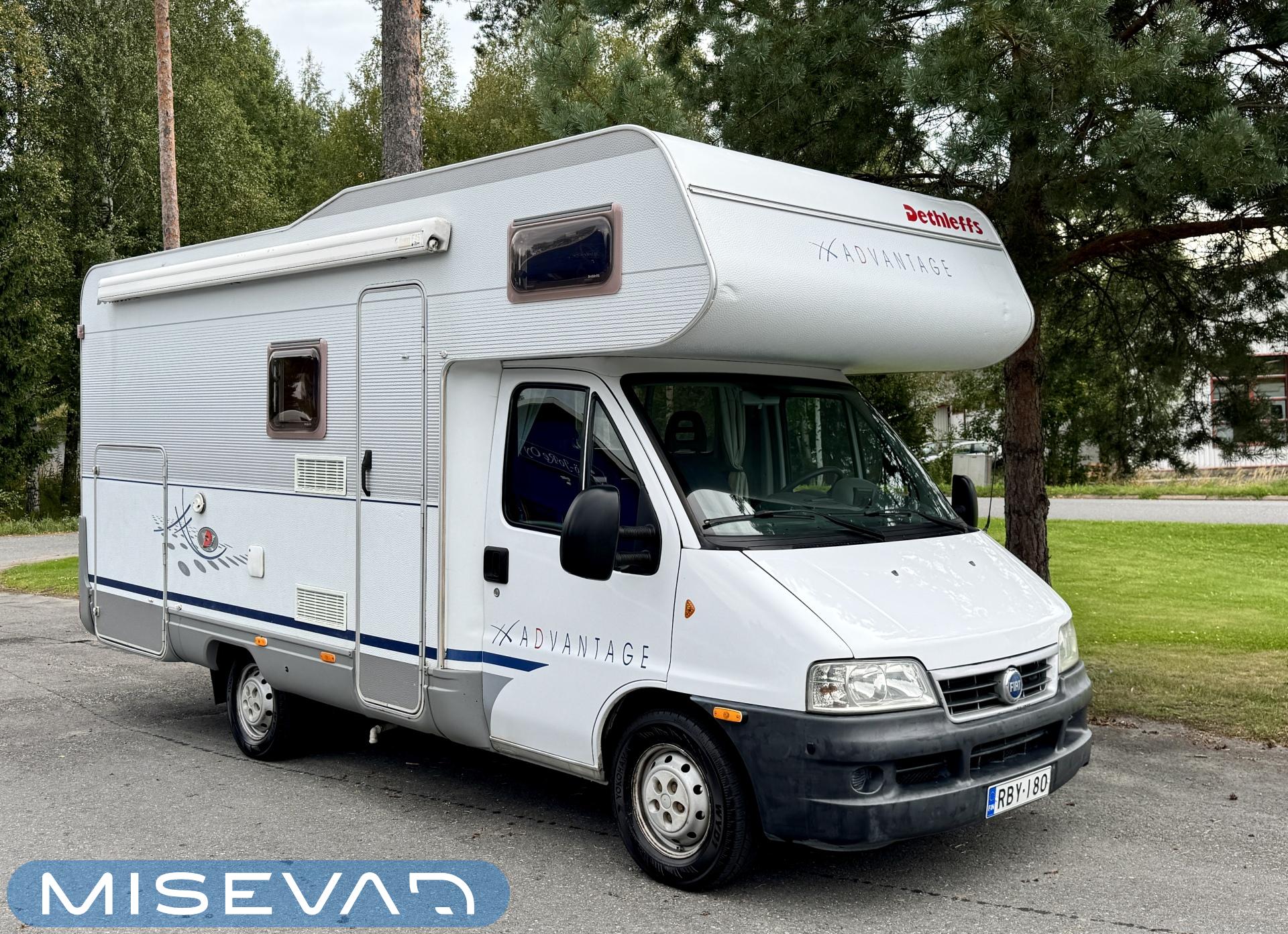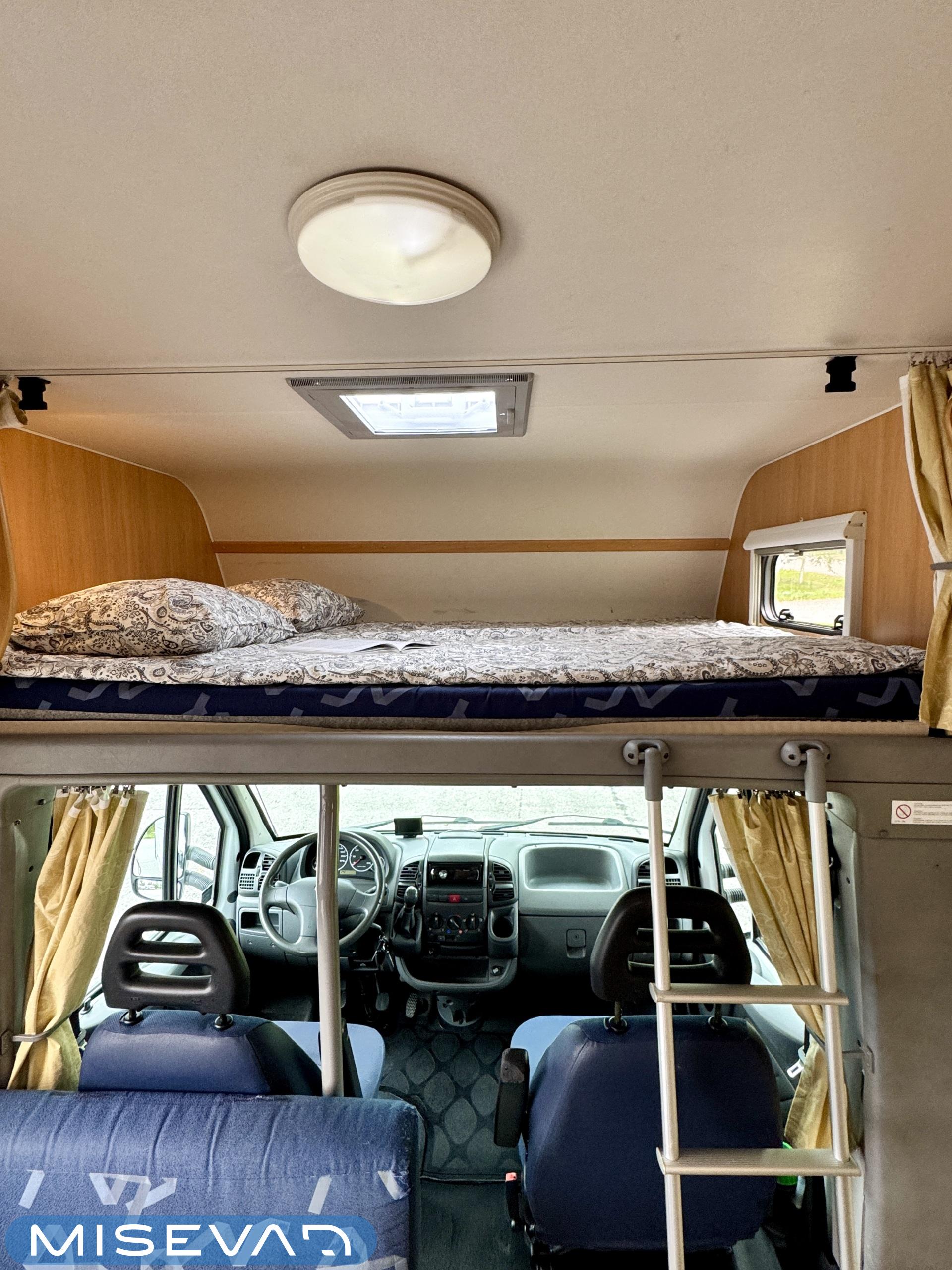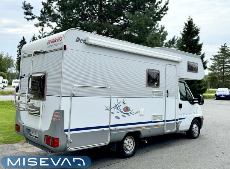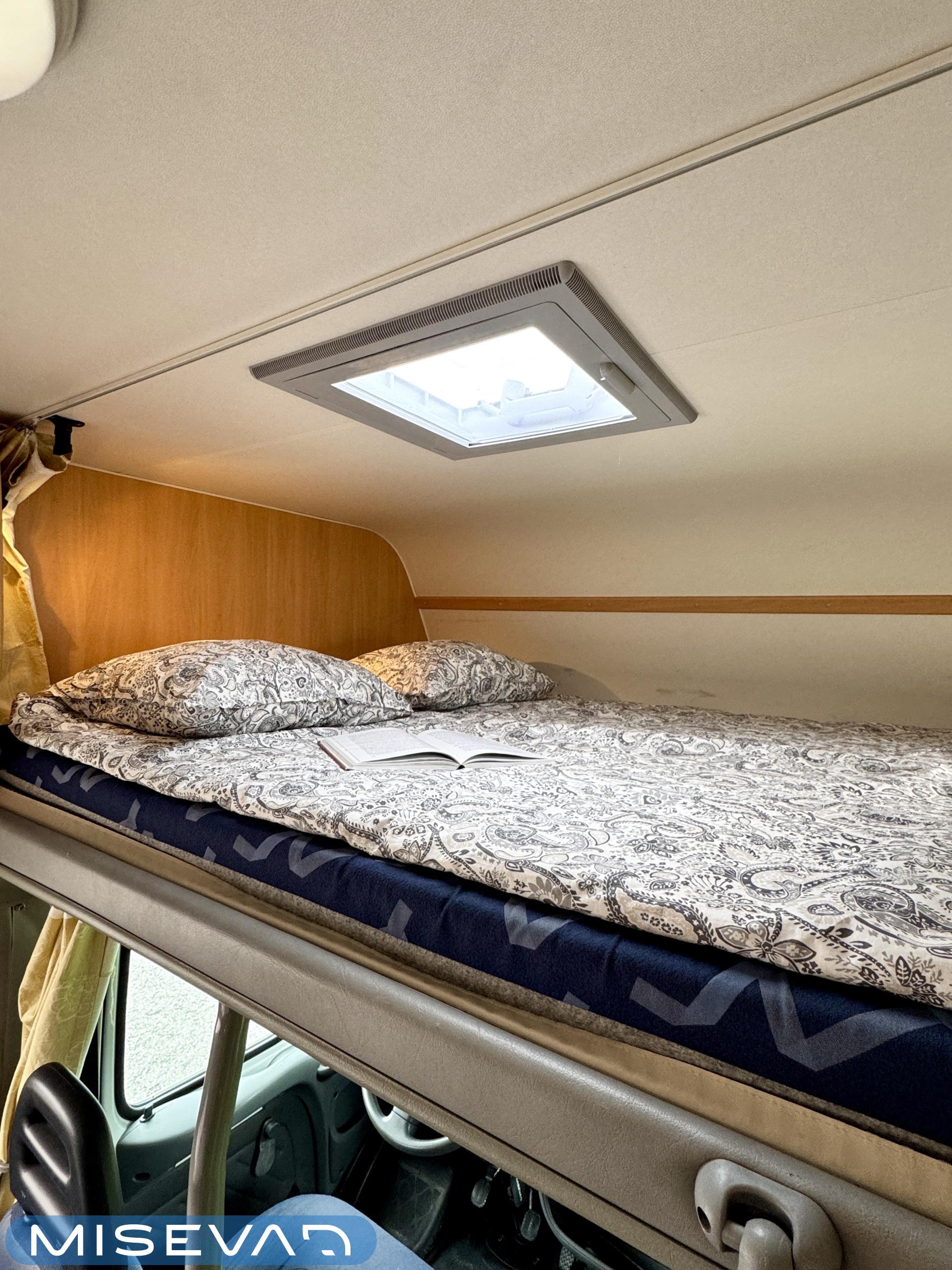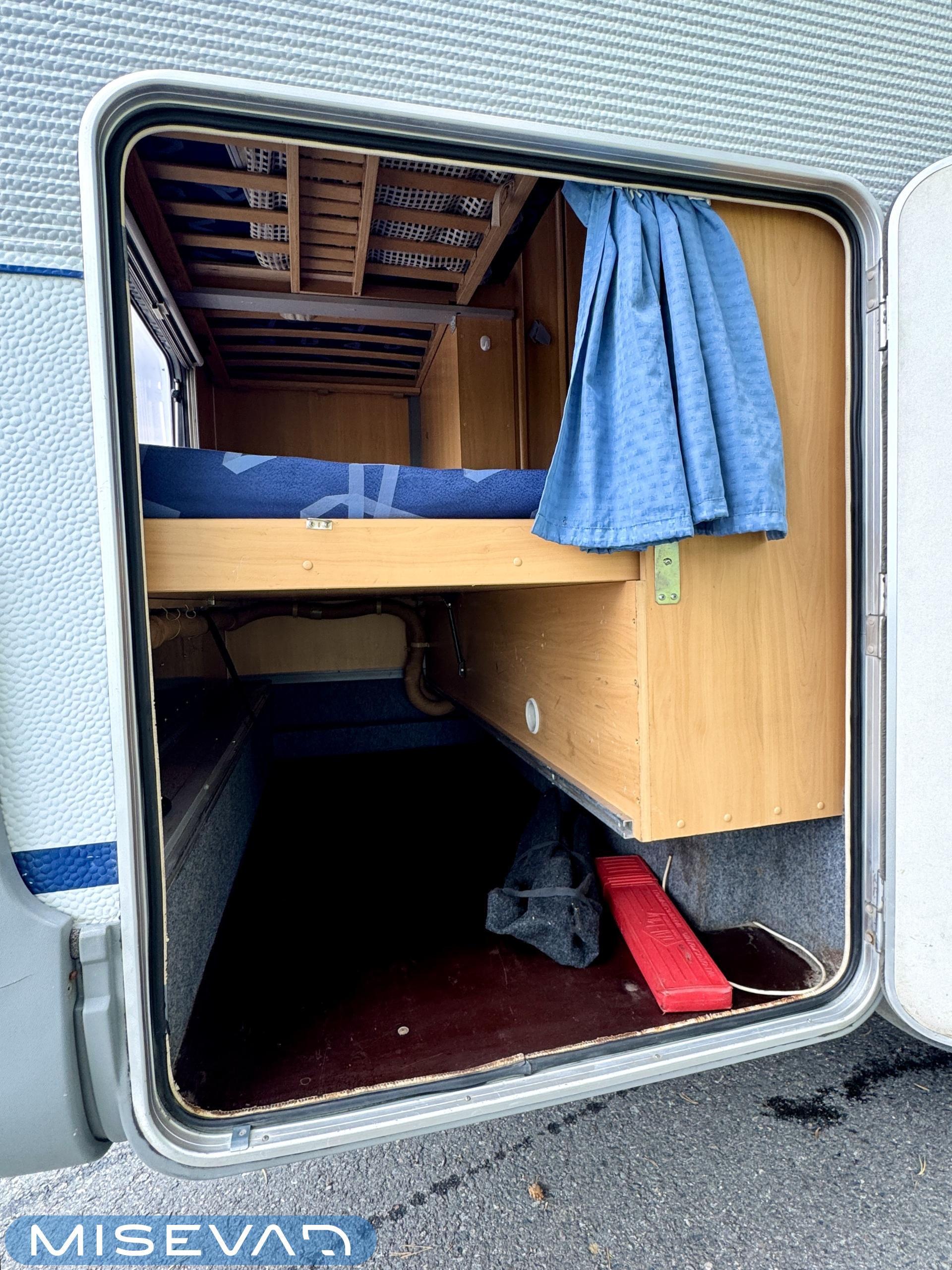 Sisätiloissa viihtyy pidemmälläkin reissulla: saarekevuode ja alaslaskusänky tarjoavat reilusti nukkumatilaa, keittiössä on jenkkijääkaappi ja liesi sekä kaasun ulosotto. Erillinen WC sekä erillinen suihku lisäävät asumismukavuutta. Takatalliin mahtuvat harrastusvälineet, ja markiisin alle luot mukavan oleskelutilan.