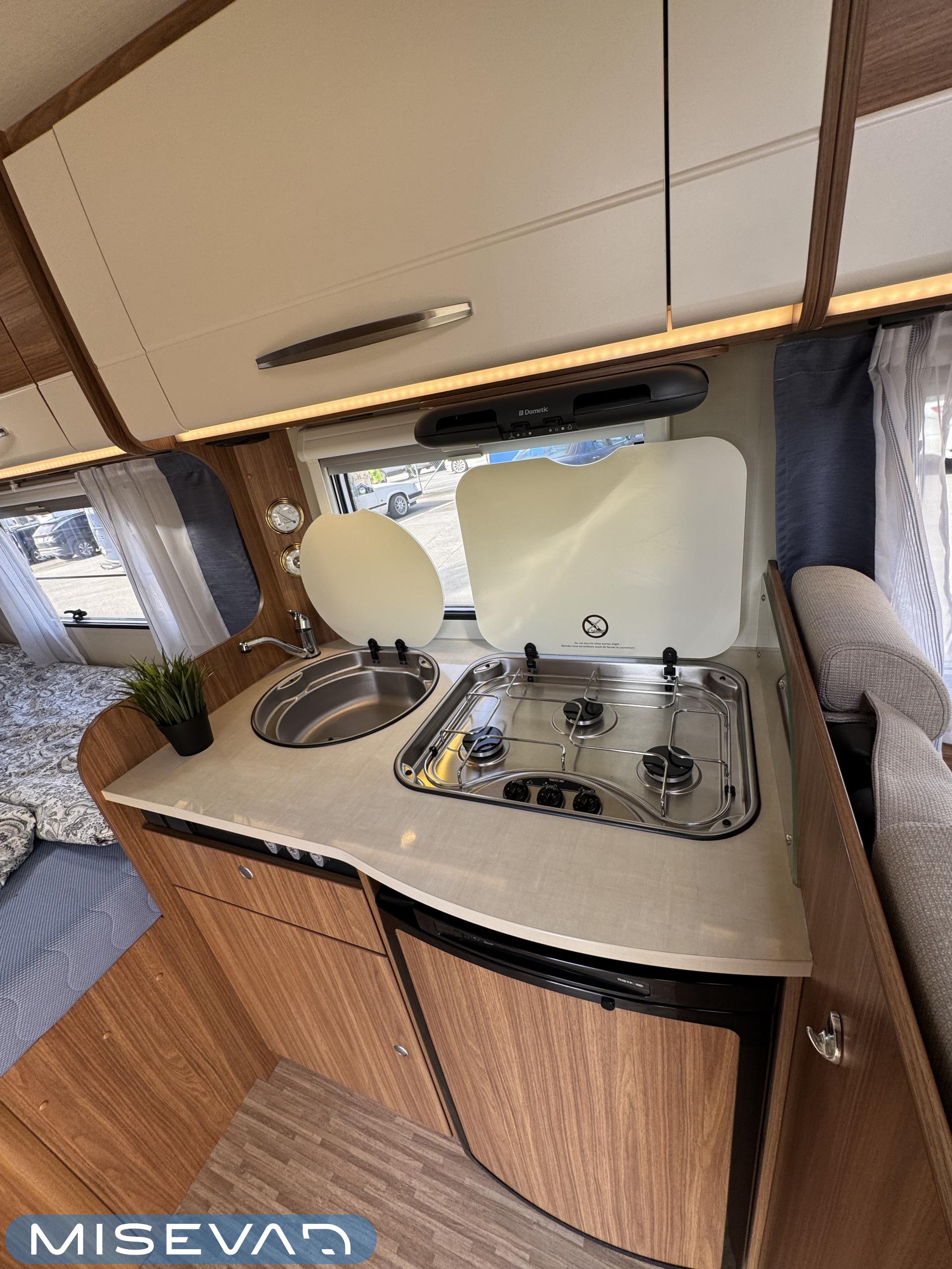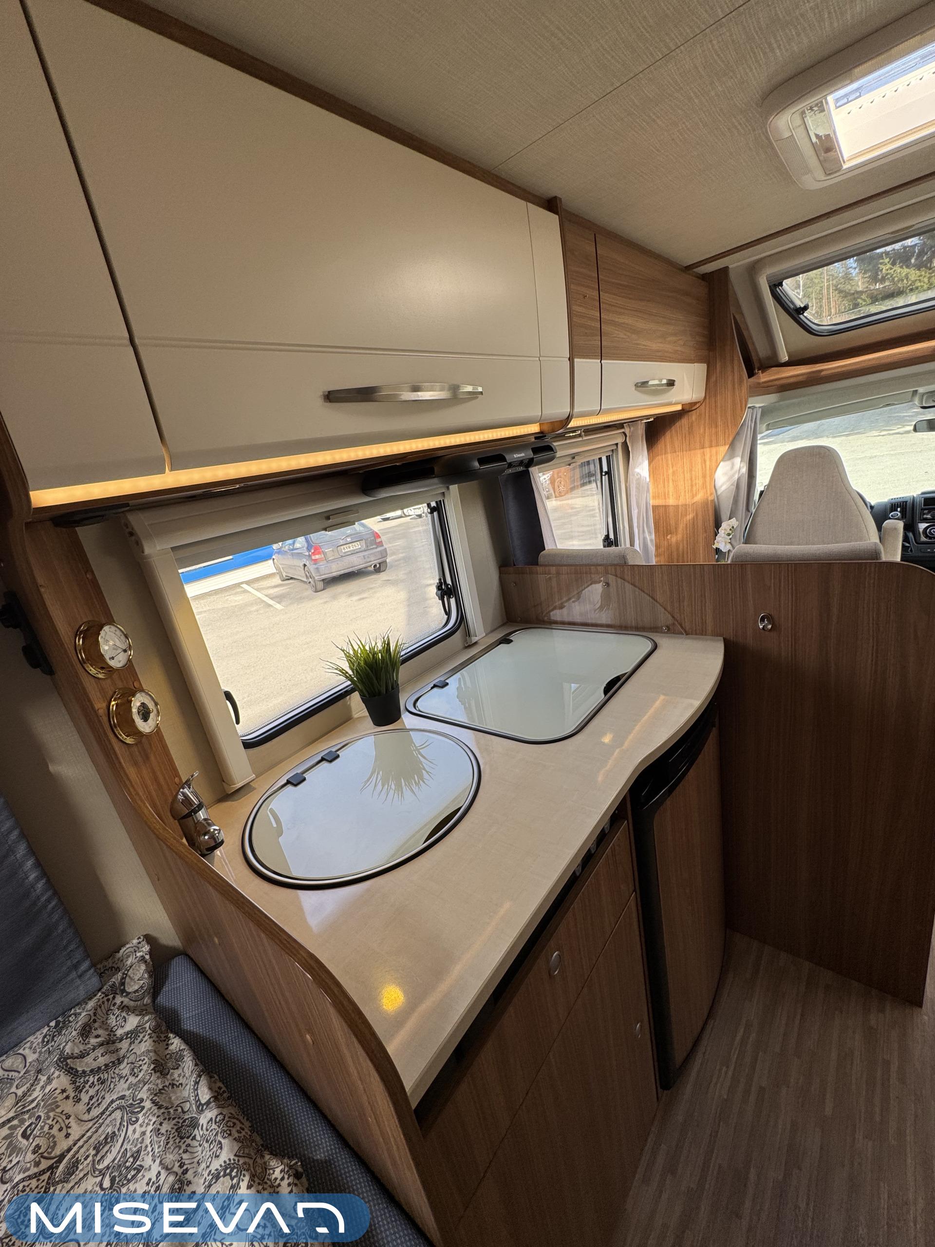 ABS-jarrut, Airbag, Ilmastointi ajotilassa, Jääkaappi, Kahdet renkaat, Kasetti WC, Kasettiverhot, Kattoluukku, Keskuslämmitys, Lattiamatot asunto-osassa, Liesi, Lohkolämmitin, Lämminvesiboileri, Ohjaustehostin, Pakastelokero, Parivuode, Pesuallas, Pyöräteline, Radio, Suihku, Sähkörappu, Trumatic, Vakionopeudensäädin, Kesärenkaat, Talvirenkaat(nasta), pitkittäinen parivuode, Asuinosan hyttysovi/verho