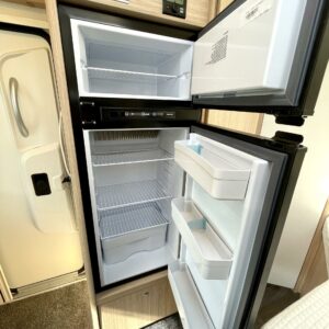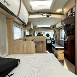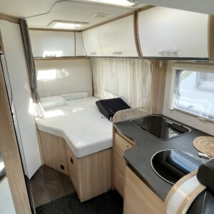 Tilava pöytäryhmä, jonka päällä alaslaskettava vuode, iso jääkaappi-pakastin, tilava keittiö ja mukava parivuode takana, tilavat saniteettitilat, tästä erittäin siisti ja vähän ajettu yksilö, pariskunnille tai vaikka perhekäyttöön.