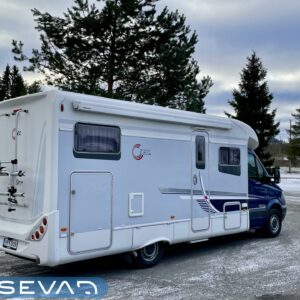 Tec Star, Johtotähti joka on sopivasti sisäänajettu seuraavaa onnellista omistajaa varten. Mersussa ei kilometrit paina ja tämän ratissa alkaakin helposti hymyilyttämään. Asuintilassa hymyily vain jatkuu kun Alde pitää tuvan lämpimänä ja kaasupullojakin varten on oma vaihtaja. Voi unohtaa ne aamuneljän herätykset pakkasessa kun kaasu on loppu. Asuintilan ohjainpaneelista voi suoraan katsoa tarvitaanko ulkona villasukkia vai laittaako Aldea vielä vähän lämpöisemmälle. Lämpötilat näkyy suoraan napin painalluksella. Ruokailuryhmä muotoutuu helposti kunnon lisäsängyksi ja takaosan sängyssä sitä onkin kuin omassa pesässään. Iso jääkaappi ja L-keittiö saa myös kokin hymyilemään. Ei ole riemulla rajaa kun Mersulla ajaa. Tule Turenkiin hymyilemään meidän kanssa ja tutustumaan tähän tähteen.