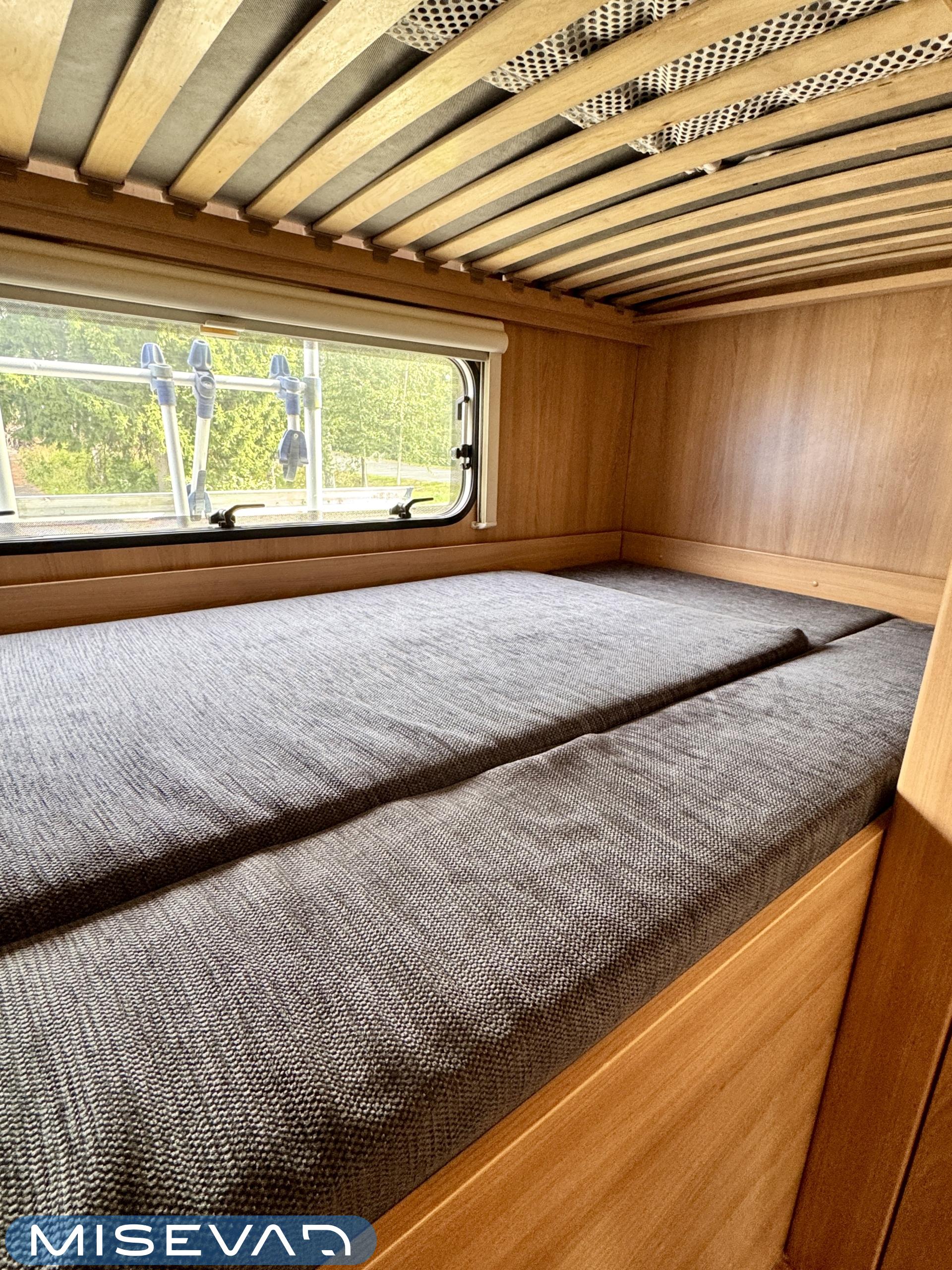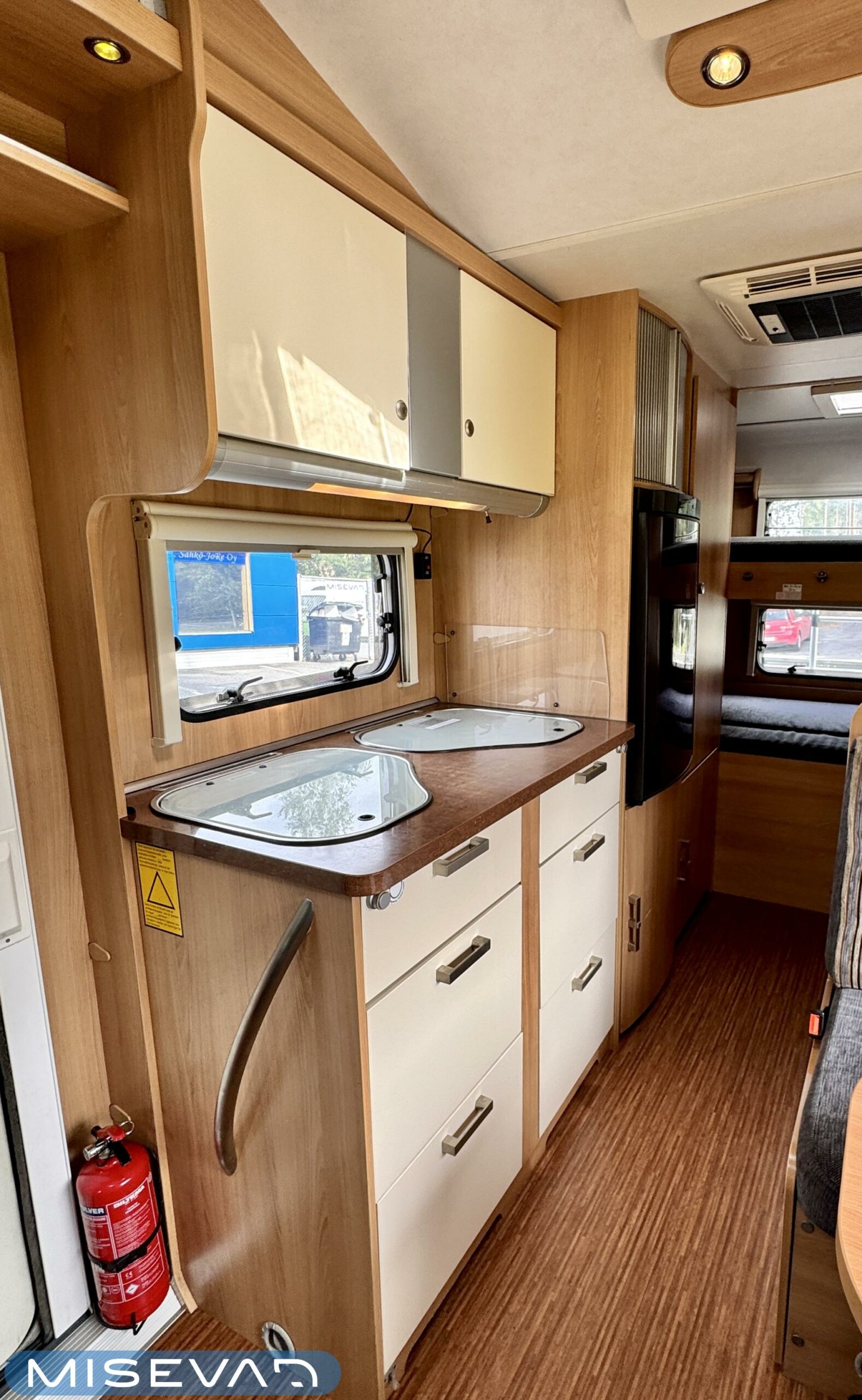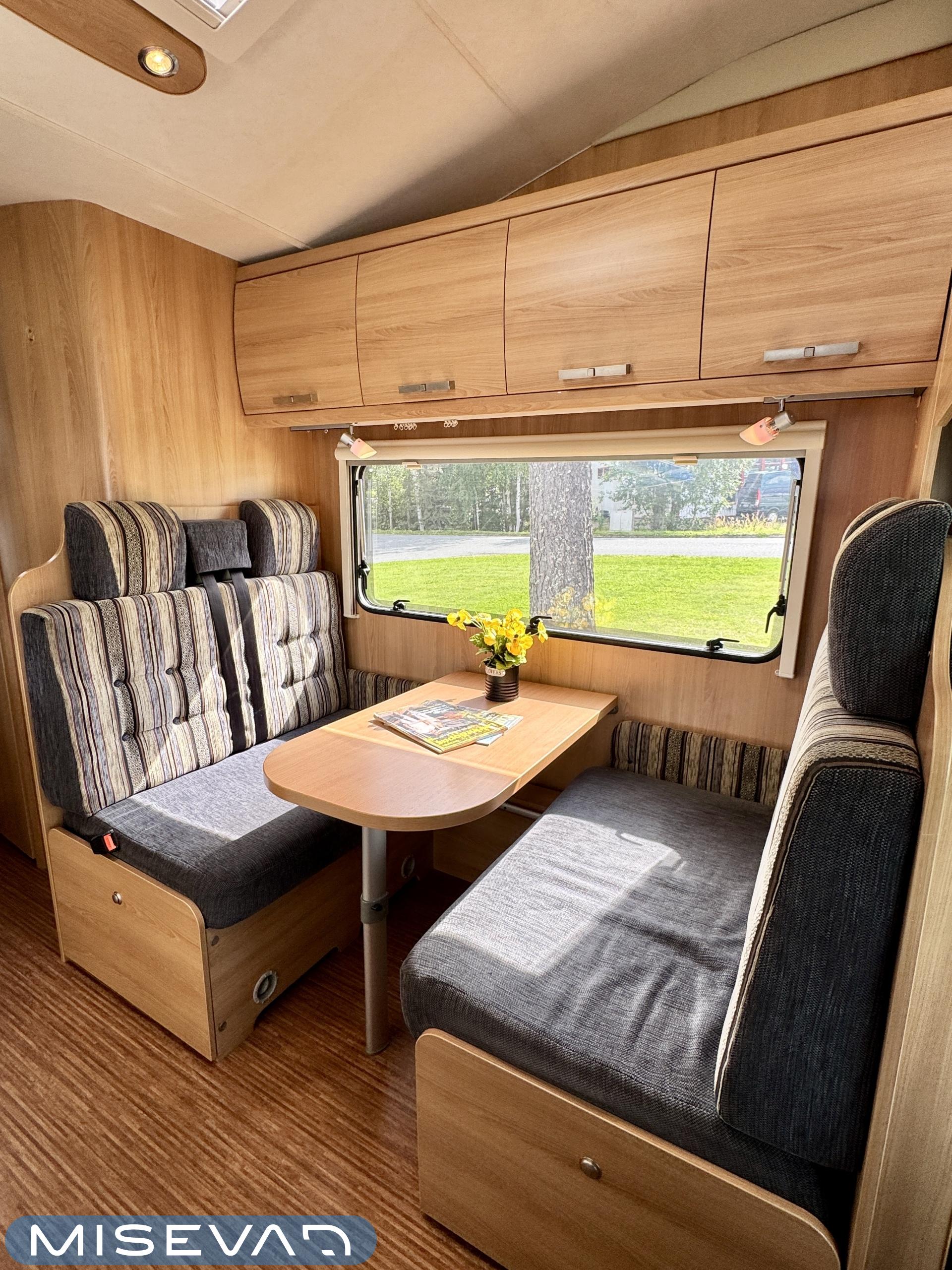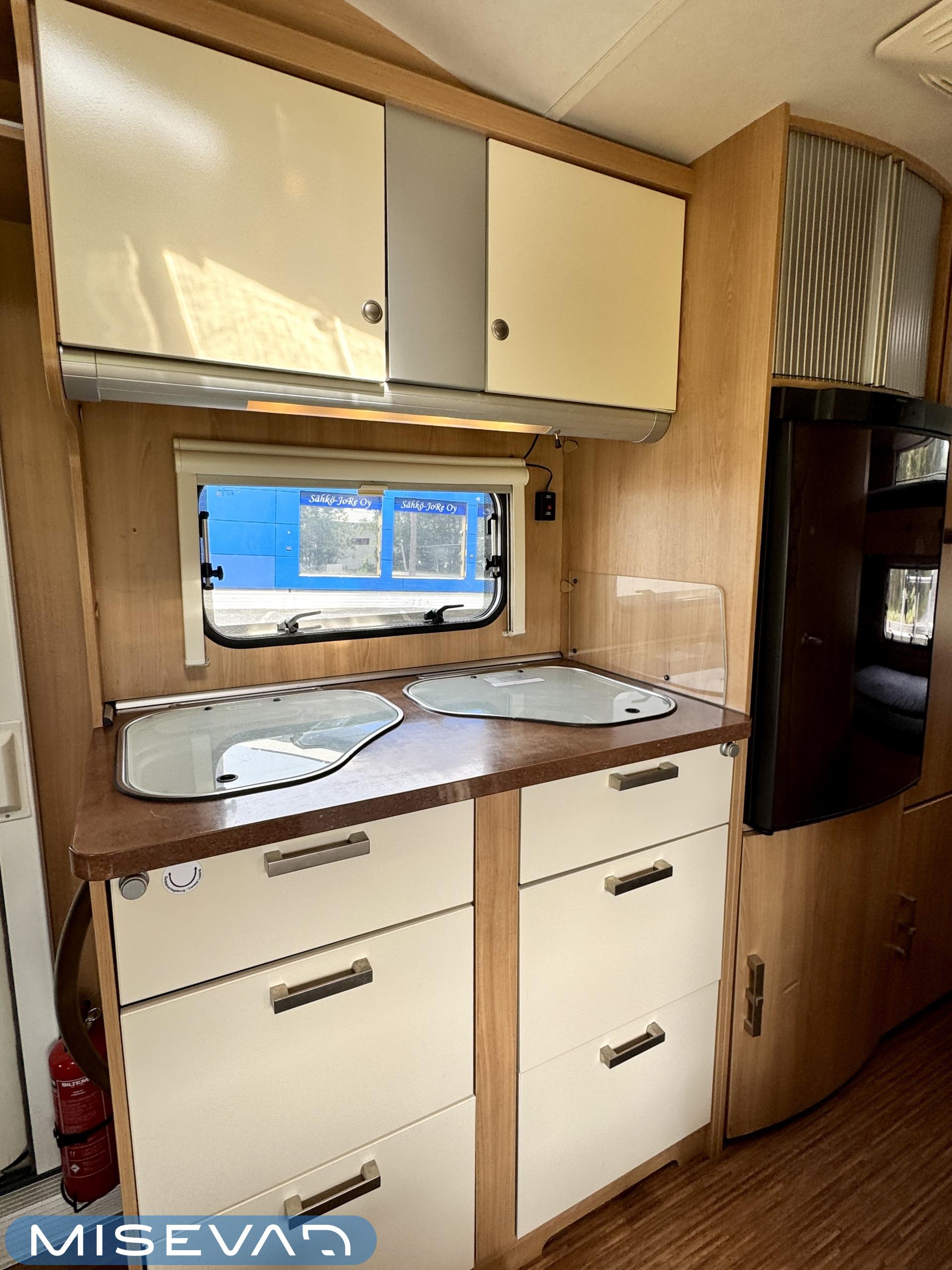 Truma, ABS-jarrut, Airbag, Eristetty harmaavesisäiliö, Jääkaappi, Kasetti WC, Kasettiverhot, Kattoluukku, Kerrossänky, Liesi, Lämminvesiboileri, Markiisi, Ohjaustehostin, Pakastelokero, Pesuallas, Pyöräteline, Radio, Sähkökäyttöiset ikkunat, Sähköpeilit, Sähkörappu, TV-antenni tai lautasantenni, Turbo, Vakionopeudensäädin, Ilmastointi (ohjaamo), Ilmastointi (asuintila)
