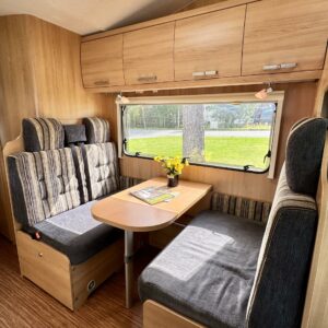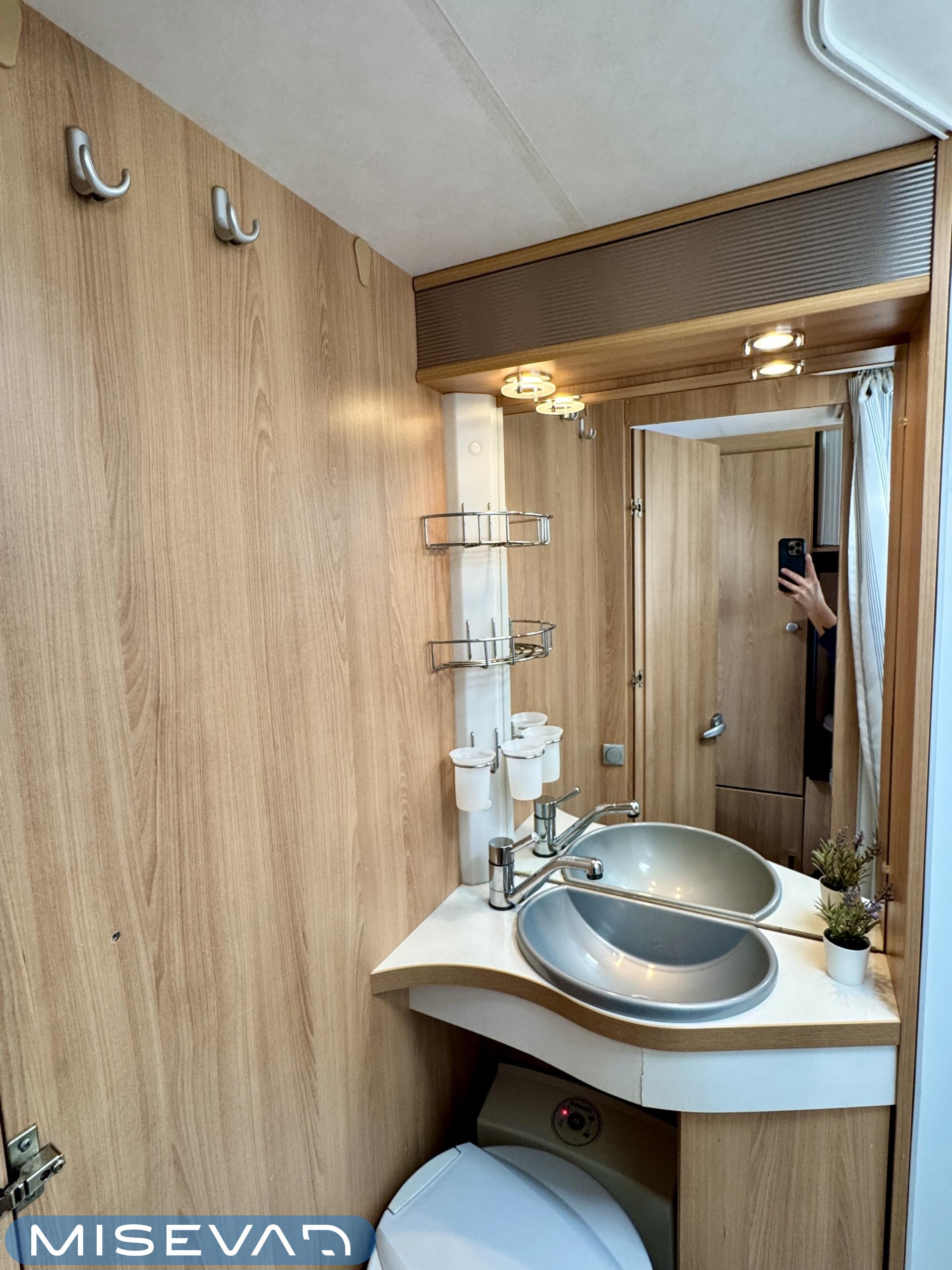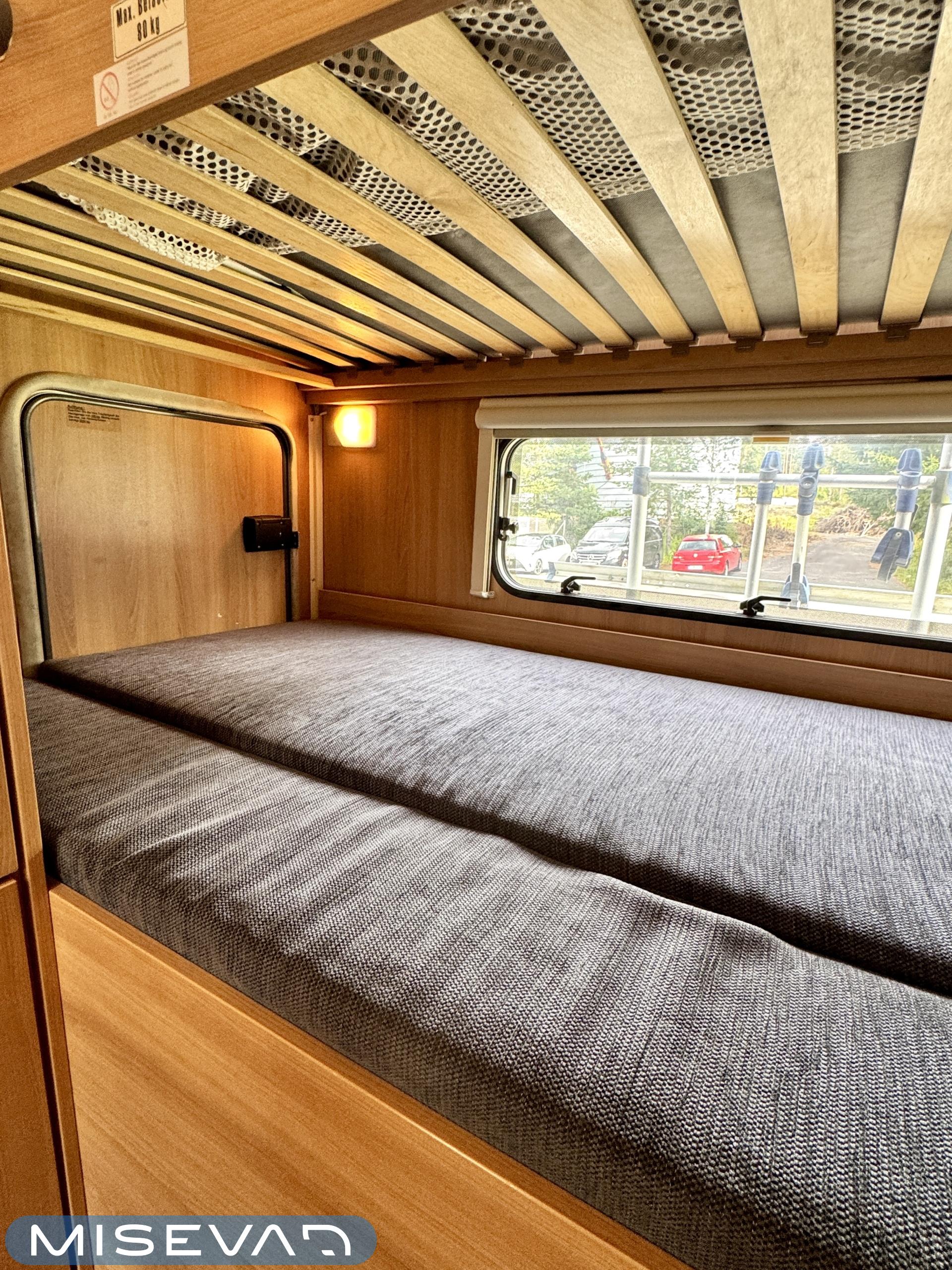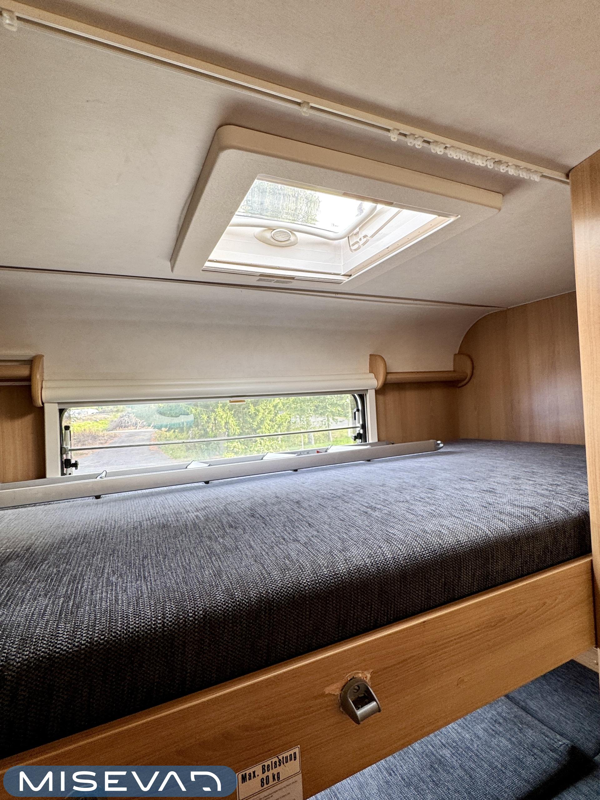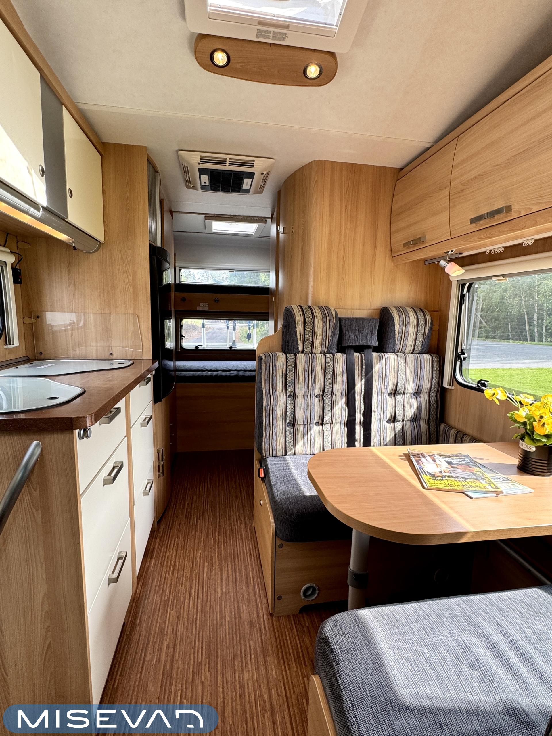 Truma, ABS-jarrut, Airbag, Eristetty harmaavesisäiliö, Jääkaappi, Kasetti WC, Kasettiverhot, Kattoluukku, Kerrossänky, Liesi, Lämminvesiboileri, Markiisi, Ohjaustehostin, Pakastelokero, Pesuallas, Pyöräteline, Radio, Sähkökäyttöiset ikkunat, Sähköpeilit, Sähkörappu, TV-antenni tai lautasantenni, Turbo, Vakionopeudensäädin, Ilmastointi (ohjaamo), Ilmastointi (asuintila)
