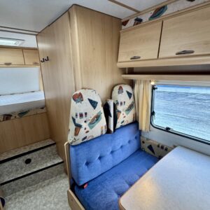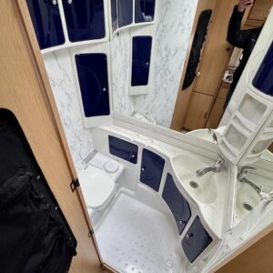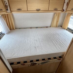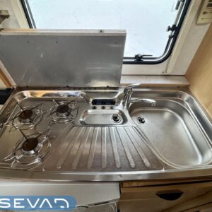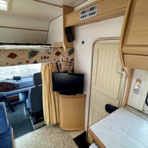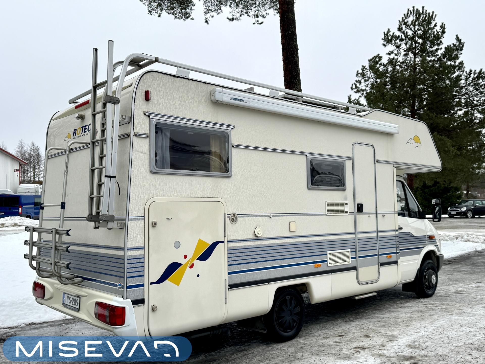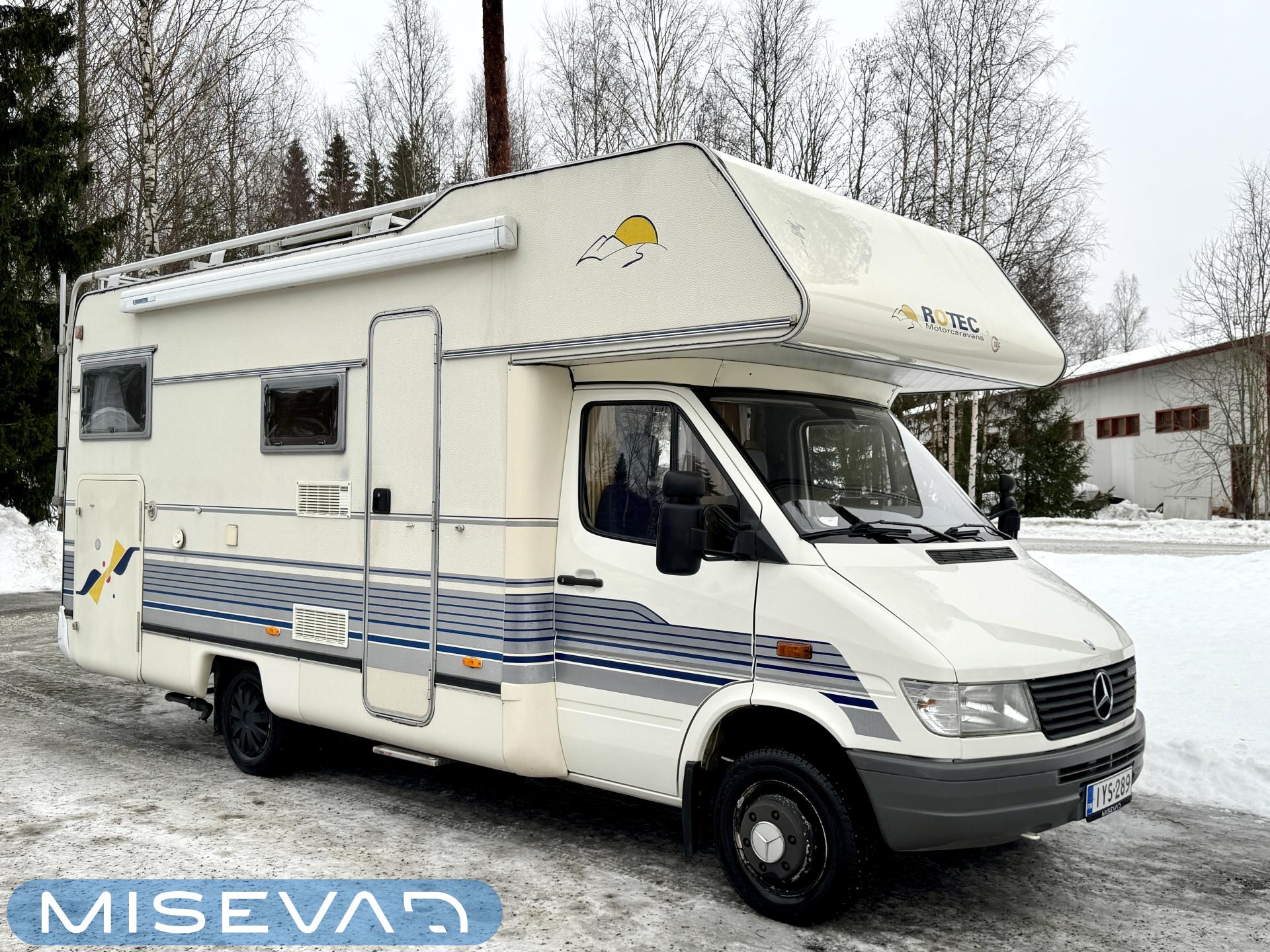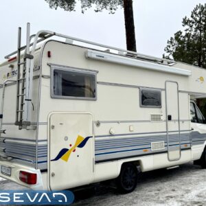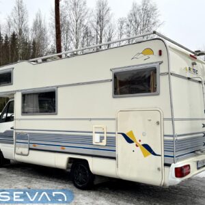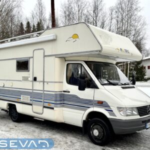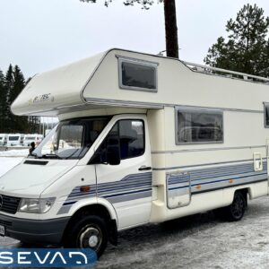 Nyt on kertakaikkiaan hienon visuaalisen kunnon säilyttänyt MB alustainen matkailuauto tarjolla. Aika maltillisella ajomäärälläkin tämä yksilö, vaikka MB alustan omaakin (näillä yleensä tykätään ajella ehkä keskimääräistä enemmin). Asuinosan korirakenteiden kosteusmittauksessa ei epäkohtia juurikaan esiintynyt (mitattu rakenteita purkamatta normaalin protokollan mukaisesti). Sisä ja ulkopinnoissa ei merkittäviä epäkohtia. Takana on poikittainen parivuode ja alle jää takatallitilaa. Keskeltä löytyy keittiö ja kylppäritilat. Edessä on vastakkainen pöytäryhmä ja ohjaamon päällä alkovivuode kahdelle henkilölle. Rekisteröidyt henkilöpaikat kuudelle ja kaikille siis myös vuodepaikka. Ohjaamovarusteissa mm. vakkari, ilmastointi ja peruutuskamera. Moottorina Mersun OM602 eli 2.9 litrainen diesel rivivitonen. Voimalinjan jatkeena 5-vaihteinen manuaalivaihteisto ja takaveto paripyörillä. Huoltohistoria vanhaan hyvään malliin ruutupaperivihkolla.