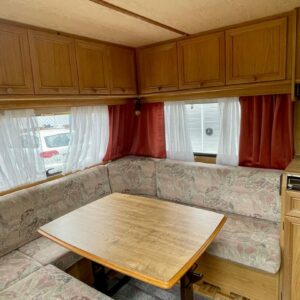 T.E.C. Weltbummler 530 TK matkailuvaunu, jossa havaittu kohonneita kosteusarvoja. Ikäisekseen siistissä kunnossa. Varsinkin sisustus on säilynyt hyvin alkuperäisenä.