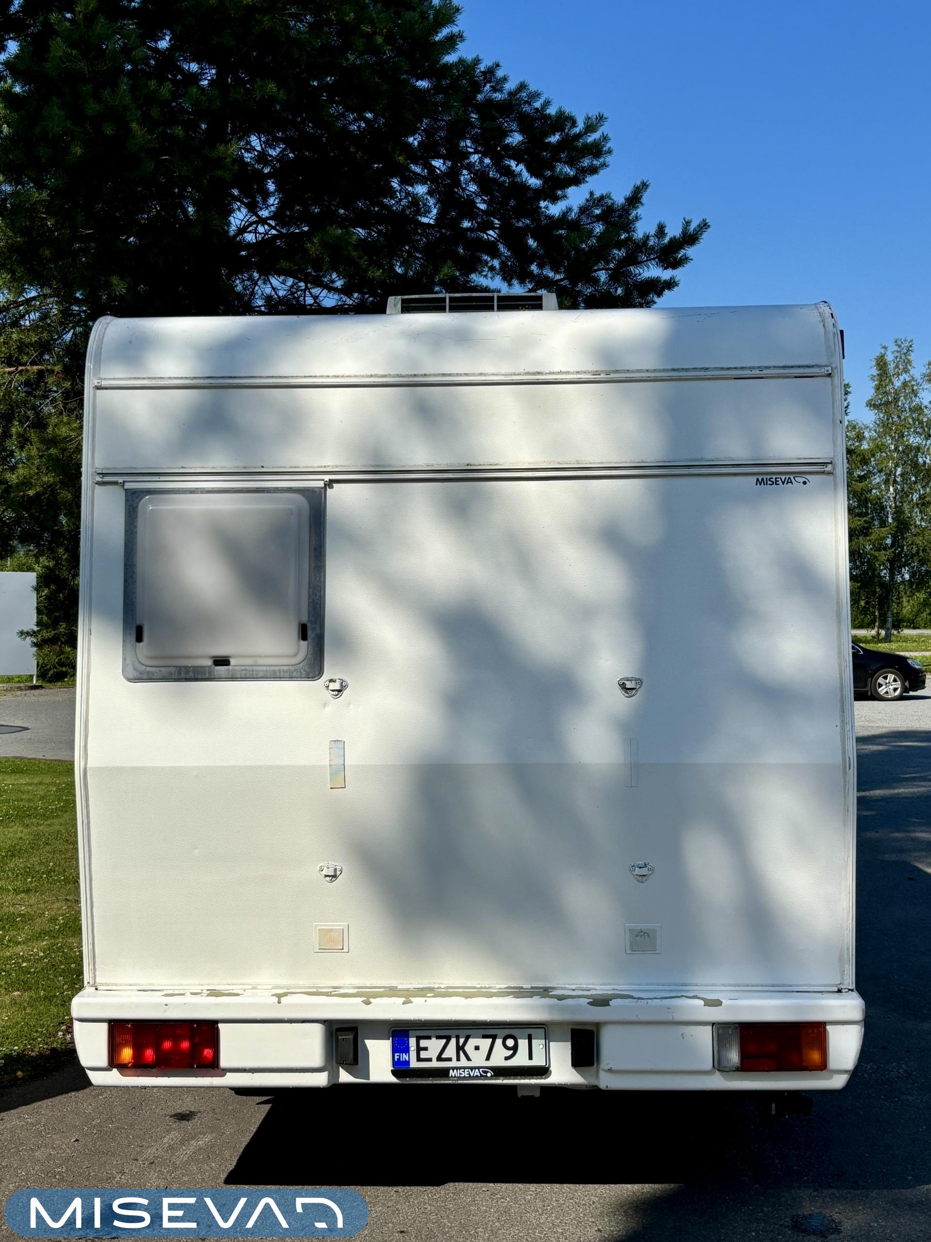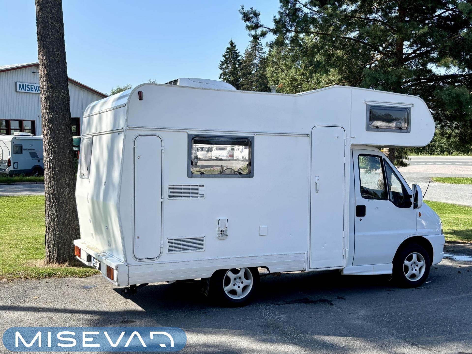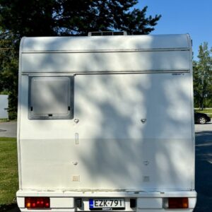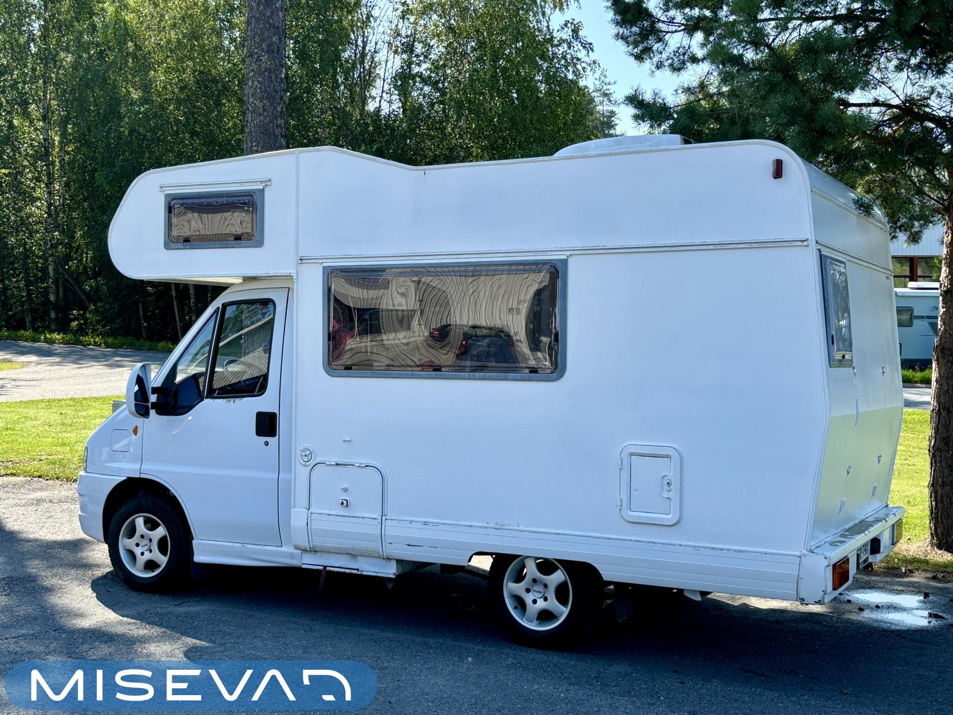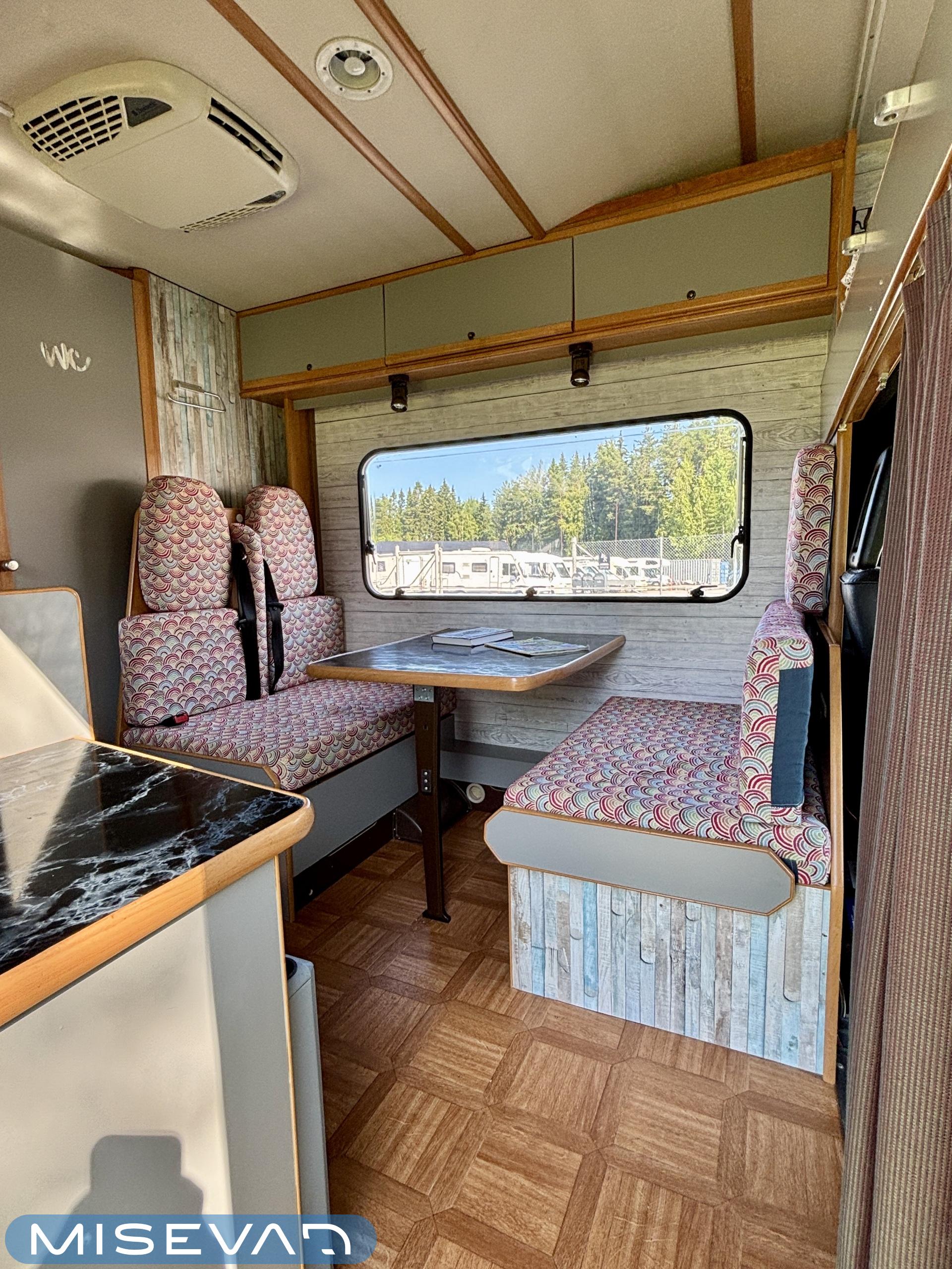 Persoonallinen alkovimallin matkailuato tarjolla. Vielä kerkeää kesän riemuretkille ja tämähän toimittaa hienosti vaikka tila-auton virkaa, kun löytyy rekisteröidyt matkustuspaikat peräti kuudelle henkilölle. Takaosassa on iso vaatekaapi, sekä vessa ja kylppäritilat. Etuosasta löytyy sitten vastakkain istuttava pöytäryhmä, sekä keittiö. Pöytäryhmästä saa sijattua vuoteen kahdelle henkilölle. Ohjaamon päällä on alkovivuode kahdelle henkilölle. Infrahan on ihan täyden matkailuauton infra, eli vedet tulee ja menee (jopa lämpenee), jääkaapissa pysyy virvokkeet kylmänä, liedellä paistelee pihvit ja Trumatic lämmittää kajuutan koleammilla keleillä. JA SITTEN, jos sattuu tulemaan kuumat kelit, niin kajuutta saadaan mukavan viileäksi kattoilmastoinnin avulla. Tulee ehkä jopa hieman mökkifiilis tuosta sisustasta. Onhän tässä ajan ja kilometrien tuomaa patinaa, mutta tässä on matalan kynnyksen mahdollisuus päästä lajin pariin. Karavaanareiden yleisin kommentti harrastuksestahan on ”on tää vaa niin mahtavaa hommaa” . Hanki tämä itsellesi ja kokeile pitääkö lause kutinsa ;-)