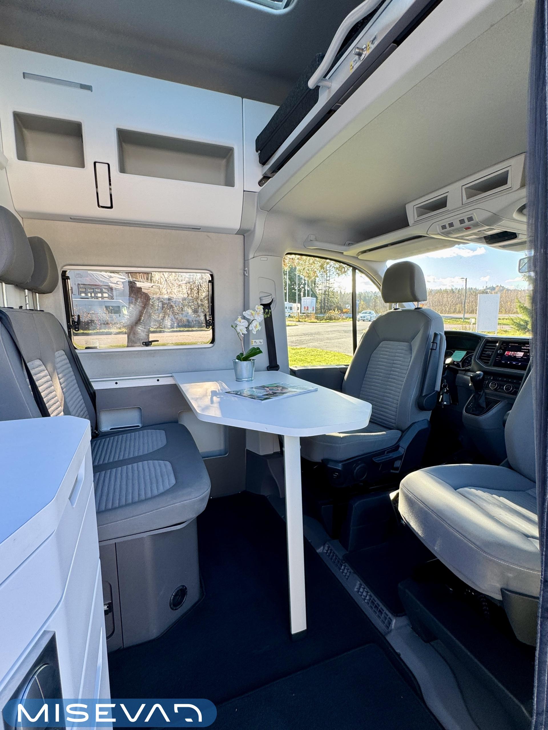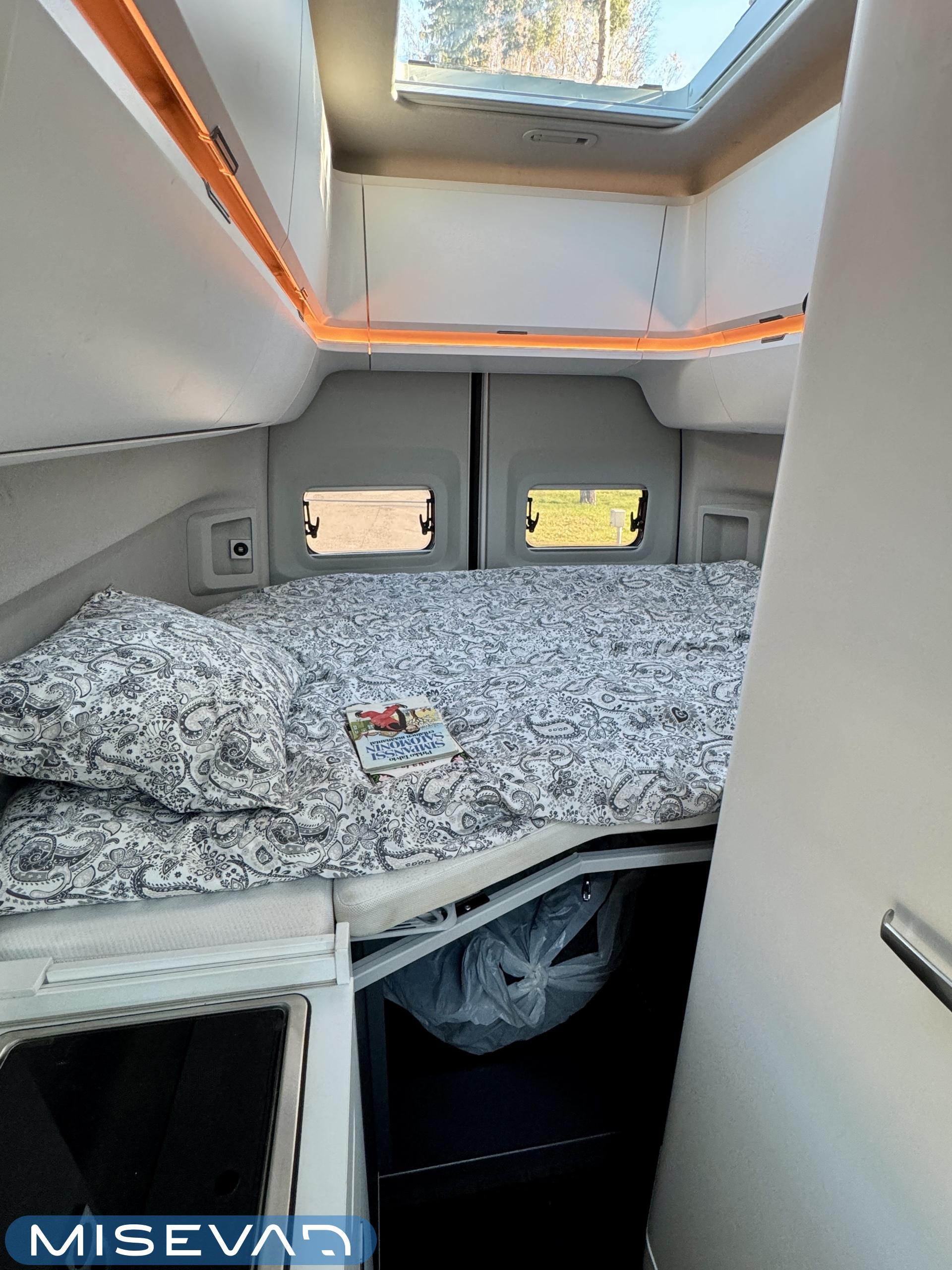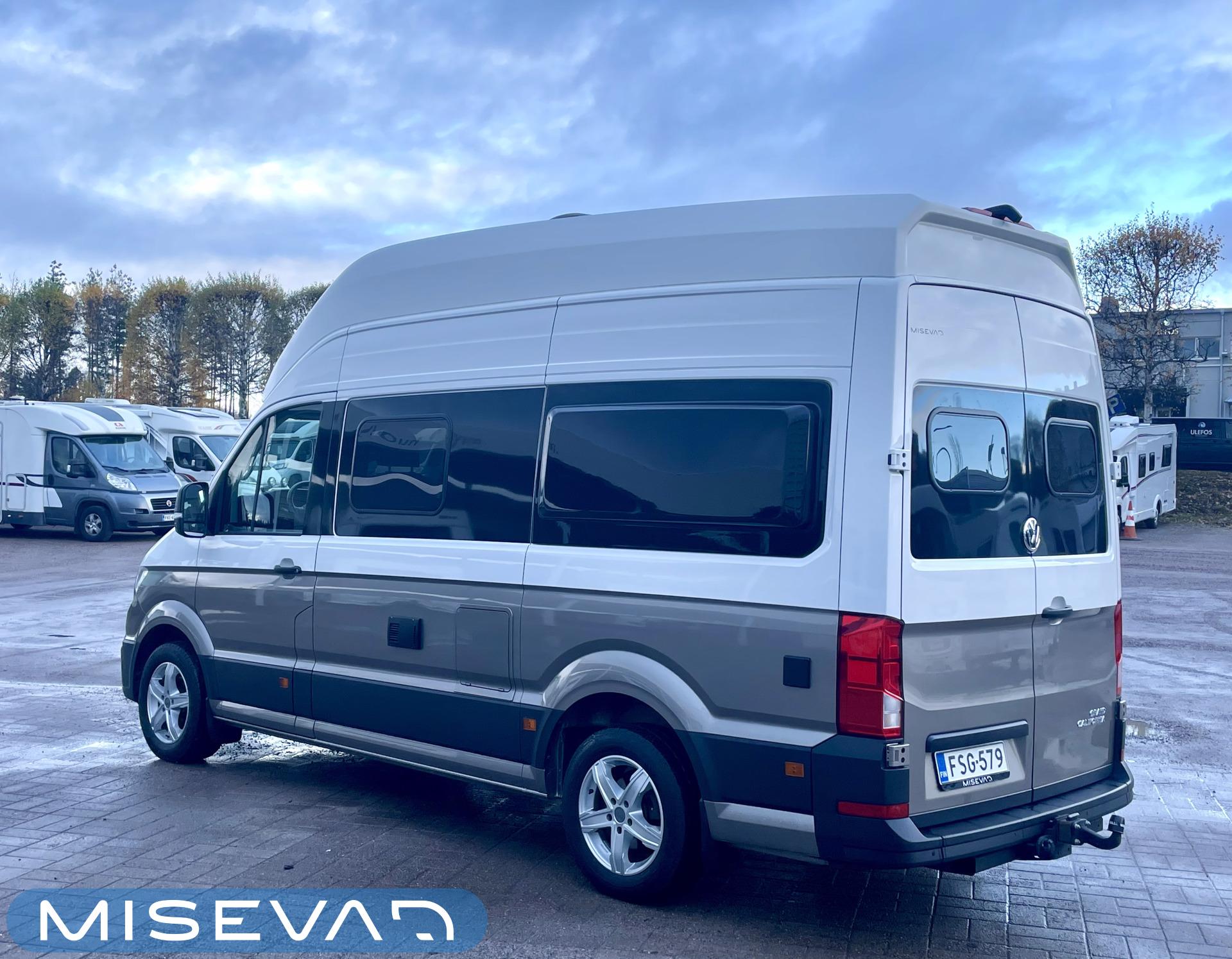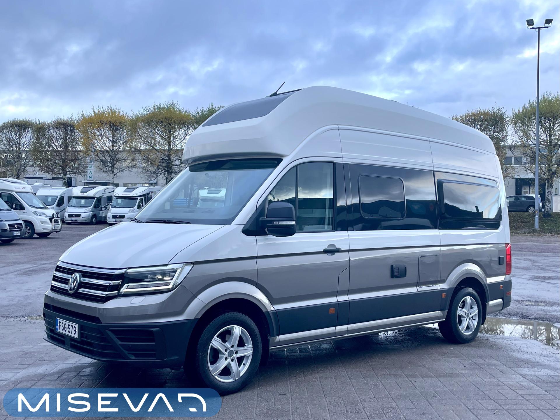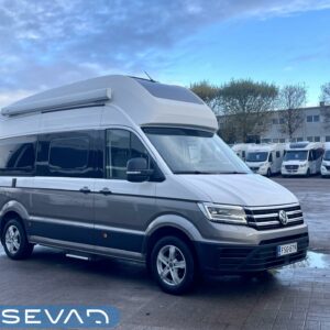 Ajomukavuus ja tyylikkyys on huipussaan tässä Crafterin alustalle tehdyssä Grand Californiassa. Kyseisessä mallissa on vielä aavistuksen harvinaisempi diesel-lämmitin. Eli talvireissaamiseen erityisen suosittu vaihtoehto. Makuupaikat löytyy neljälle, takana parisänky ja ohjaamon yläpuolella on tilaa kahdelle lisää. Keittiö on toteutettu samanlaisella minimalistisella tyylikkyydellä kuin muukin auto. Asuintilaa suunnitellessa on mietitty myös paljon sen toiminnallisuutta, jääkaappi on esimerkiksi suoraan oven vieressä, fiksusti pois asuintilaa viemästä. Kaupassa käynnit on helppo toteuttaa tämän ratkaisun kanssa. Ostoskärrystä saa ladattua suoraan ruoat kaappiin. Grand California on retkeilyautoista tyylikkäimmästä päästä ja jos ajomukavuus on sinulle tärkeä kriteeri, niin tämä kannattaa tulla koeajamaan. Tule Misevalle tutustumaan ja ihastumaan tähänkin upeaan retkeilyautoon!
