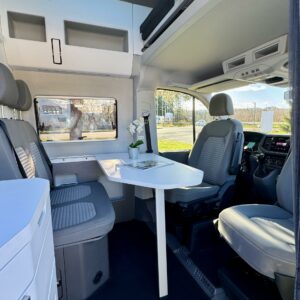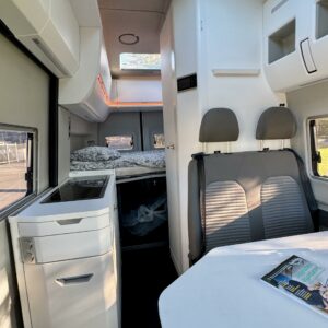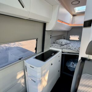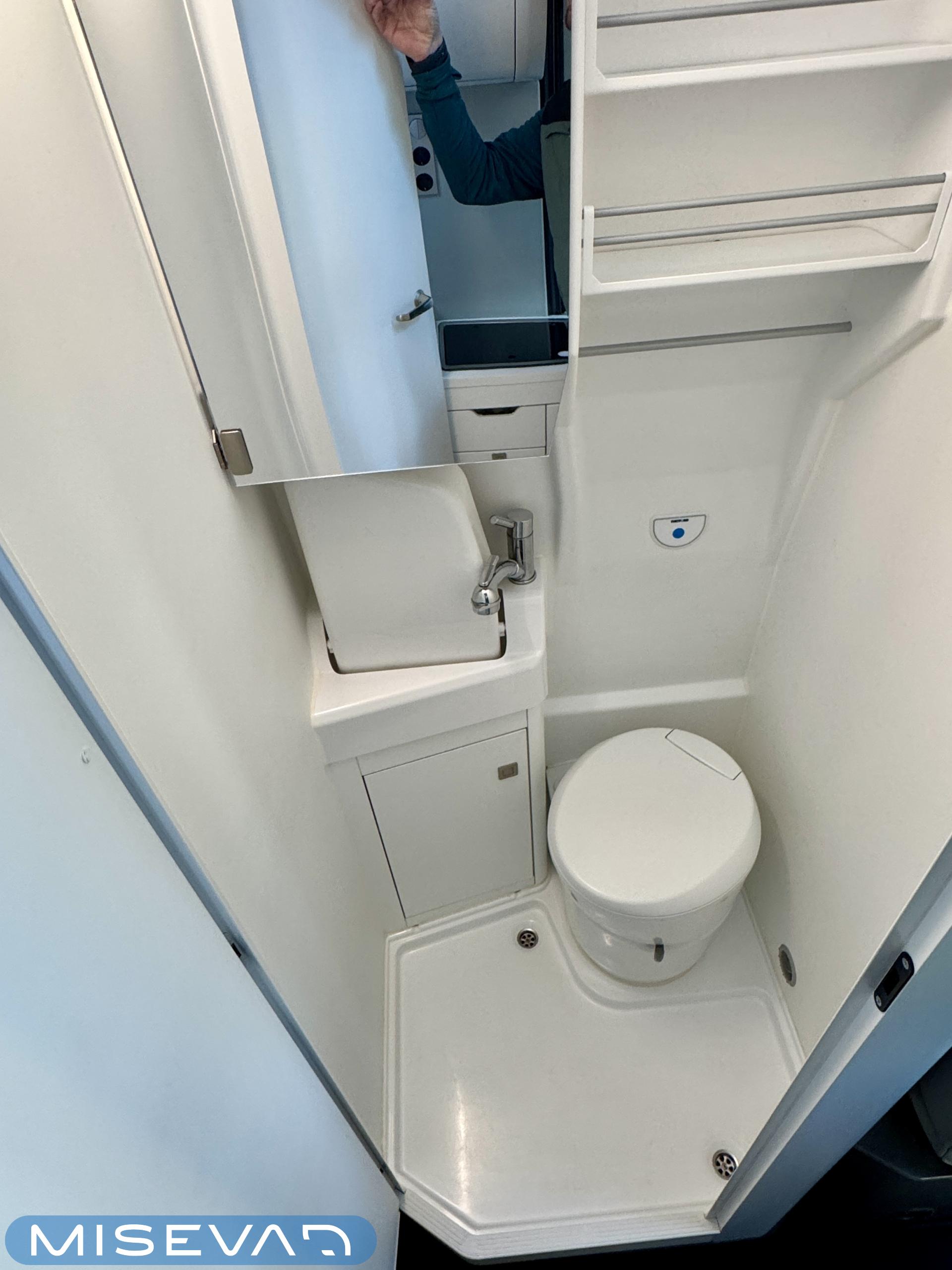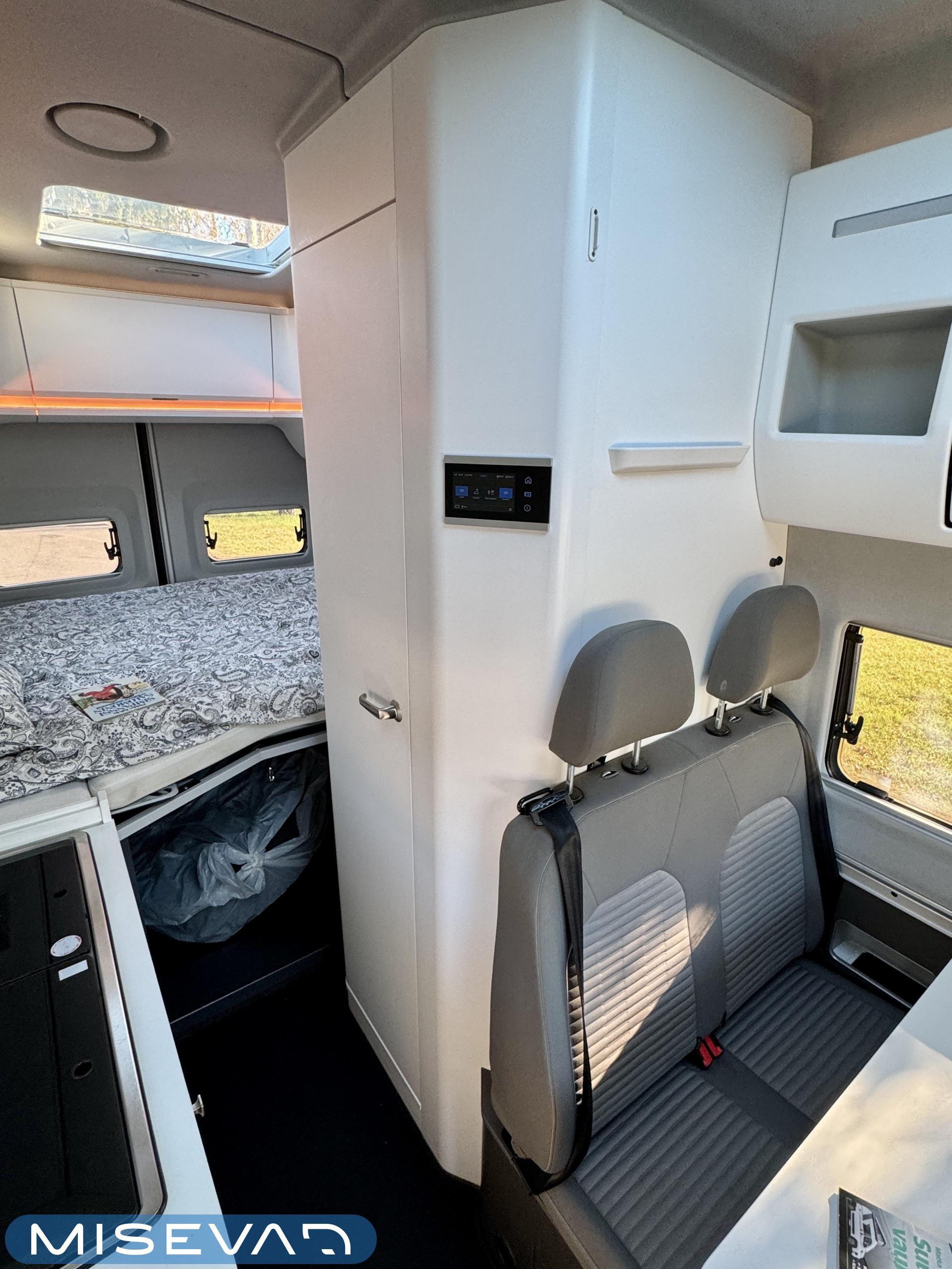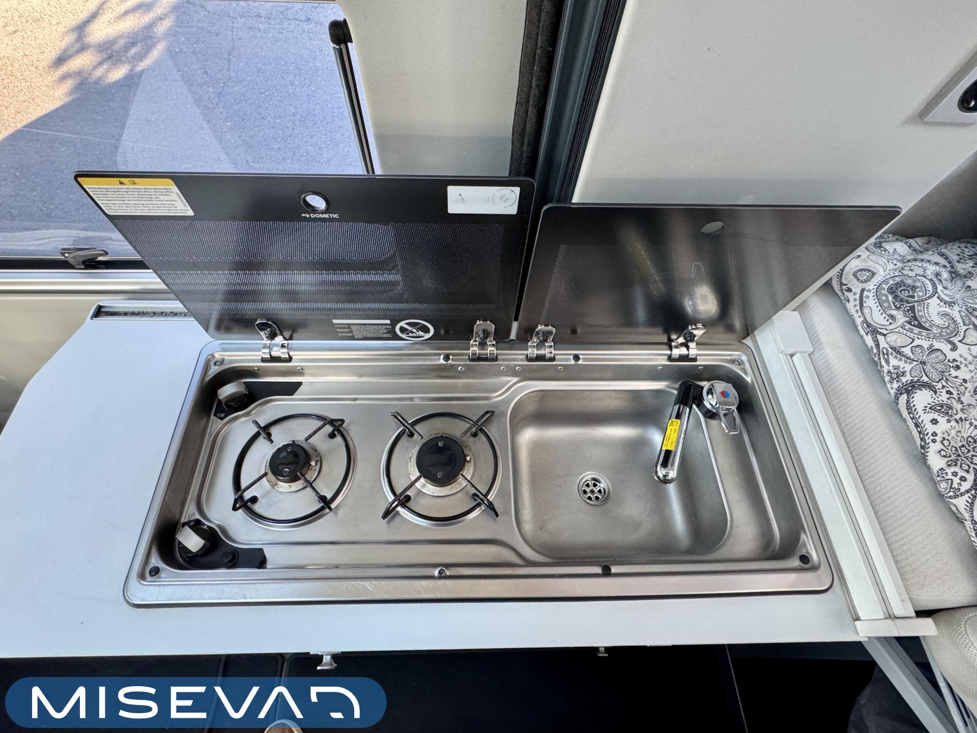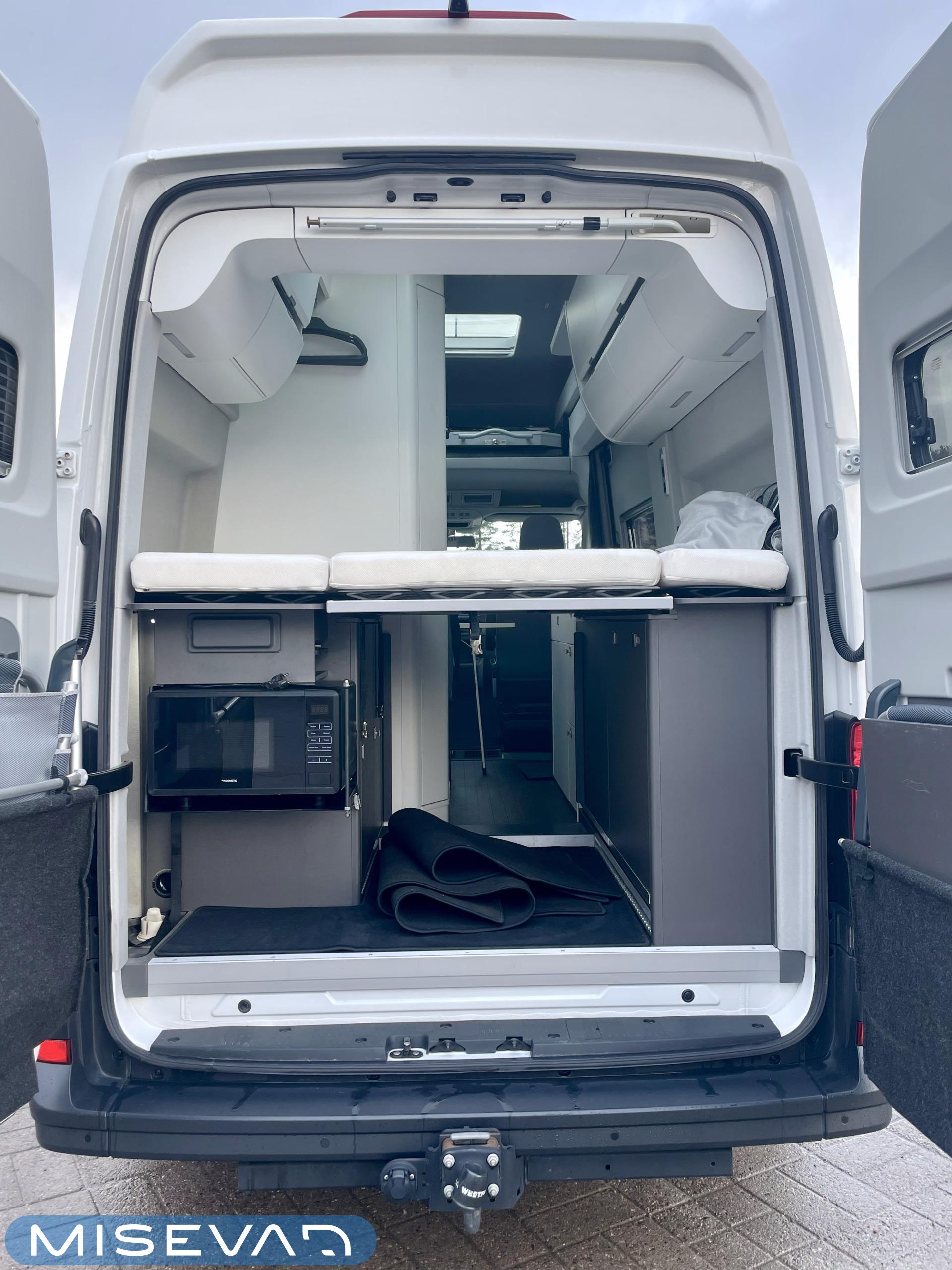 Ajomukavuus ja tyylikkyys on huipussaan tässä Crafterin alustalle tehdyssä Grand Californiassa. Kyseisessä mallissa on vielä aavistuksen harvinaisempi diesel-lämmitin. Eli talvireissaamiseen erityisen suosittu vaihtoehto. Makuupaikat löytyy neljälle, takana parisänky ja ohjaamon yläpuolella on tilaa kahdelle lisää. Keittiö on toteutettu samanlaisella minimalistisella tyylikkyydellä kuin muukin auto. Asuintilaa suunnitellessa on mietitty myös paljon sen toiminnallisuutta, jääkaappi on esimerkiksi suoraan oven vieressä, fiksusti pois asuintilaa viemästä. Kaupassa käynnit on helppo toteuttaa tämän ratkaisun kanssa. Ostoskärrystä saa ladattua suoraan ruoat kaappiin. Grand California on retkeilyautoista tyylikkäimmästä päästä ja jos ajomukavuus on sinulle tärkeä kriteeri, niin tämä kannattaa tulla koeajamaan. Tule Misevalle tutustumaan ja ihastumaan tähänkin upeaan retkeilyautoon!
