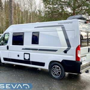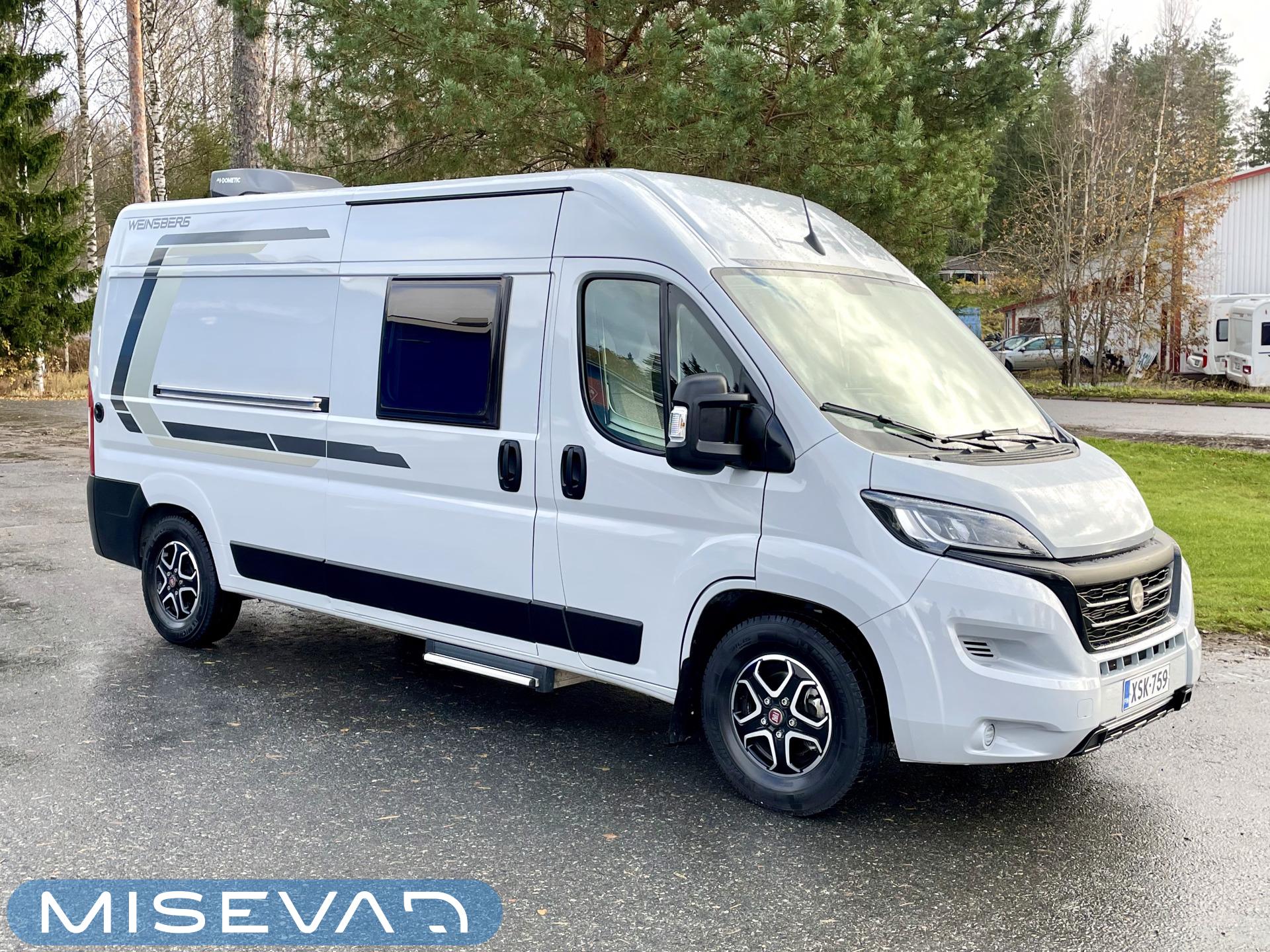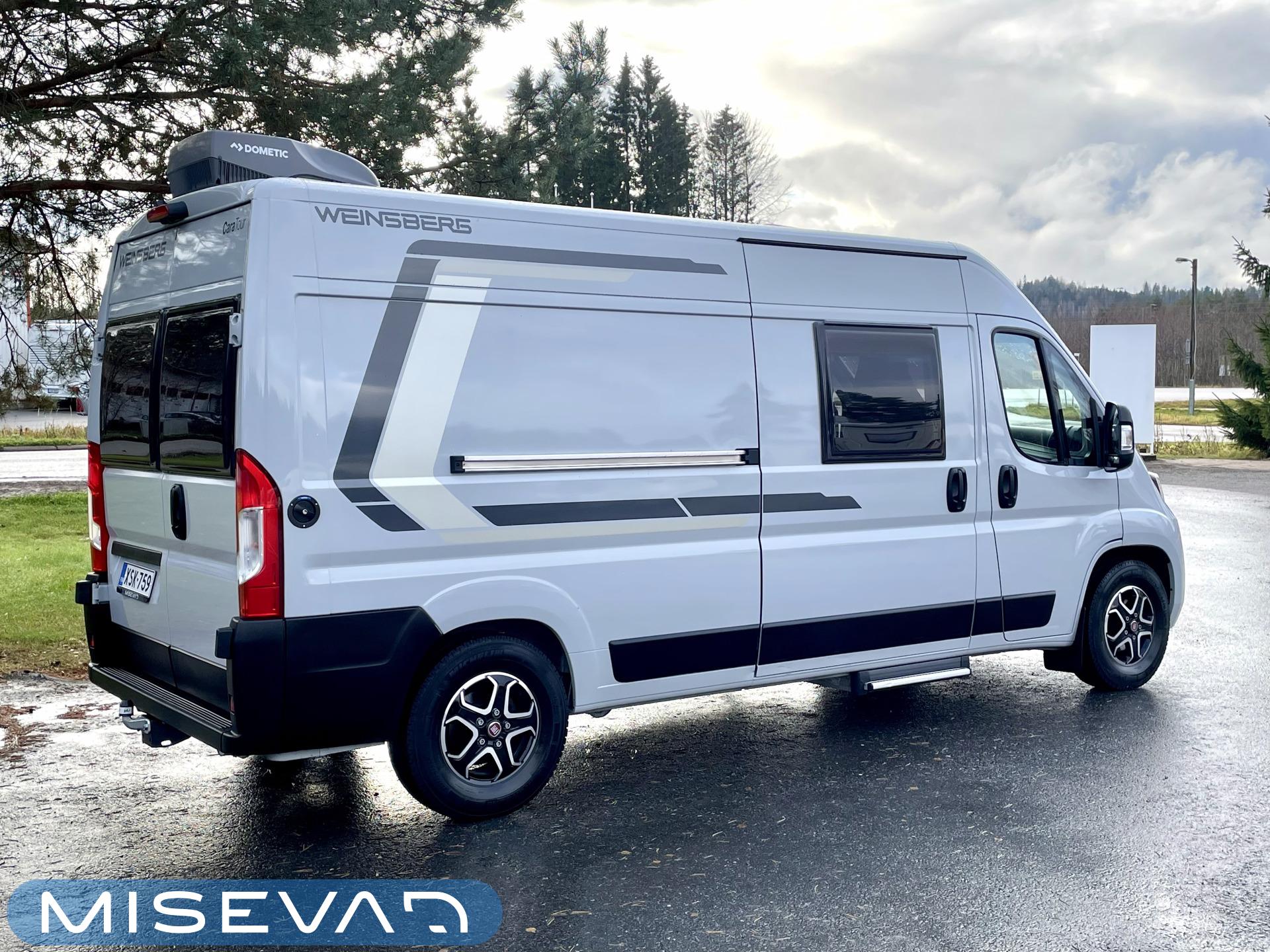 Weinsbergin retkis miellyttää silmää niin ulkoa, kuin sisältäkin. Tyylikkään harmaan eri sävyillä on saatu sisätilaan luotua hillittyä rauhallisuutta. Pinnat on upeassa kunnossa ja auto on juuri sisään ajettu kilometrien osalta. Tähän kuusi metriseen retkikseen on saatu mahtumaan pitkittäisvuoteet taakse. Samassa kokoluokassa harvinaisempi herkku. Toinen herkku on tupla ilmastointi, se löytyy sekä ohjaamosta, että asuinosasta. Ja jos kokkaaminen on lähellä sydäntäsi, niin tässä retkiksessä keittiön kokoon ja toiminnallisuuteen on panostettu. Yläkaappi on iso, vaikkapa kuivamuonan säilytykseen ja vetolaatikostoihin mahtuu kipot, kupit, harukat ja veitset. Sekä kompaktiin jääkaappiin tarvittavat ruoka-ainekset. Laskutilaa on mukavasti lisäpöydän ansiosta. Ruokapöydästä saa väliaikaisen sängyn ja pienen kokonsa ansiosta se ei vie liikaa tilaa ruokapöytänä. Etupenkit on tottakai kääntyvää sorttia. Potkua Fiatissa riittää ja tämä auto odottaakin vain seuraavia, suuria seikkailuita. Tule tutustumaan ja koeajolle, tällä on mukavia kilometrejä vielä runsaasti edessä.