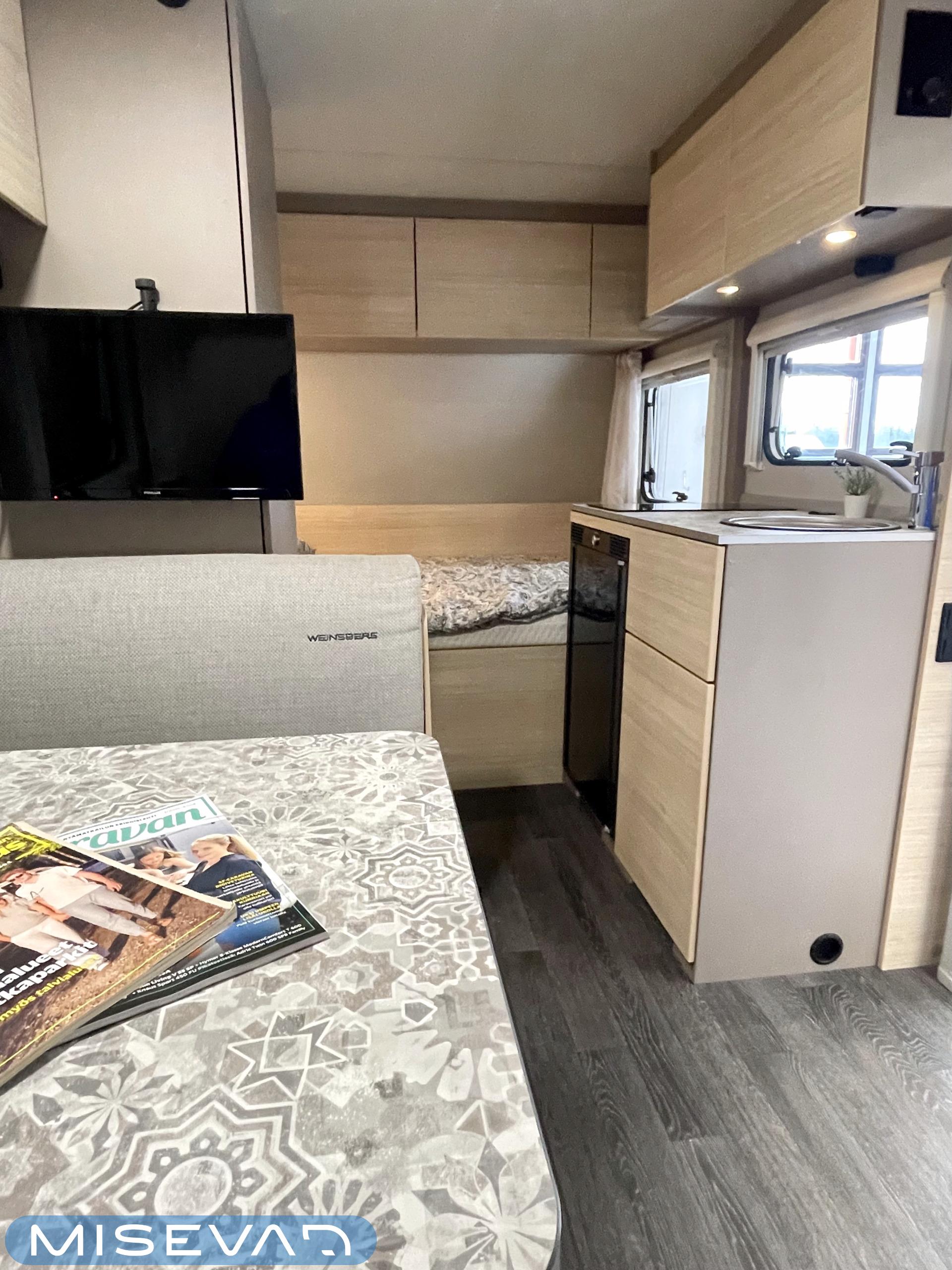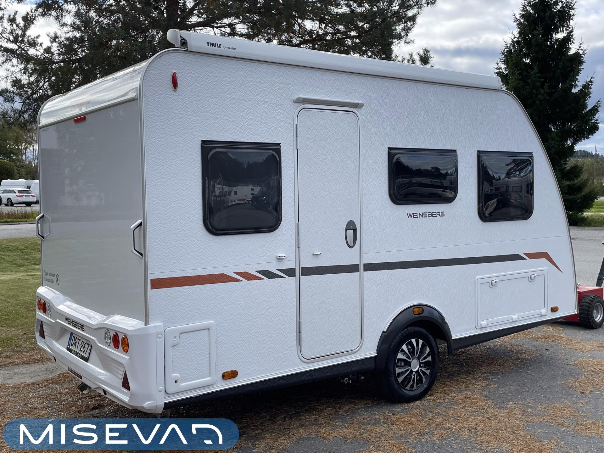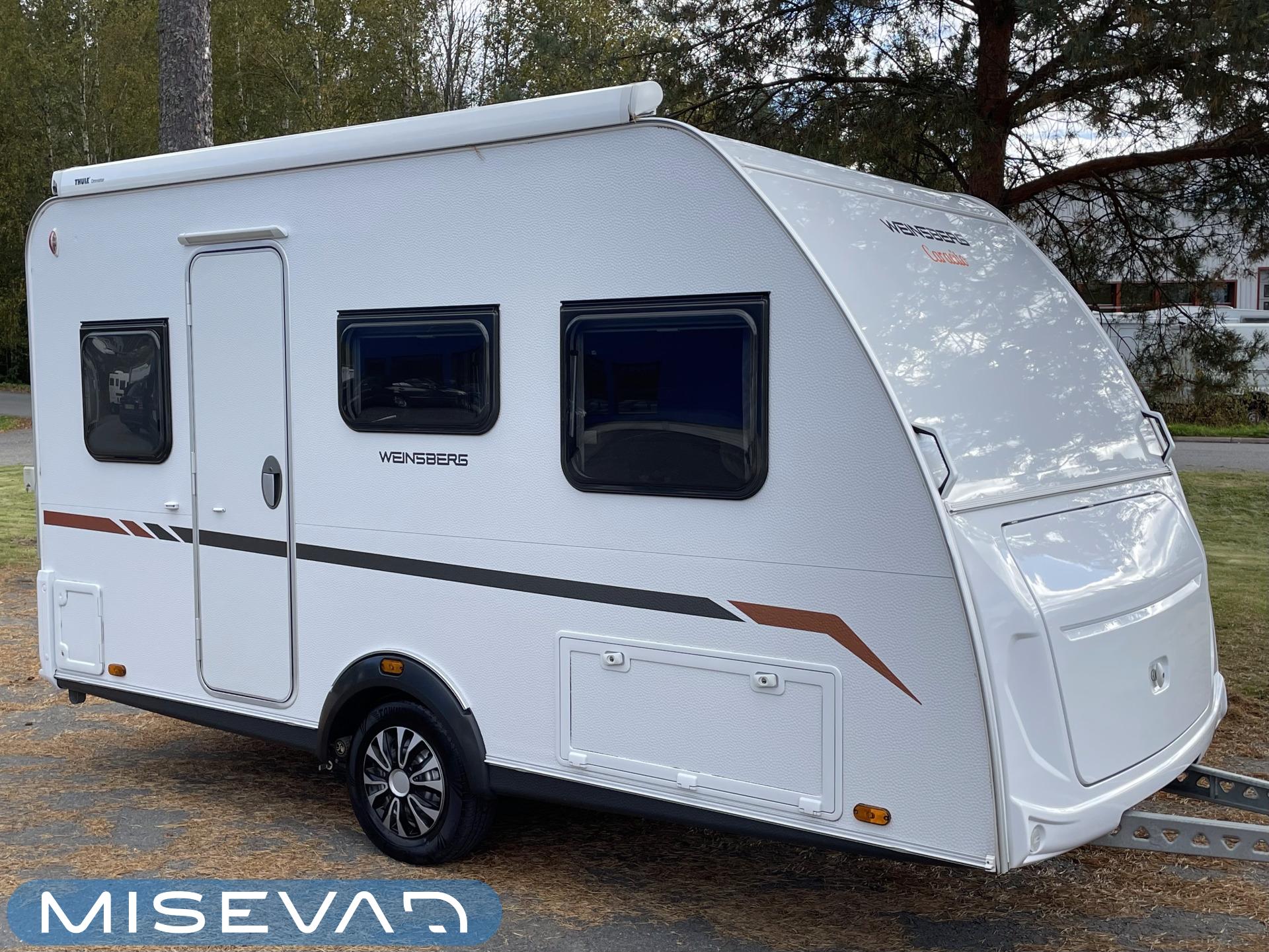 Nyt on sähköautoilijoille mahtava mahdollisuus tutustua caravaaniharrastuksen saloihin. Toki tämä vaunu palvelee ihan samalla lailla myös polttomoottoriautoilijoita, mutta muutamat ominaisuudet palvelevat etenkin sähköautoilijoita, jos autossa on V2L toimintoa tukeva ominaisuus. Kevyt vedettävä (omamassa 830kg / kok.massa 1200kg) ja ei tarvitse raahata mukana turhaa painoa esimerkiksi kaasupullojen muodossa. Vaunussa ei siis ole kaasujärjestelmiä ollenkaan, vaan kaikki toimii sähköllä. Vaunun etuosassa on poikittainen parivuode ja sen alle jää säilytystiloja minne on pääsy myös ulkopuolen luukun kautta. Keskeltä löytyy keittiö induktioliedellä, kompressorijääkapilla, sekä tietysti vesipisteellä. Takana on WC/kylpyhuonetilat ja vastakkain istuttava pöytäryhmä mistä saadaan vuode kahdelle henkilölle. Dometicin ilmalämpöpumppu jäähdyttää sisätilat kesällä ja toki sillä voi energiatehokkaasti myös lämmittää vaunua ( tukee toimintoa -5 asteeseen asti). Keittiössä kokkailu onnistuu modernisti induktiolieden avulla. Ilmalämpöpumppu ja liesi (kuten myös lämminvesiboileri) vaatii toimiakseen verkkovirran (230 volttia) ja näitähän voidaan sitten käyttää sähköauton V2L toiminnon avulla, jos ei ole sähköverkkoa tarjolla. Valaistus, jääkaappi ja vaununsiirtolaite toimii 12 voltin akkujännitteen avulla. Akku latautuu verkkovirrassa, sekä kookkaan aurinkopaneelin avulla. Uudenkarhea vaunu missä on tehtaan tiiveystakuu voimassa. HUOM YRITTÄJÄT, hinta sisältää alvin 25,5%!