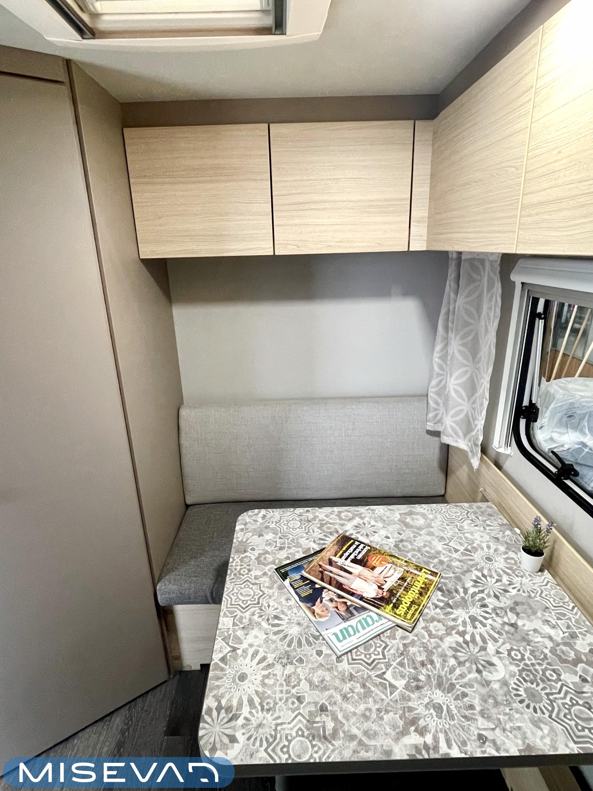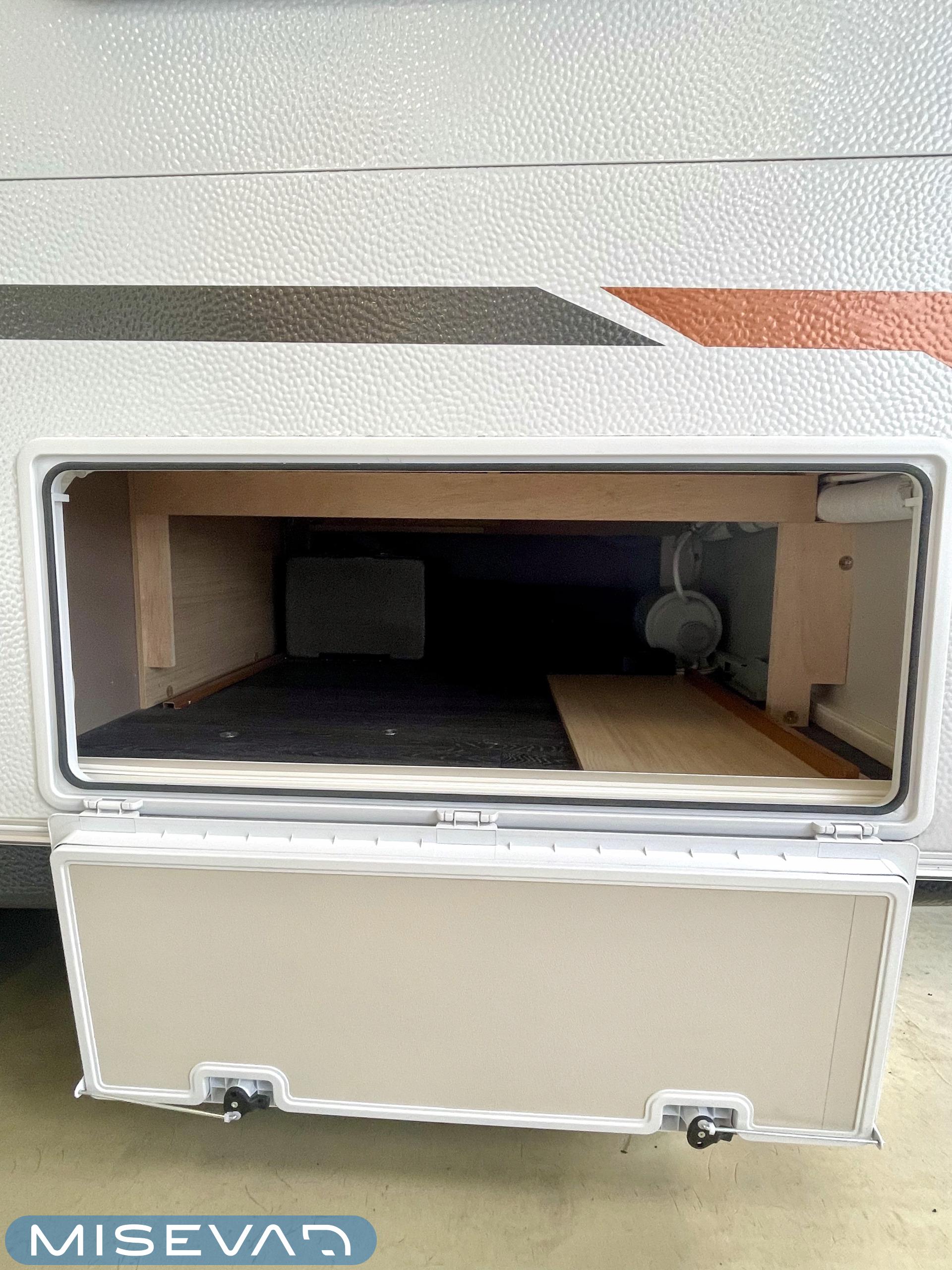 Aurinkopaneeli, Ilmastointi: Automaattinen, Jääkaappi, Kasetti WC, Kasettiverhot, Kattoluukku, Lattialämmitys, Liesi, Lämminvesiboileri, Markiisi, Pakastelokero, Parivuode, Pesuallas, Sisätilanpistoke, Tukijalat, Ilmastointi (asuintila), Kesärenkaat, Asuinosan hyttysovi/verho, vaunusiirtolaite (Mover)
