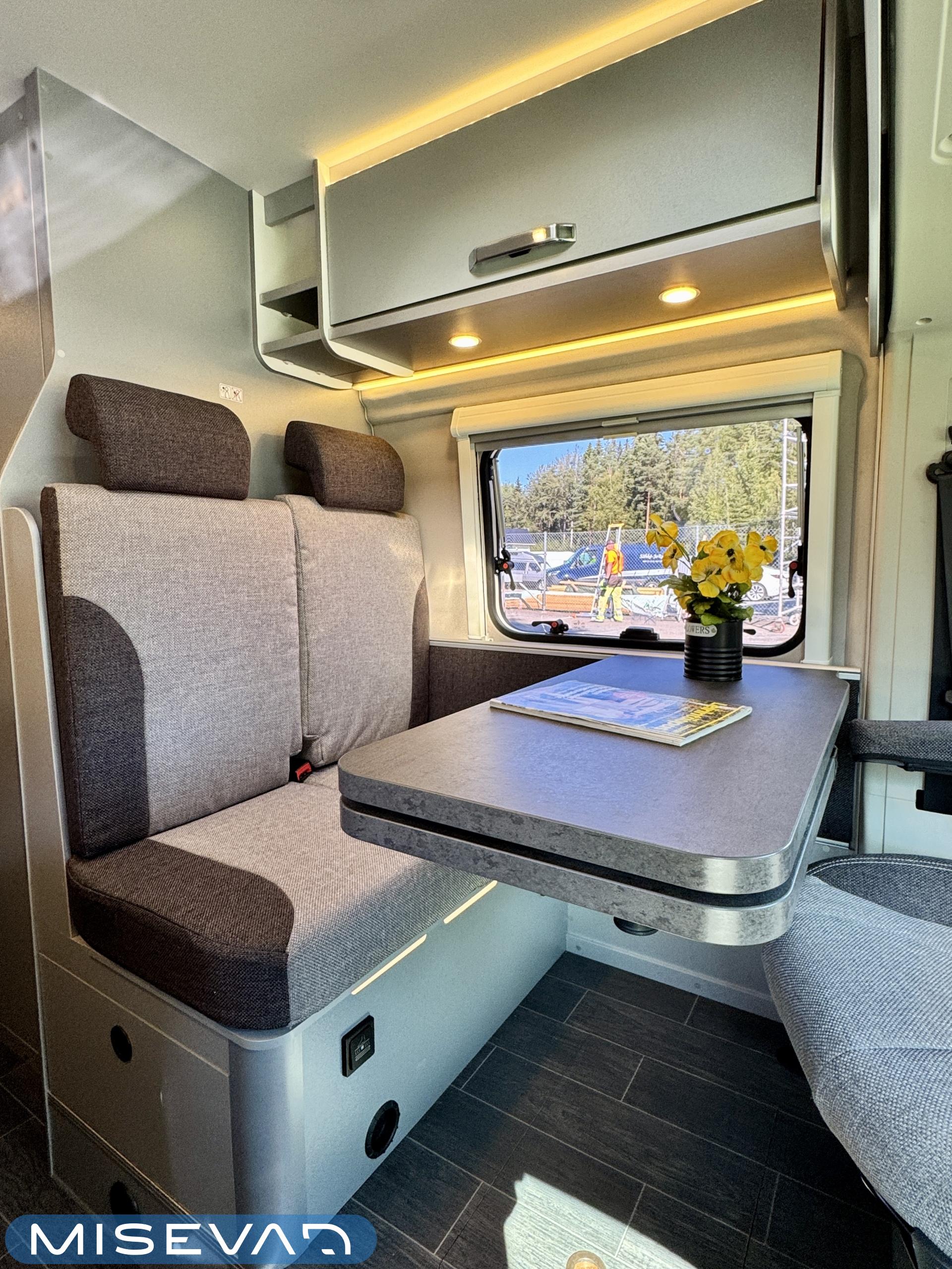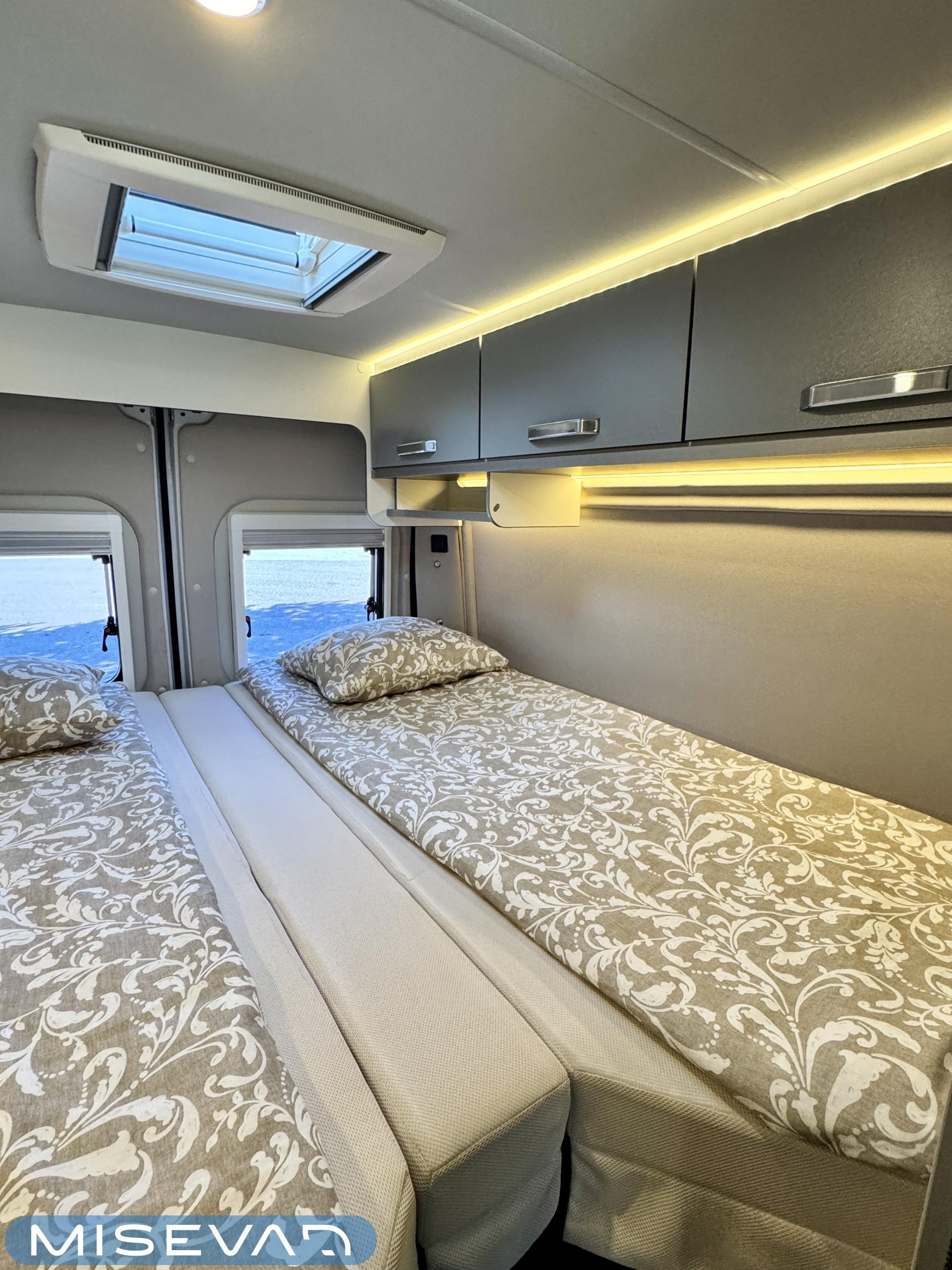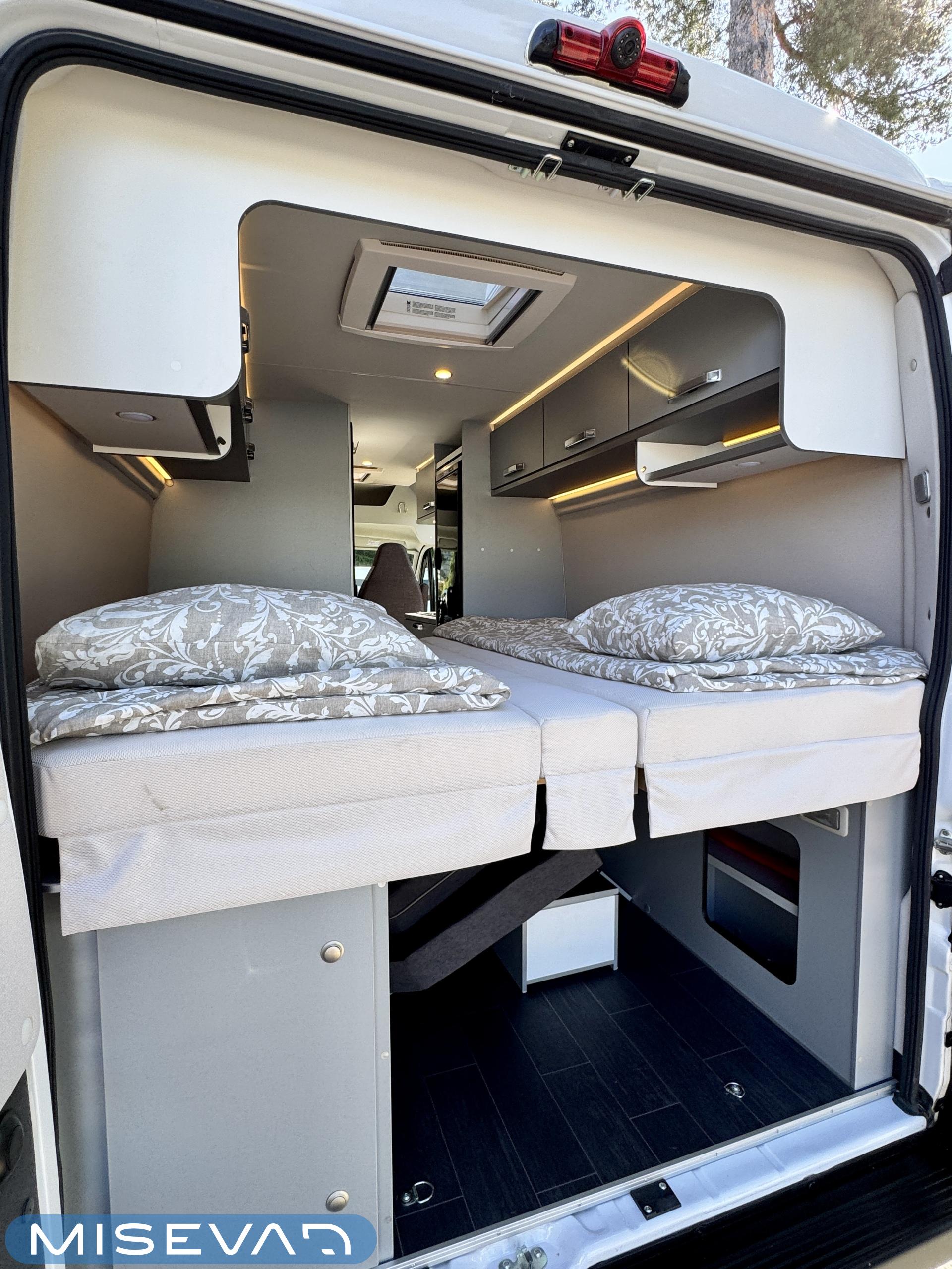 Tästä ei matkakumppani juuri parane. Auto on kuin luotu pidempiaikaiseen oleskeluun puskissa tai missä vain. Jääkaappi on esimerkiksi vaihdettu suurempaan, että ruokaa riittää useammaksi viikoksi kerrallaan. Aurinkopaneeli ja 200Ah akut tekevät tästä autosta hyvin omavaraisen sähkön suhteen. Parasta on tietysti retkeilyauton takana olevat pitkittäiset sängyt. Väliosalla sängystä saa yhden ison makoiluparatiisin, kooltaan 200 x 190. Ajettavuudeltaan retkis on kuin henkilöautolla ajelisi. Mahdottoman mukava ajettava. Kuvat kertovat auton siisteydestä enemmän kuin tuhat sanaa. Jos olet vakavasti miettimässä laadukkaan retkeilyauton ostamista, niin tähän kannattaa tulla tutustumaan.