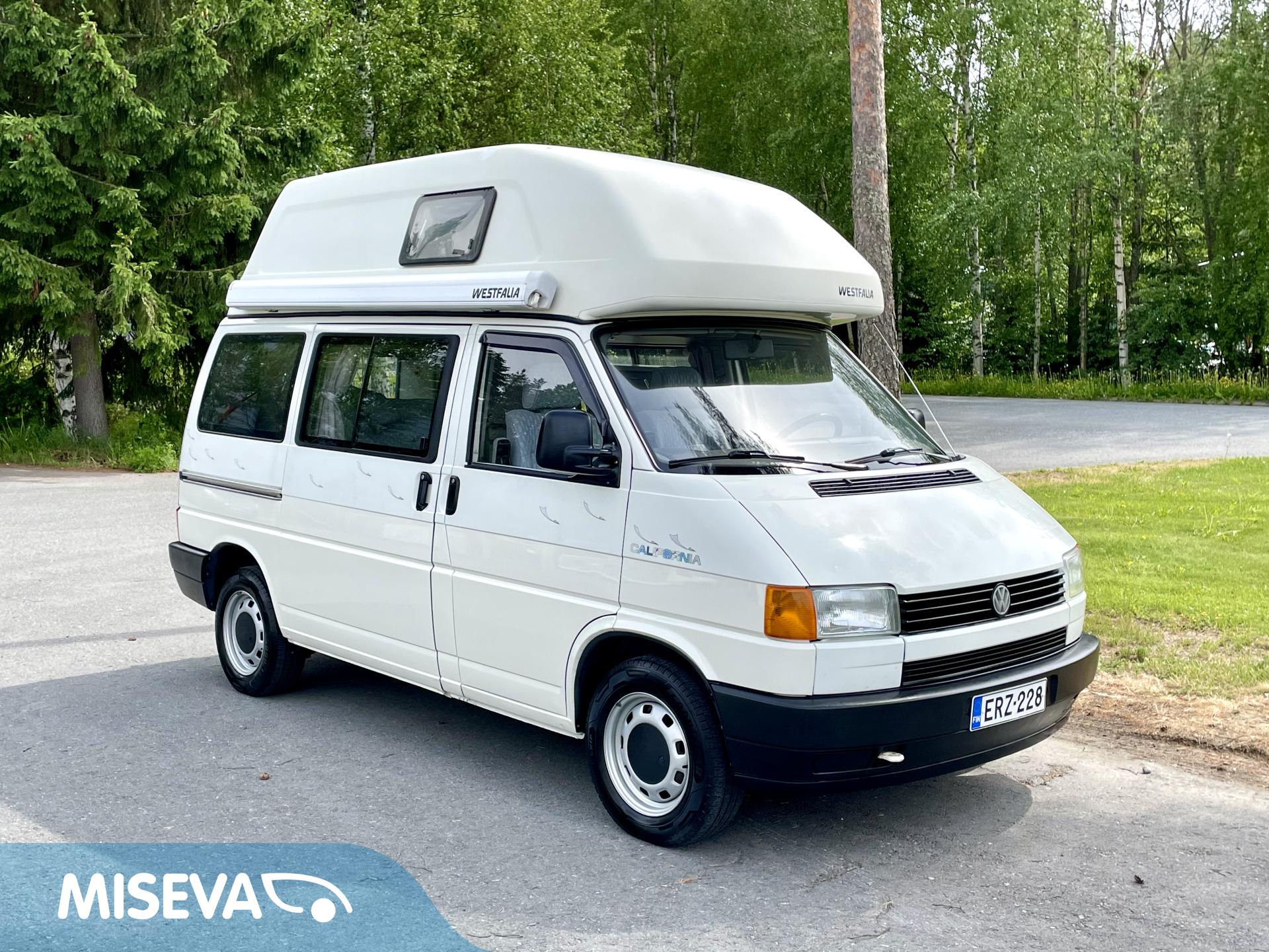Nyt on tarjolla jotain mitä ei tule vastaan joka päivä, tai joka viikko tai ehkä edes joka vuosi?! Hienossa kunnossa ja hyvällä ylläpidolla ollut Westfalian klassikko California ja Volkkarin T4 koriin marinoituna. Kerrankin autosijoitus missä arvo luultavasti vaan kasvaa vuosi vuodelta. Viimeisen 4 vuoden aikana entrattu komiaan kuntoon ja alkuperäisiä Westfalian osia käyttäen. Tekniikkaa myös huollettu samalla, mm. vaihteistoon tehty täysi remppa. Iso nippu löytyy kuitteja. Museorekisteröity 7/24 ja tarkastajilta mm. seuraavanlaisia arvioita : ”Ajomäärään nähden siisti kokonaisuus, sisustus on monin osin aivan kulumattoman oloinen”. Löytyy markiisi, kompressori jääkaappi, dieseltoiminen asuintilan ilmapuhallinlämmitys, vetokoukku (1910kg/700kg), tiskiallas, liesi, 200ah hupiakku eli kaikki normaali matkailuauton infra. Alas saadaan istuimesta levitettyä vuode kahdelle henkilölle ja ylös tulee toinen vuode kahdelle henkilölle. Erittäin edullinen käyttää ja ylläpitää. Tätä autoahan ei rasita vuotuiset ajoneuvoverot tai käyttövoimaverot. Pakollinen museorekisteröidyn auton liikennevakuutuskin maksaa vain vähän reilu 30€ vuodessa. Katsastus 4 vuoden välein. Mahtava mahdollisuus … kuka kerkeää ensimmäisenä poimimaan itselleen tämän harvinaisuuden?