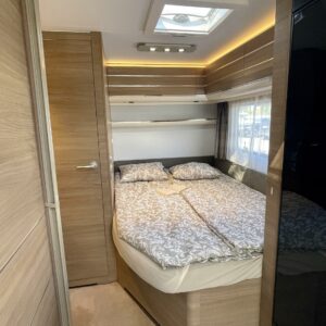Pyöräteline, Pitkittäinen parivuode, Alde- nestekiertoinen keskuslämmitys, Sähköpatruuna, Suihku, Lattialämmitys (sähkö), Kasettiverhot, Kasetti WC, Liesi, liesituuletin, Jääkaappi, Pakastelokero, Parivuode, Tukijalat, Pesuallas, Markiisi