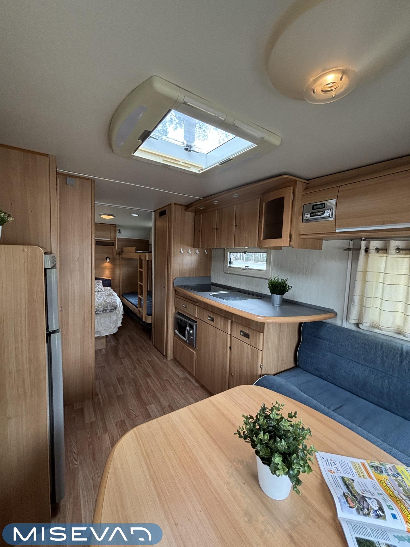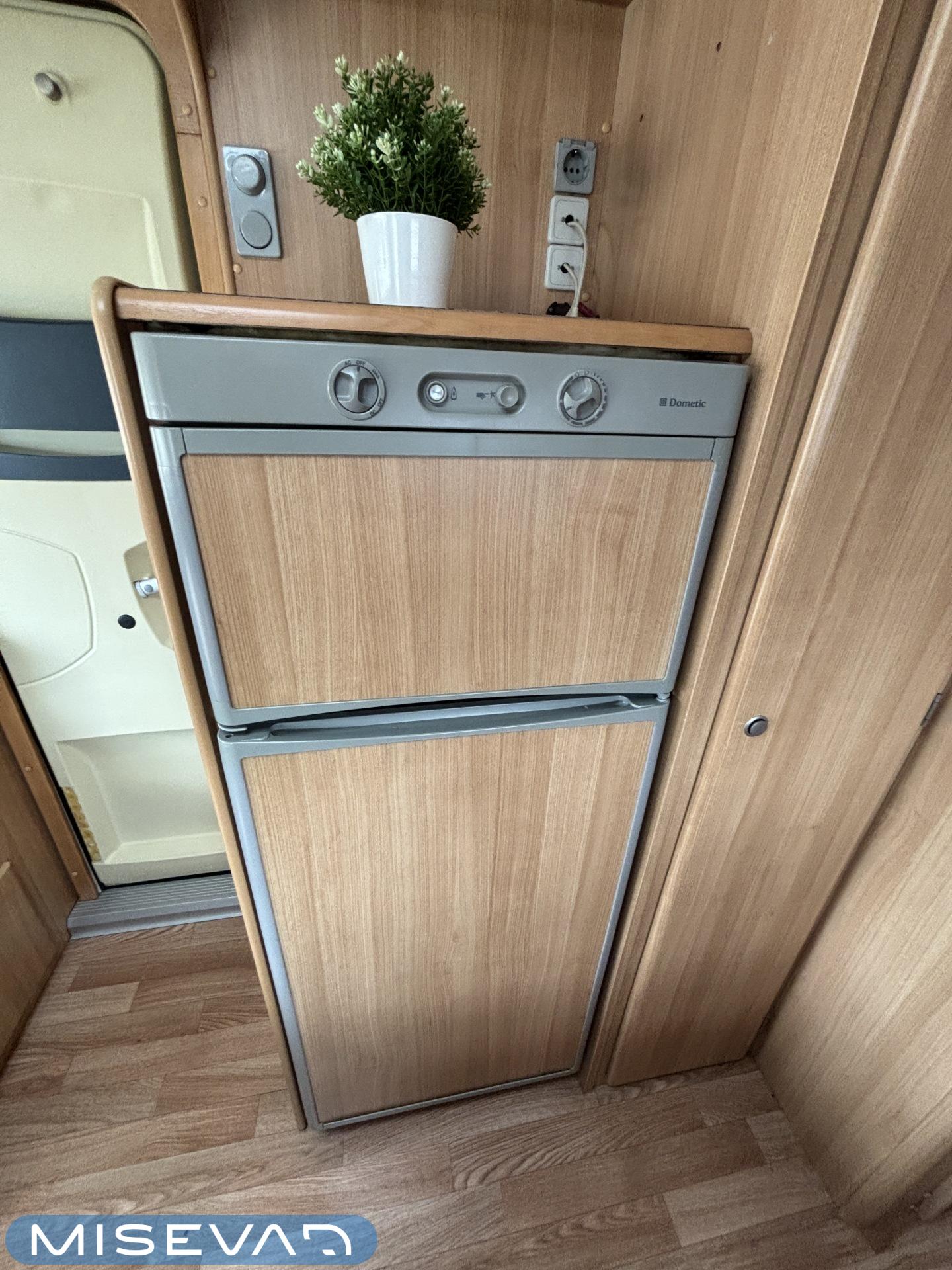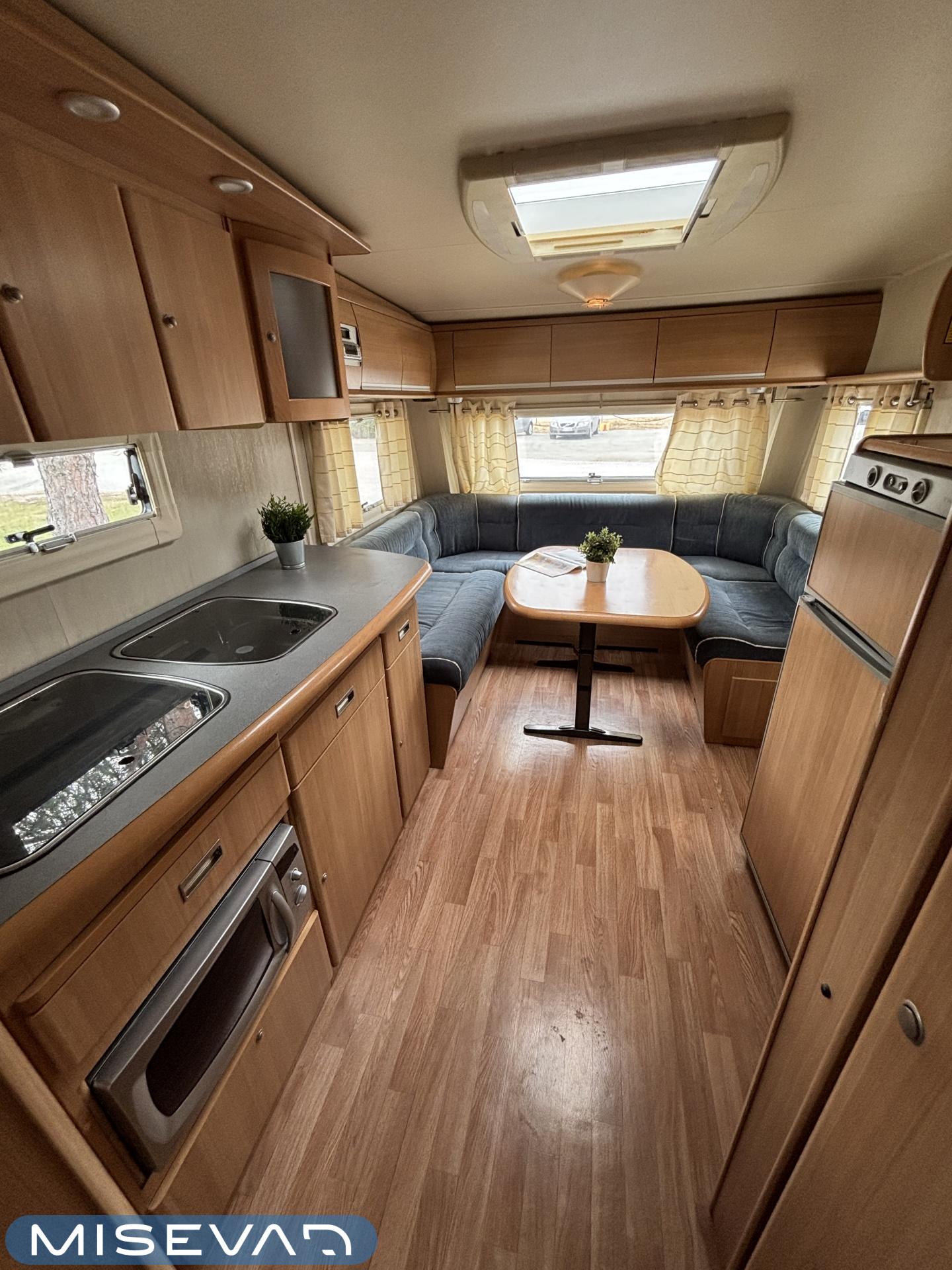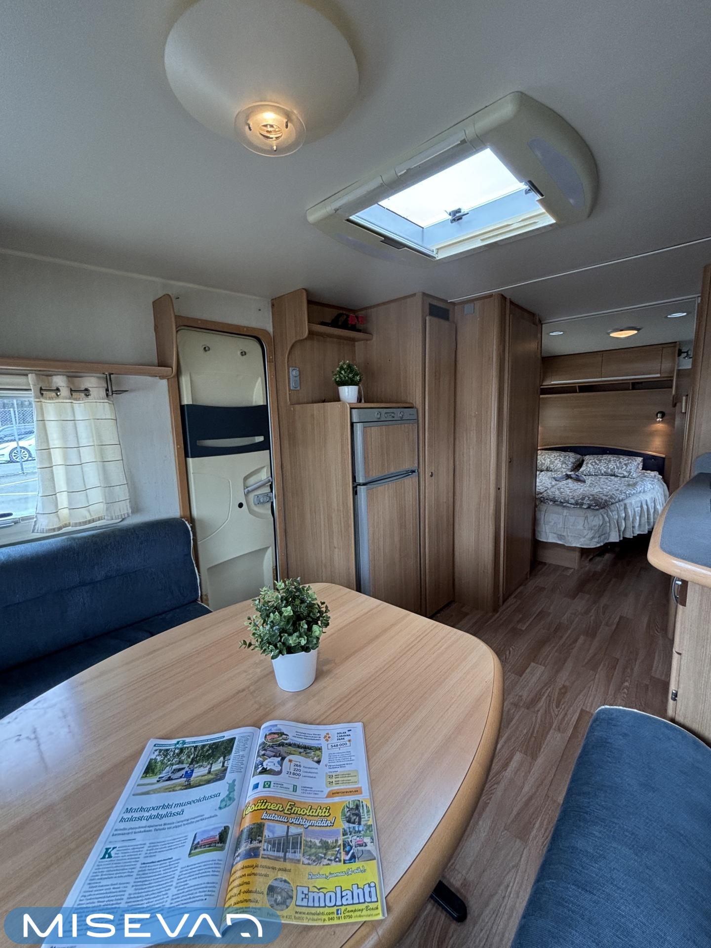Alde, Lattialämmitys (sähkö), Markiisi, 2 (ok) renkaat, televisioteline, Mover, Erillisvuoteet, Jääkaappi, Kasetti WC, Kattoluukku, Liesi, Lämminvesiboileri, TV-antenni tai lautasantenni, Tukijalat