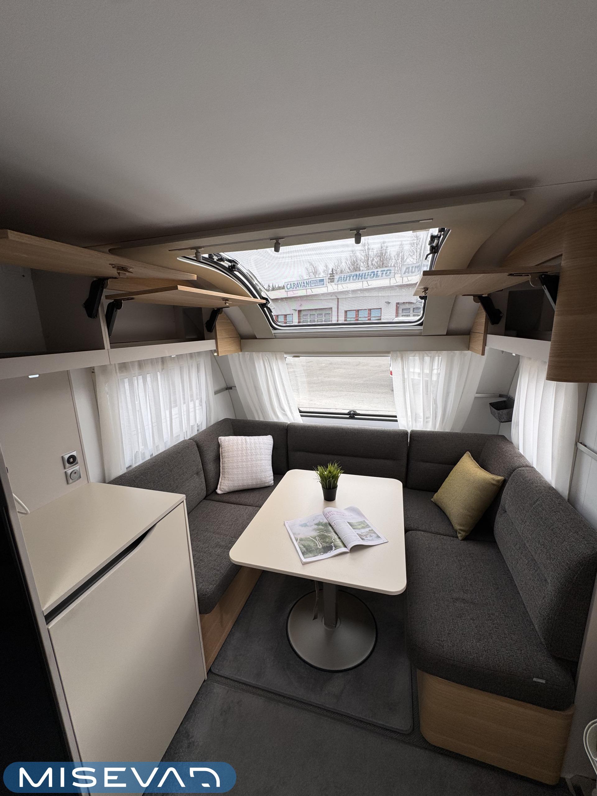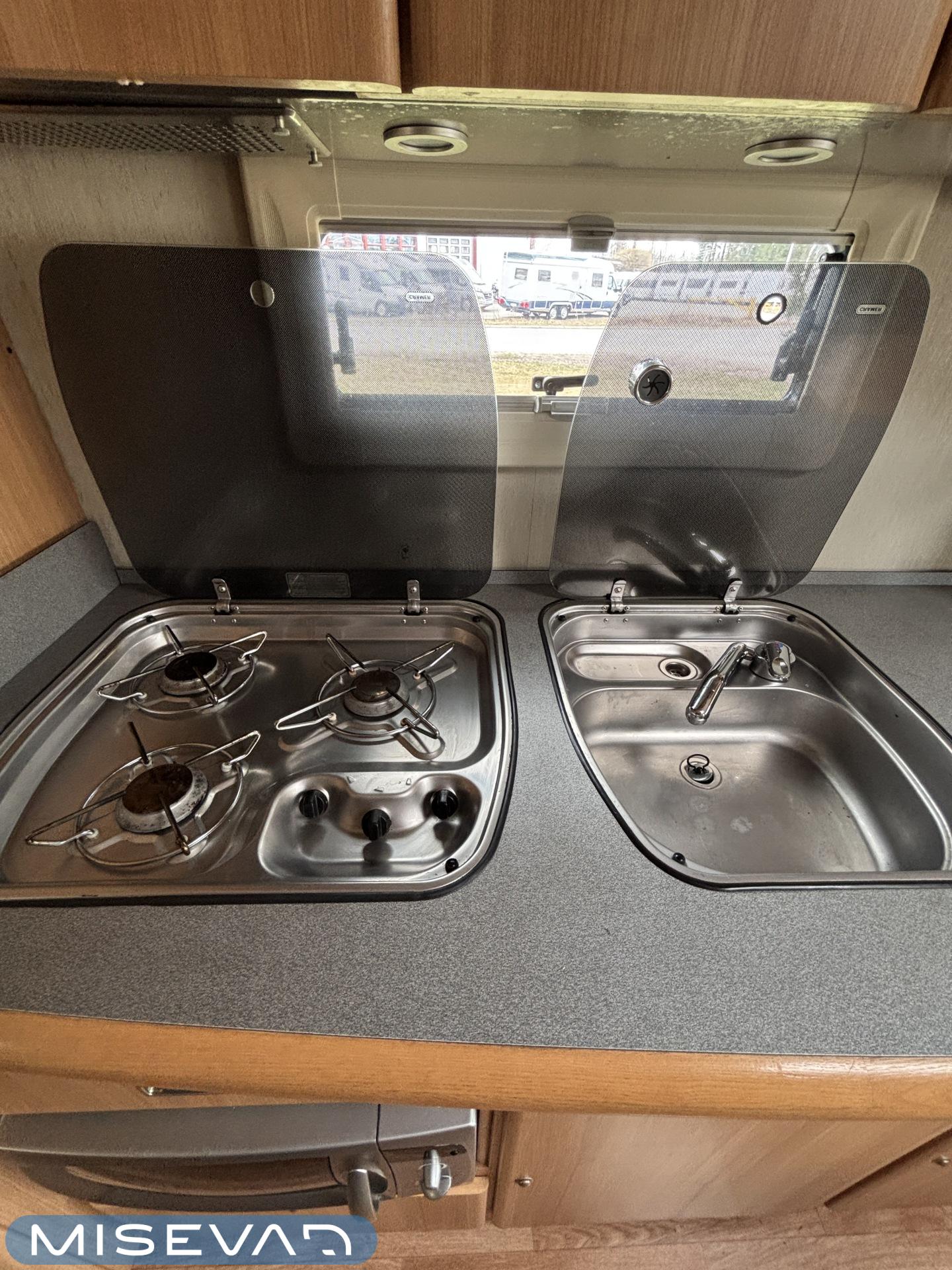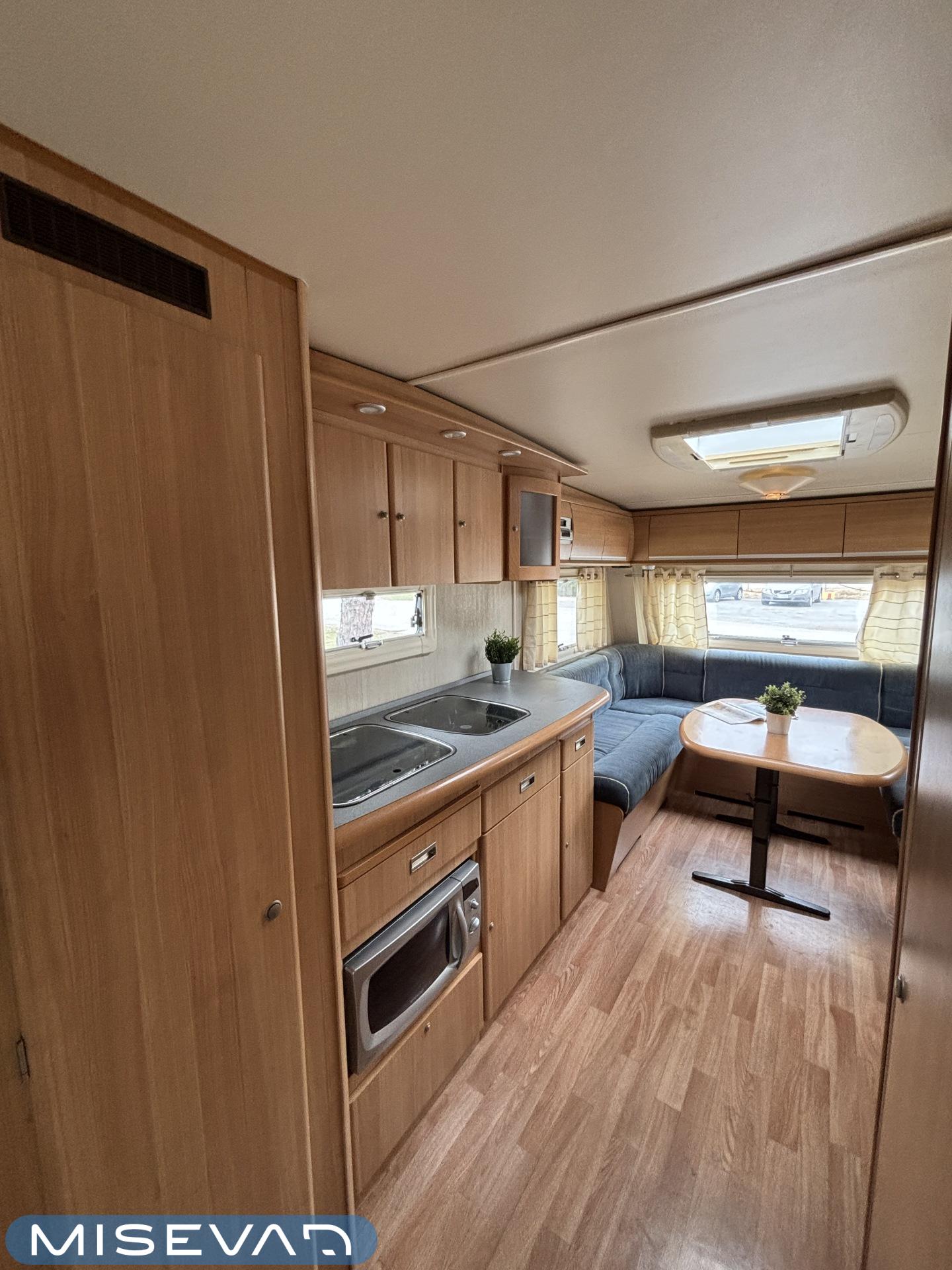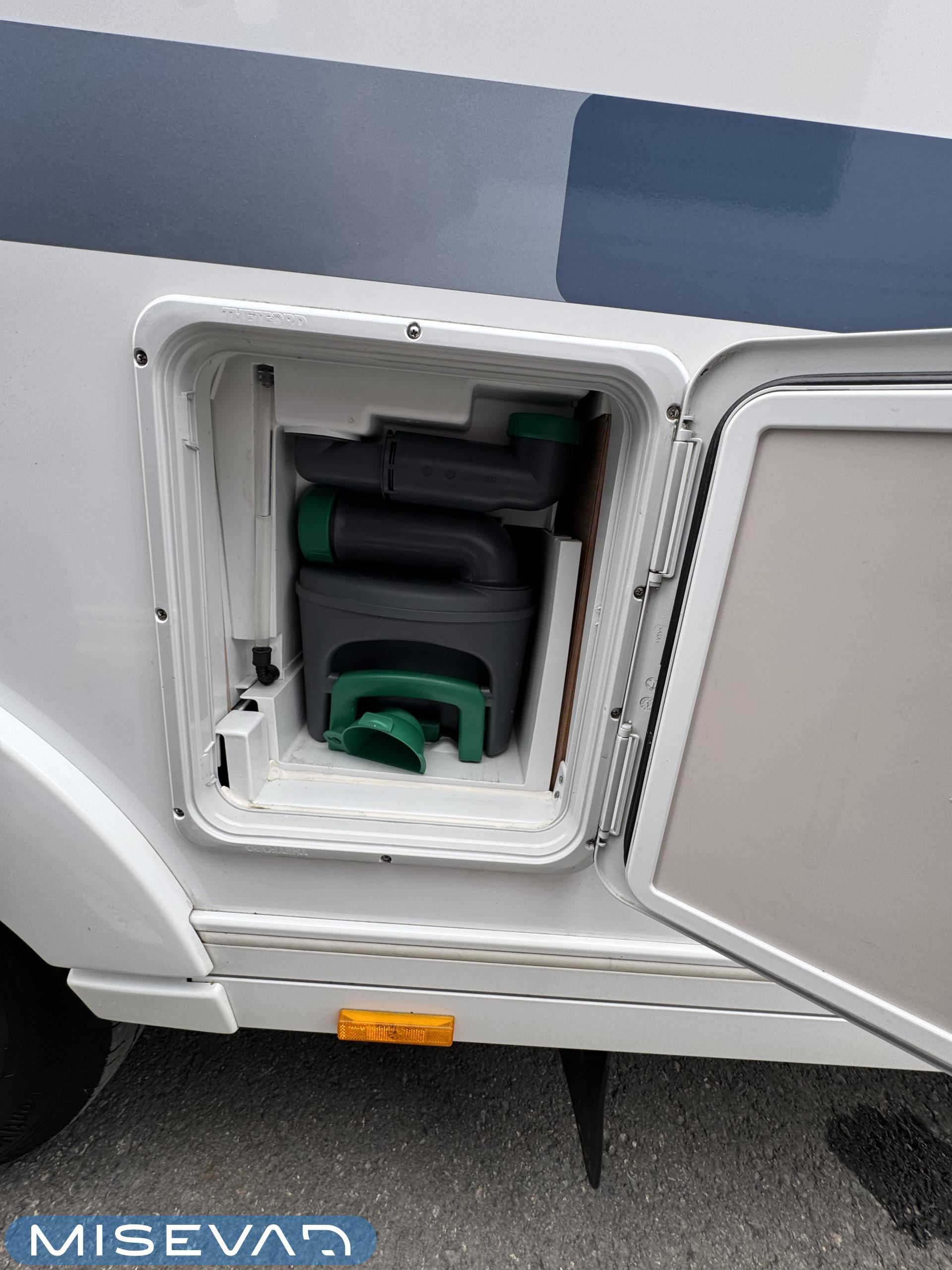 Alde, Lattialämmitys (sähkö), Markiisi, 2 (ok) renkaat, televisioteline, Mover, Erillisvuoteet, Jääkaappi, Kasetti WC, Kattoluukku, Liesi, Lämminvesiboileri, TV-antenni tai lautasantenni, Tukijalat