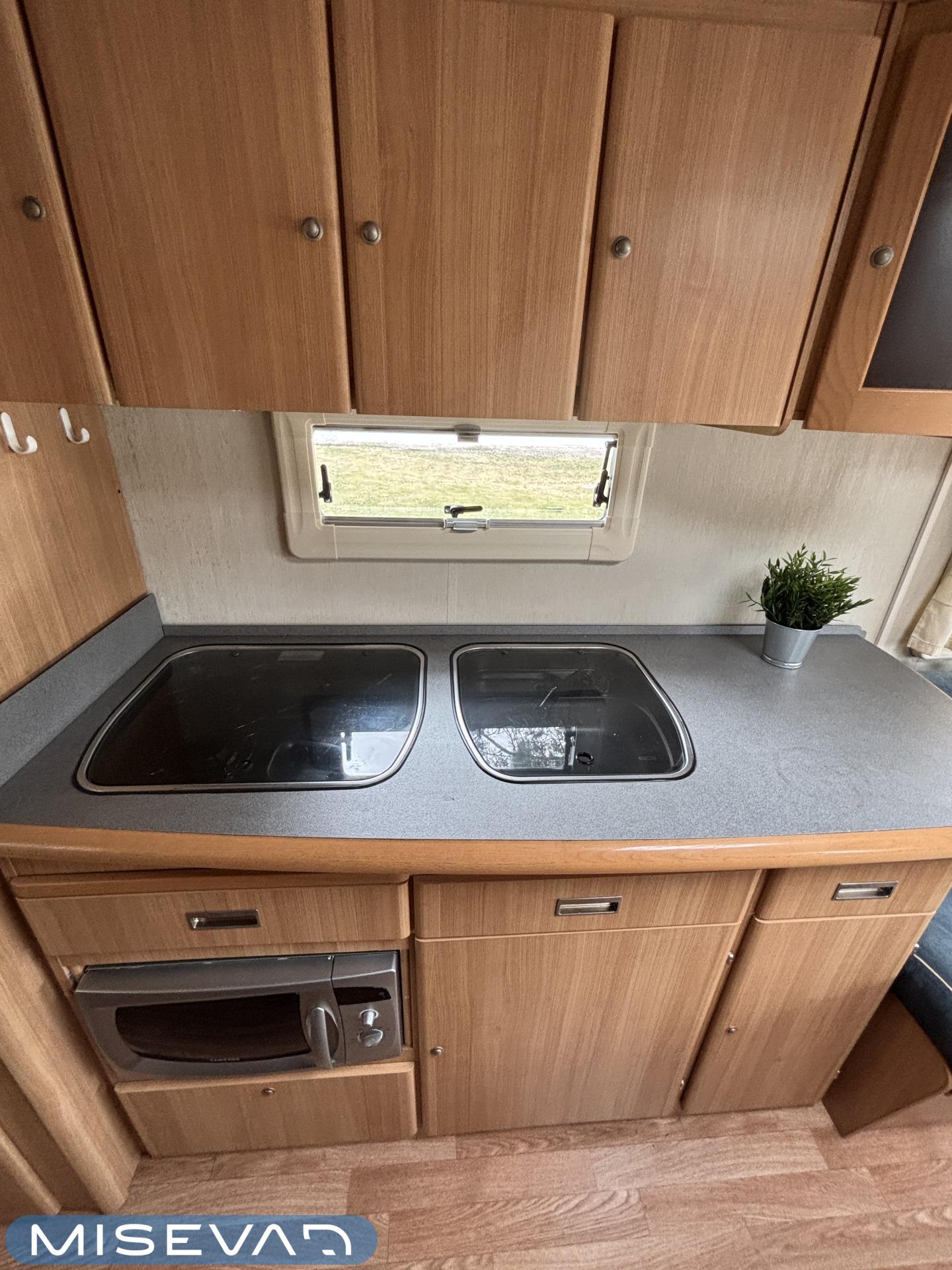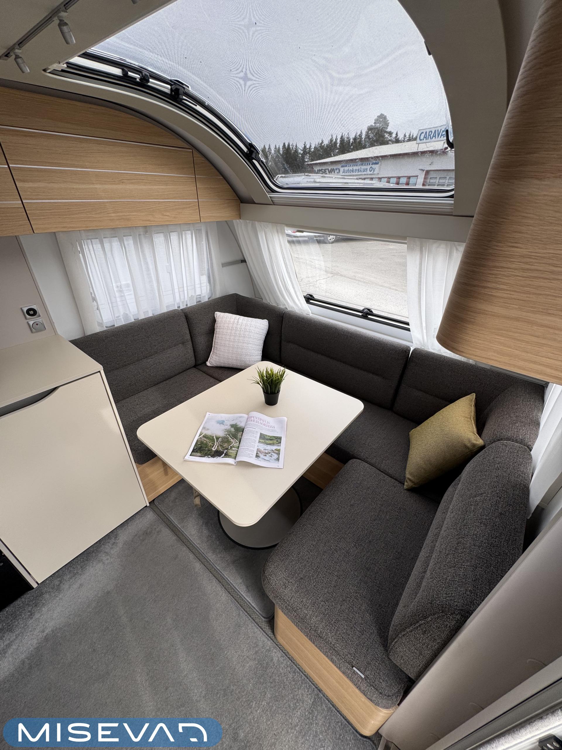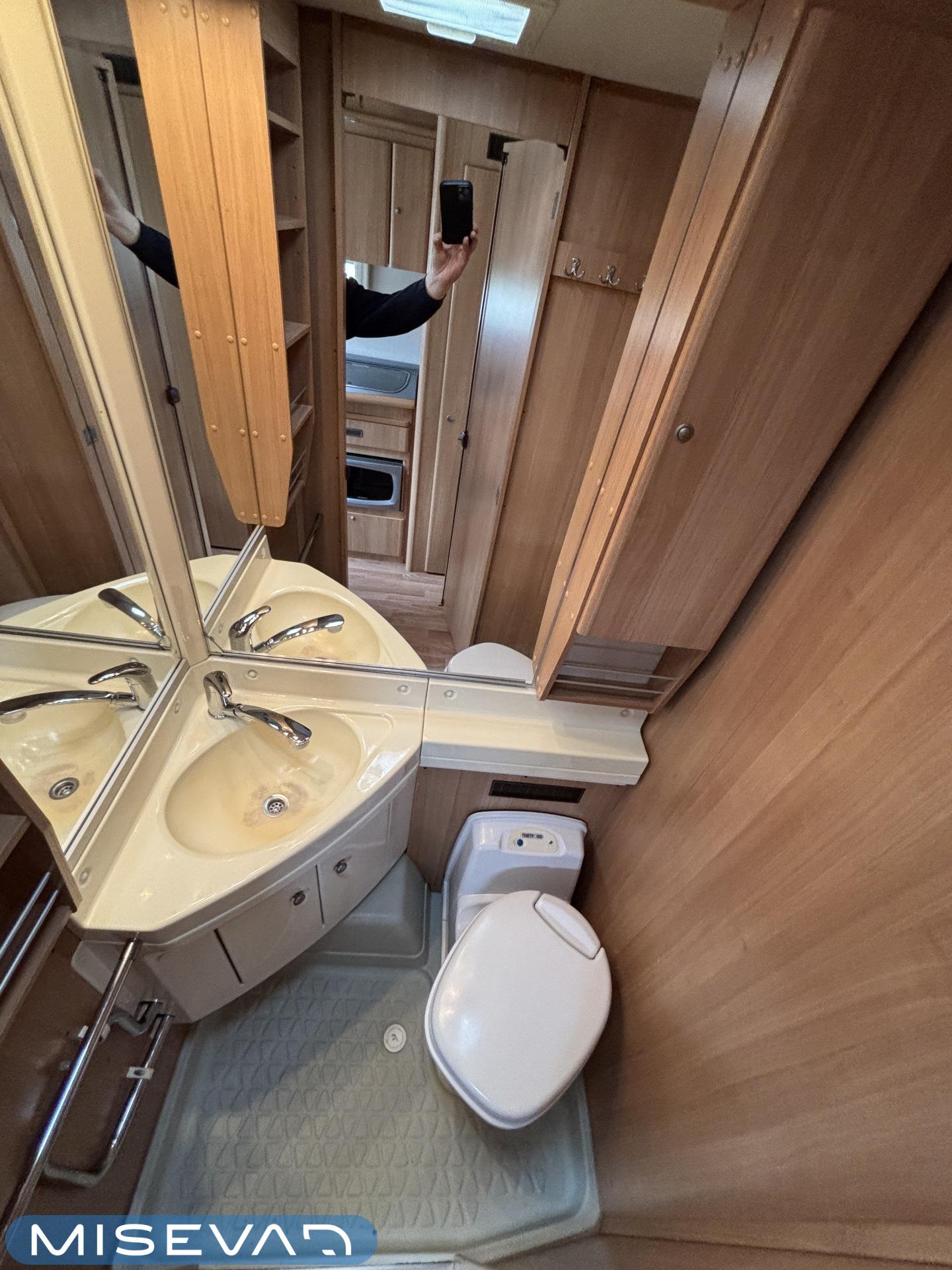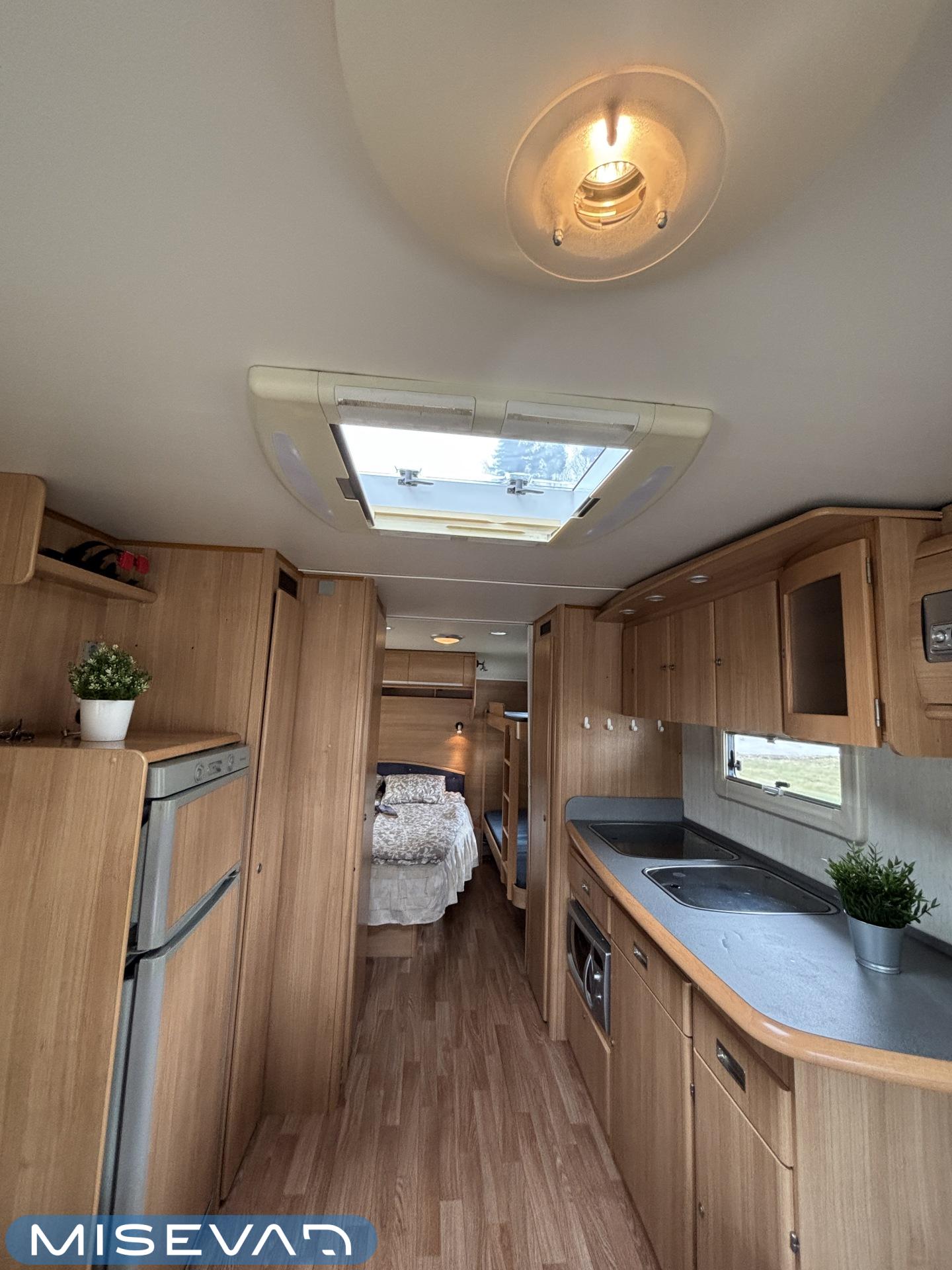 Alde, Lattialämmitys (sähkö), Markiisi, 2 (ok) renkaat, televisioteline, Mover, Erillisvuoteet, Jääkaappi, Kasetti WC, Kattoluukku, Liesi, Lämminvesiboileri, TV-antenni tai lautasantenni, Tukijalat
