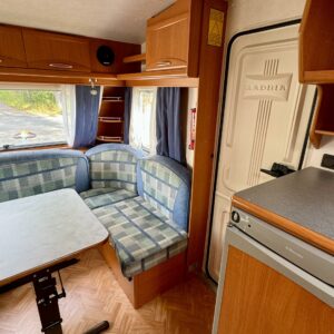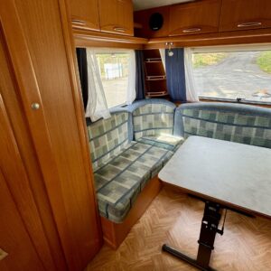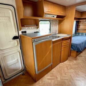 Kasettiverhot, Kasetti WC, Jääkaappi, Kattoluukku, Liesi, Lämminvesiboileri, Markiisi, Pesuallas, Pakastelokero, Tukijalat, Alde, Erillisvuoteet
