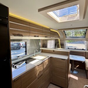 Alde, Erillisvuoteet, Kasetti WC, Kasettiverhot, Kattoluukku, Lattialämmitys, Lattiamatot asunto-osassa, Liesi, Pesuallas, Pakastelokero, Mikroaaltouuni, Markiisi, Lämminvesiboileri, Suihku, Sähköpatruuna, Tukijalat