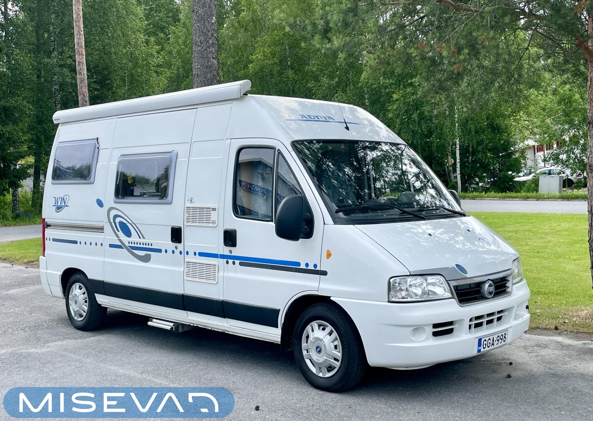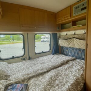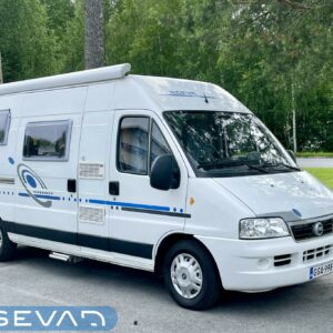 Kahdet renkaat, Kasetti WC, Kasettiverhot, Jääkaappi, Kattoluukku, Sähkörappu, Vetokoukku, Pesuallas, Parivuode, Pakastelokero, Ohjaustehostin, Trumatic, Airbag, Markiisi, Lohkolämmitin, Liesi, Radio, Suihku