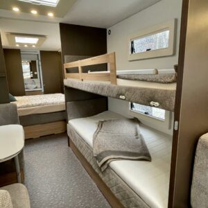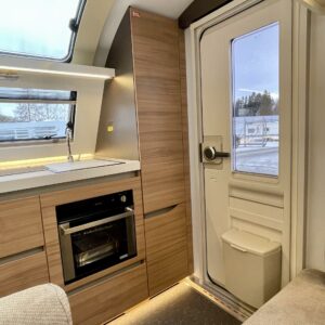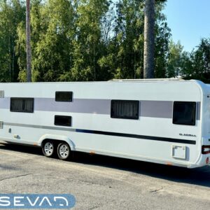 Alde, Jääkaappi, Kaasu-uuni, Kahdet renkaat, Kasetti WC, Kasettiverhot, Kattoluukku, Kerrossänky, Liesi, Lämminvesiboileri, Mikroaaltouuni, Nestekiertolämmitys, Pakastelokero, Parivuode, Pesuallas, Suihku, Sähköpatruuna, Tukijalat, Lattialämmitys (nestekierto), Kesärenkaat, Talvirenkaat(nasta), sähkön ulosotto