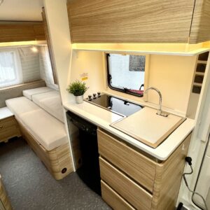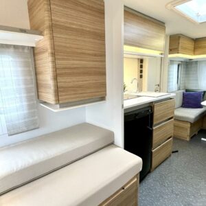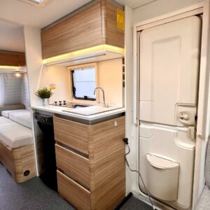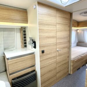 Truma, Erillisvuoteet, Ilmastointi: Automaattinen, Jääkaappi, Kasetti WC, Kasettiverhot, Kattoluukku, Lattiamatot asunto-osassa, Liesi, Lämminvesiboileri, Pakastelokero, Pesuallas, Sähköpatruuna, TV-antenni tai lautasantenni, Tukijalat, Ilmastointi (asuintila), televisioteline, Asuinosan hyttysovi/verho, mover
