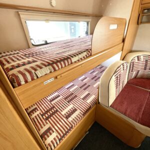 Alde, CD-soitin, Erikoisvanteet, Jääkaappi, Kasetti WC, Kasettiverhot, Kattoluukku, Kerrossänky, Lattialämmitys, Lattiamatot asunto-osassa, Liesi, Lämminvesiboileri, Nestekiertolämmitys, Pakastelokero, Parivuode, Pesuallas, Sähköpatruuna, TV-antenni tai lautasantenni, Tukijalat, Lattialämmitys (sähkö), Asuinosan hyttysovi/verho