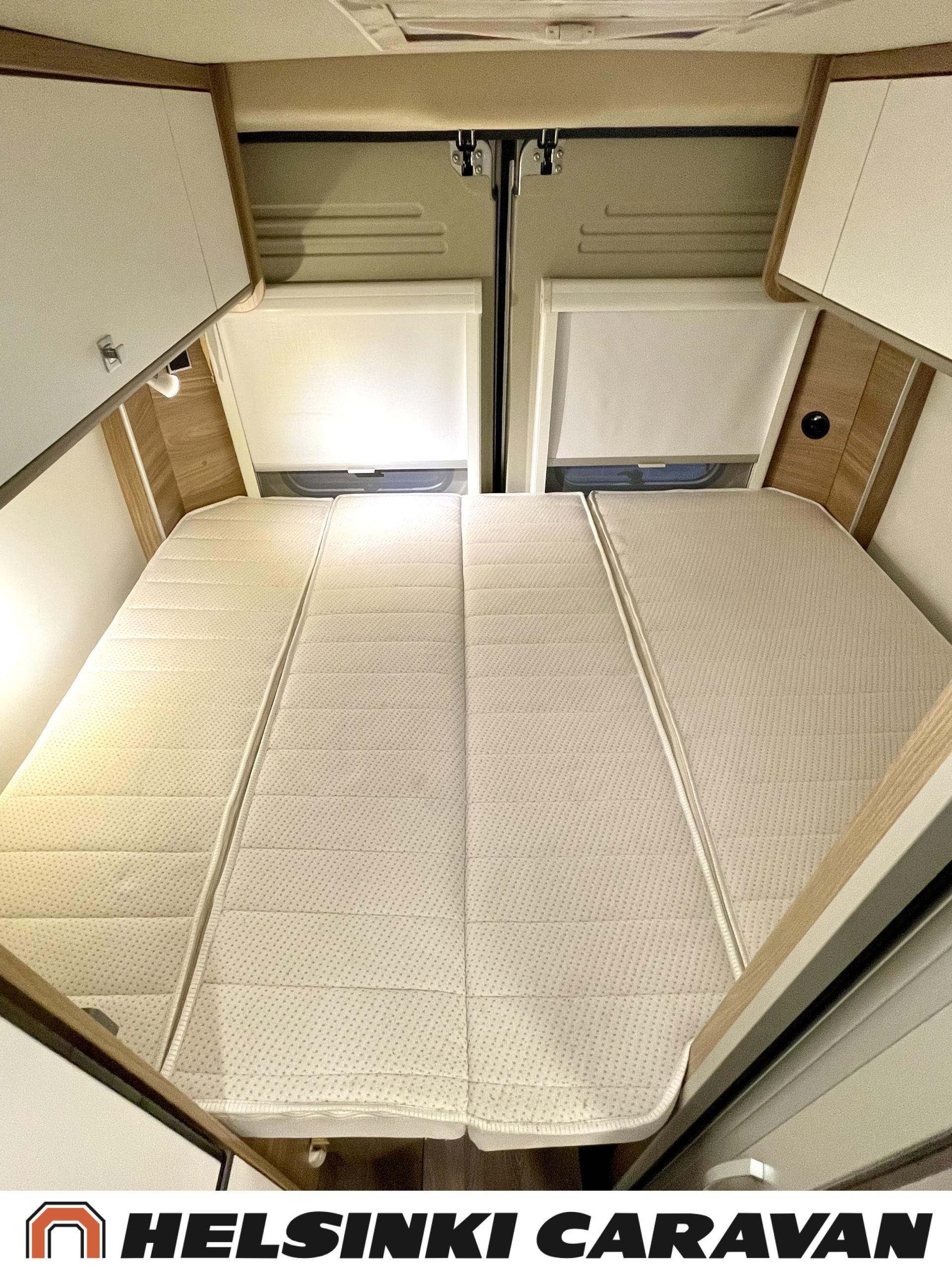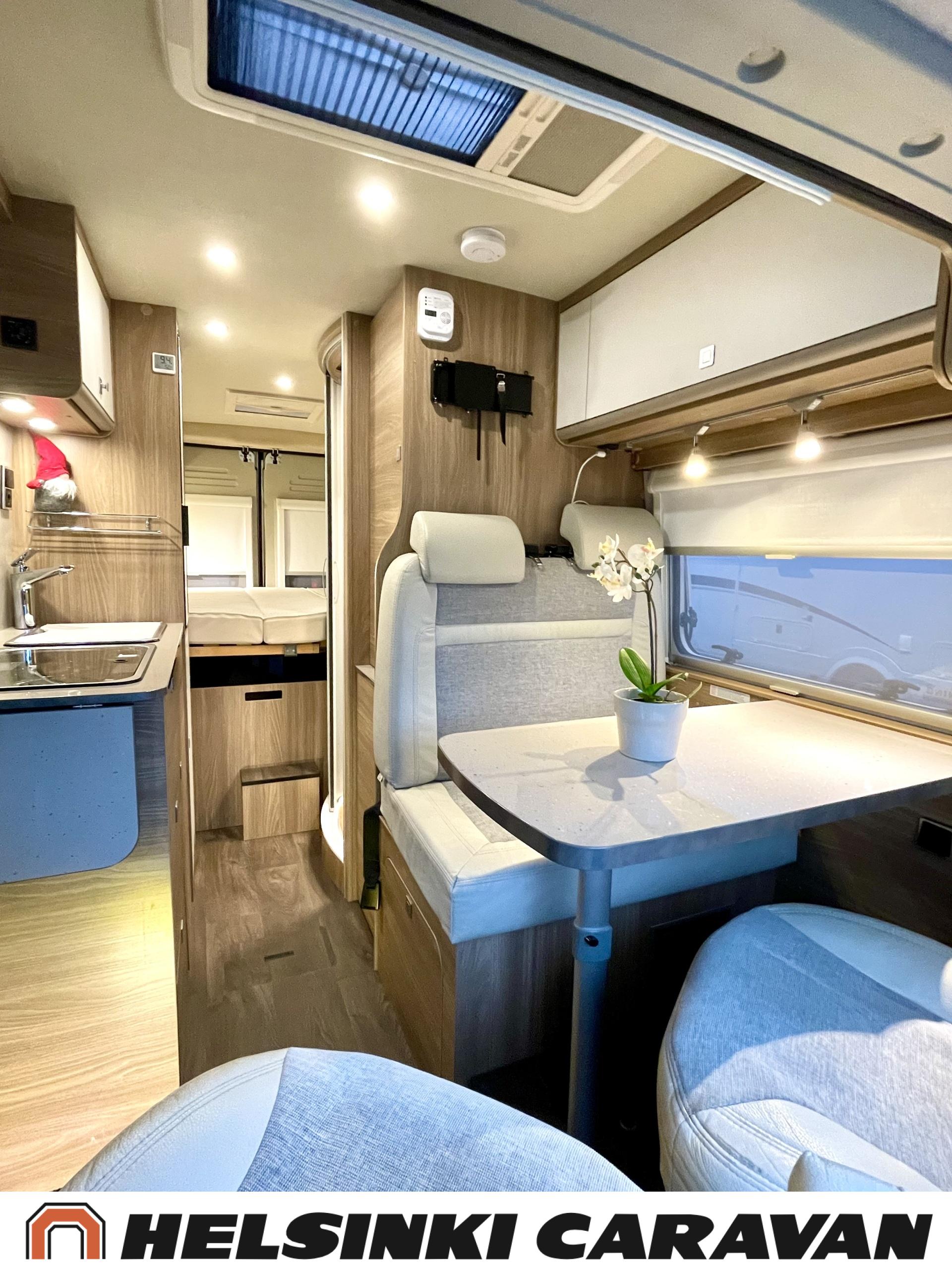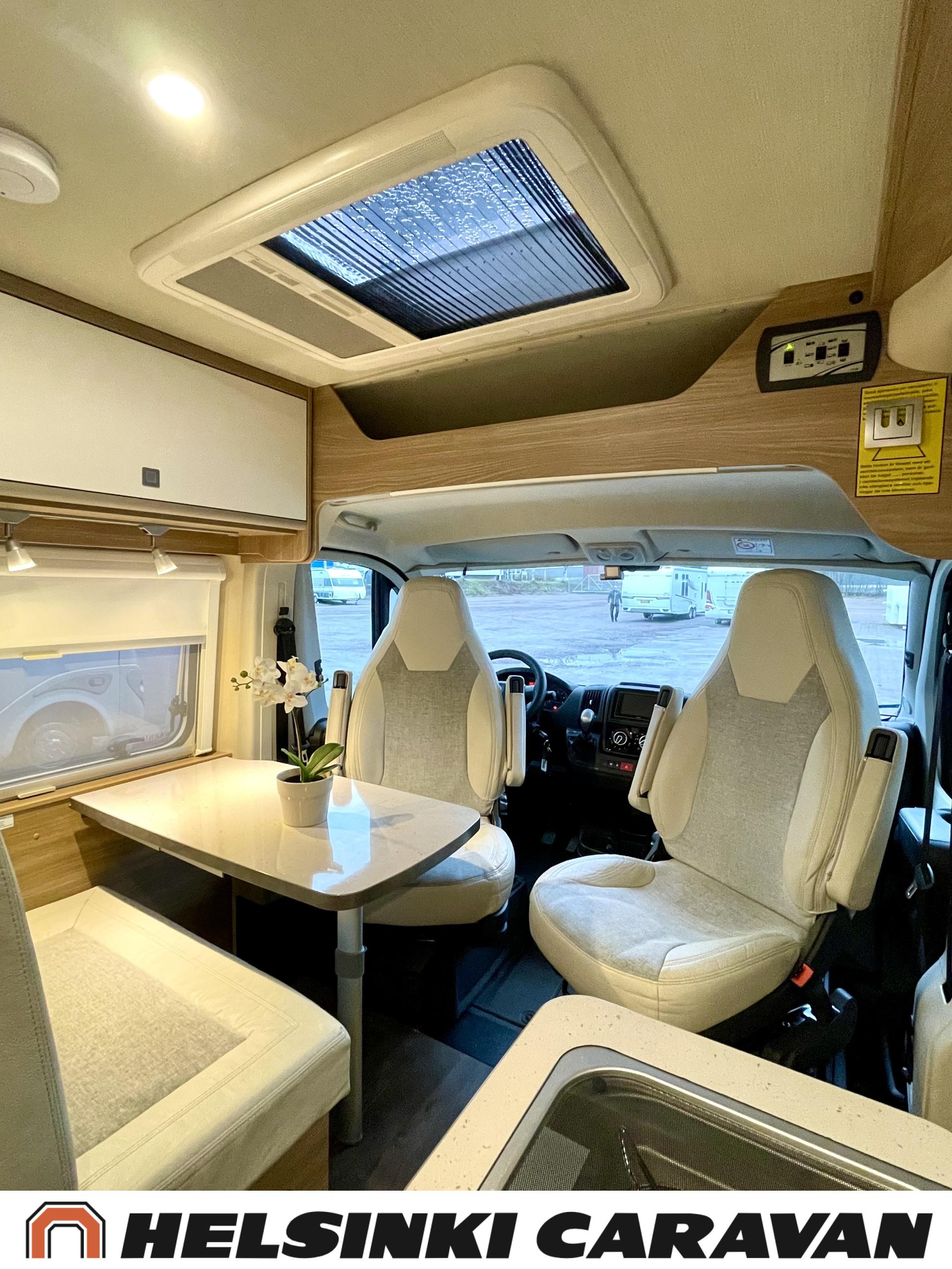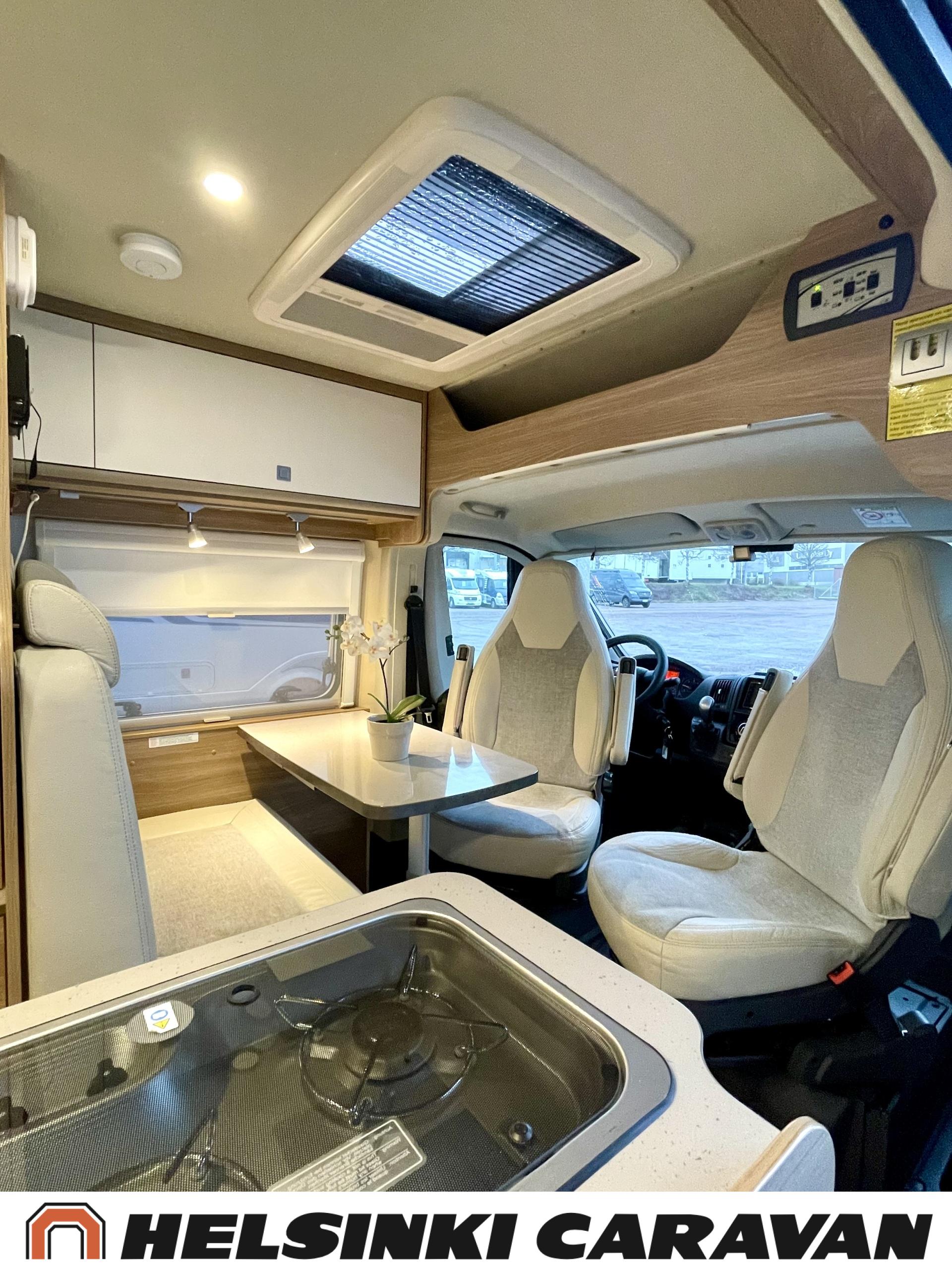 Kahdet renkaat, Suihku, Pesuallas, Markiisi, Liesi, Kasettiverhot, Kasetti- WC, Kaasupullonvaihtaja, Jääkaappi, Erillisvuoteet, Alde- nestekiertoinen keskuslämmitys, Eristetty harmaavesisäiliö, Ilmastointi ajotilassa, Kattoluukku, Lohkolämmitin, Lämminvesiboileri, Nestekiertolämmitys, Pakastelokero, Pysäköintikamera, Sähkökäyttöiset ikkunat, Sähköpatruuna, Sähköpeilit, Vakionopeudensäädin, Lattialämmitys (nestekierto), Ilmastointi (asuintila), 2 (ok) renkaat, Kesärenkaat, Talvirenkaat(nasta), Tupla-akut, Invertteri, 2 x kevytmet.vanteet, kwh-mittari, harmaavesisäiliön lämmitys, pullonvaihtaja, kaasun ulosotto, Multimedialaite (sis. p-kamera, navi, soitin, bluetooth, handsfree), Asuinosan hyttysovi/verho