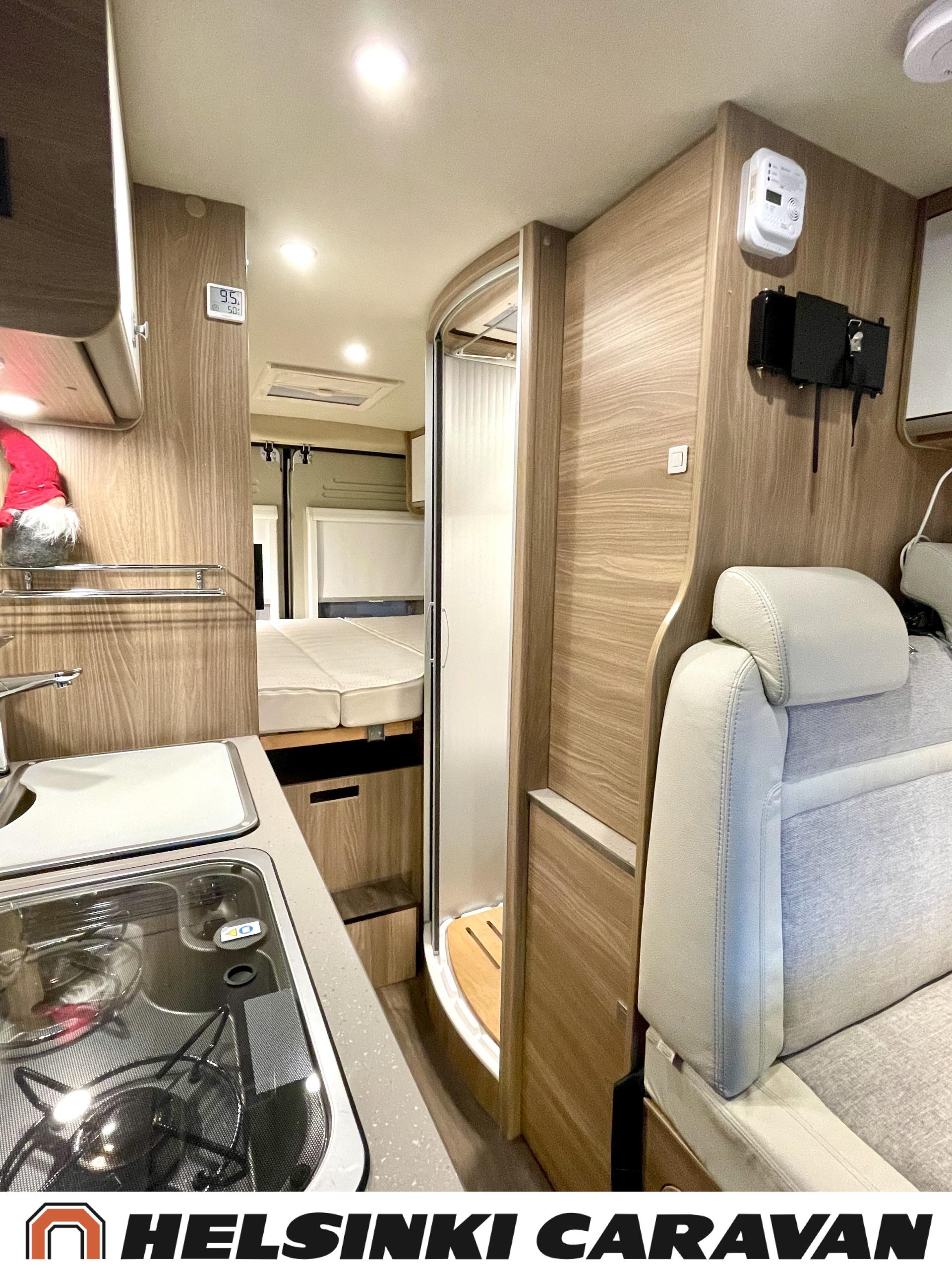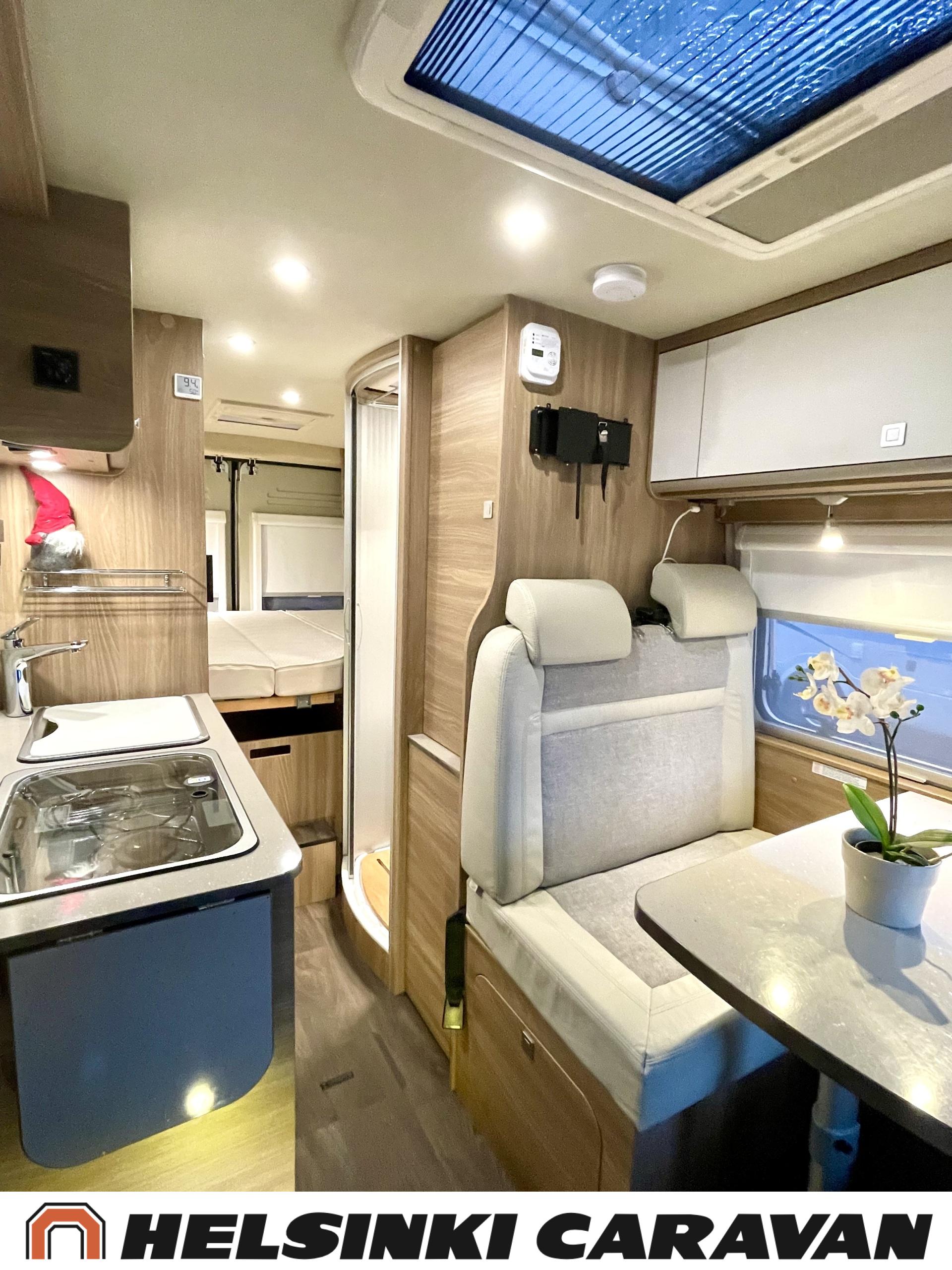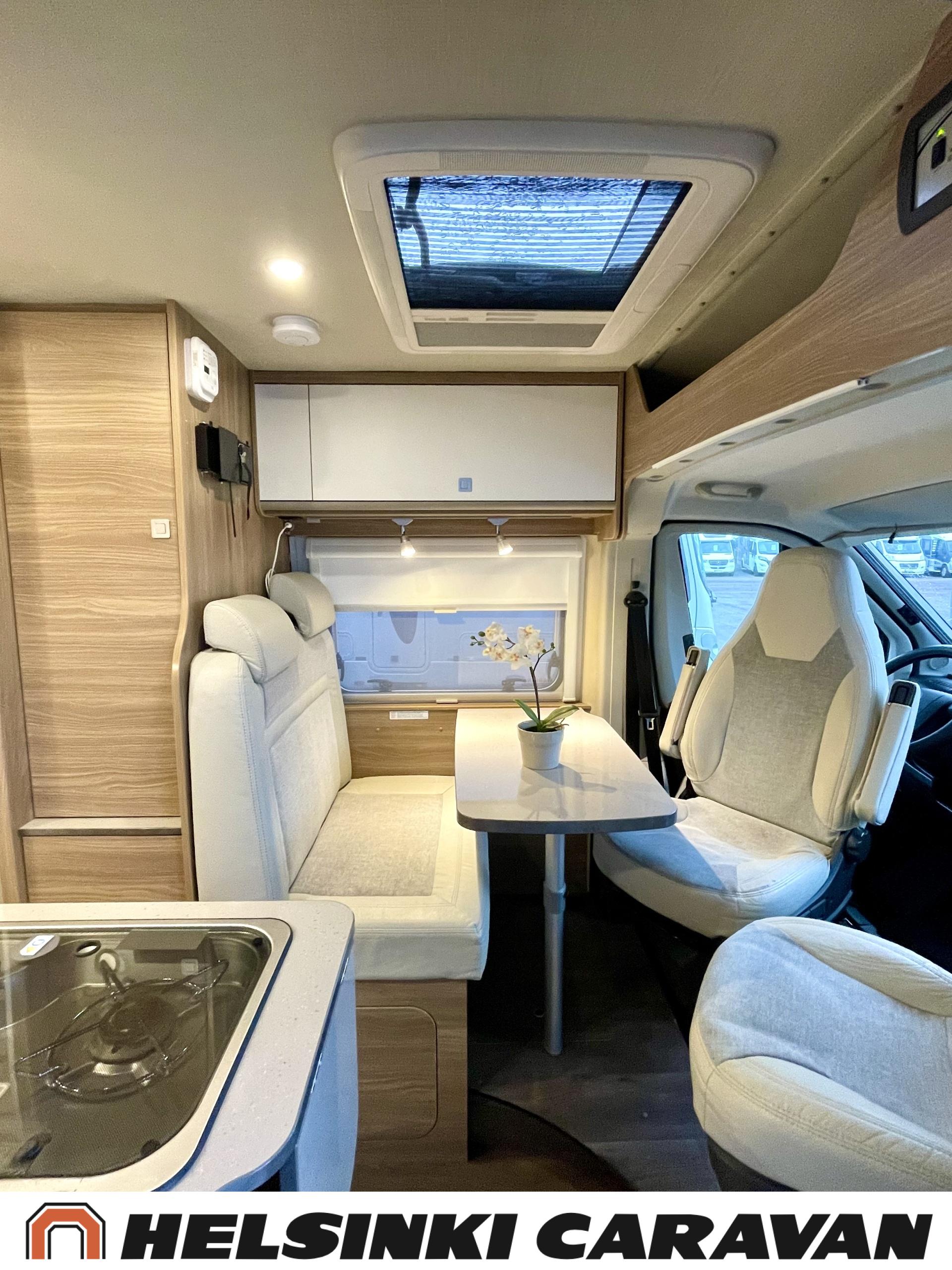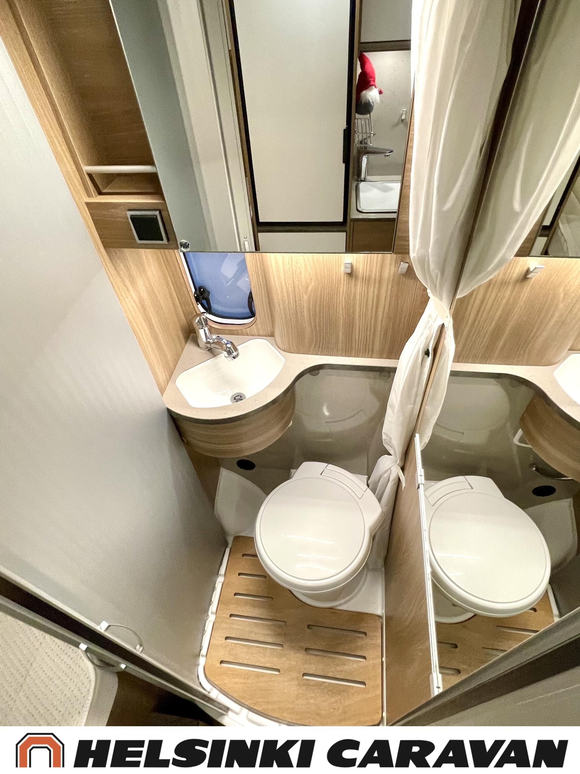 Kahdet renkaat, Suihku, Pesuallas, Markiisi, Liesi, Kasettiverhot, Kasetti- WC, Kaasupullonvaihtaja, Jääkaappi, Erillisvuoteet, Alde- nestekiertoinen keskuslämmitys, Eristetty harmaavesisäiliö, Ilmastointi ajotilassa, Kattoluukku, Lohkolämmitin, Lämminvesiboileri, Nestekiertolämmitys, Pakastelokero, Pysäköintikamera, Sähkökäyttöiset ikkunat, Sähköpatruuna, Sähköpeilit, Vakionopeudensäädin, Lattialämmitys (nestekierto), Ilmastointi (asuintila), 2 (ok) renkaat, Kesärenkaat, Talvirenkaat(nasta), Tupla-akut, Invertteri, 2 x kevytmet.vanteet, kwh-mittari, harmaavesisäiliön lämmitys, pullonvaihtaja, kaasun ulosotto, Multimedialaite (sis. p-kamera, navi, soitin, bluetooth, handsfree), Asuinosan hyttysovi/verho