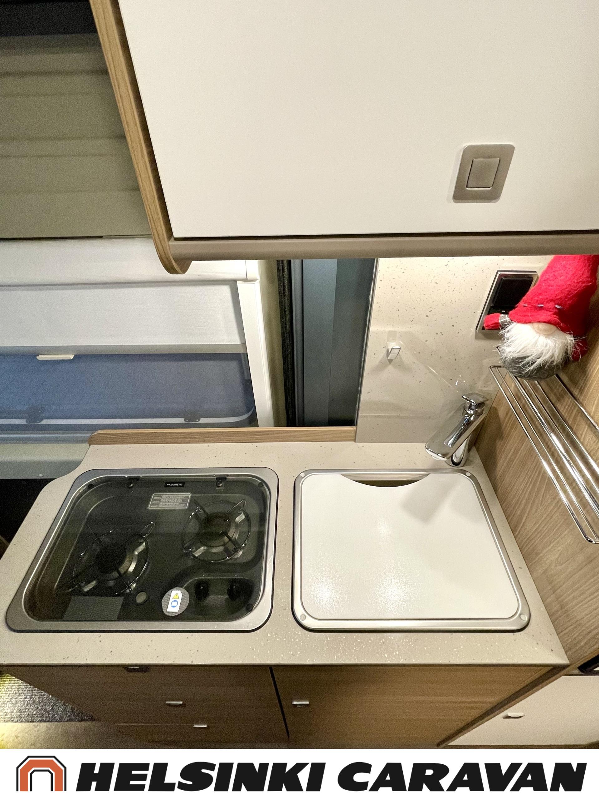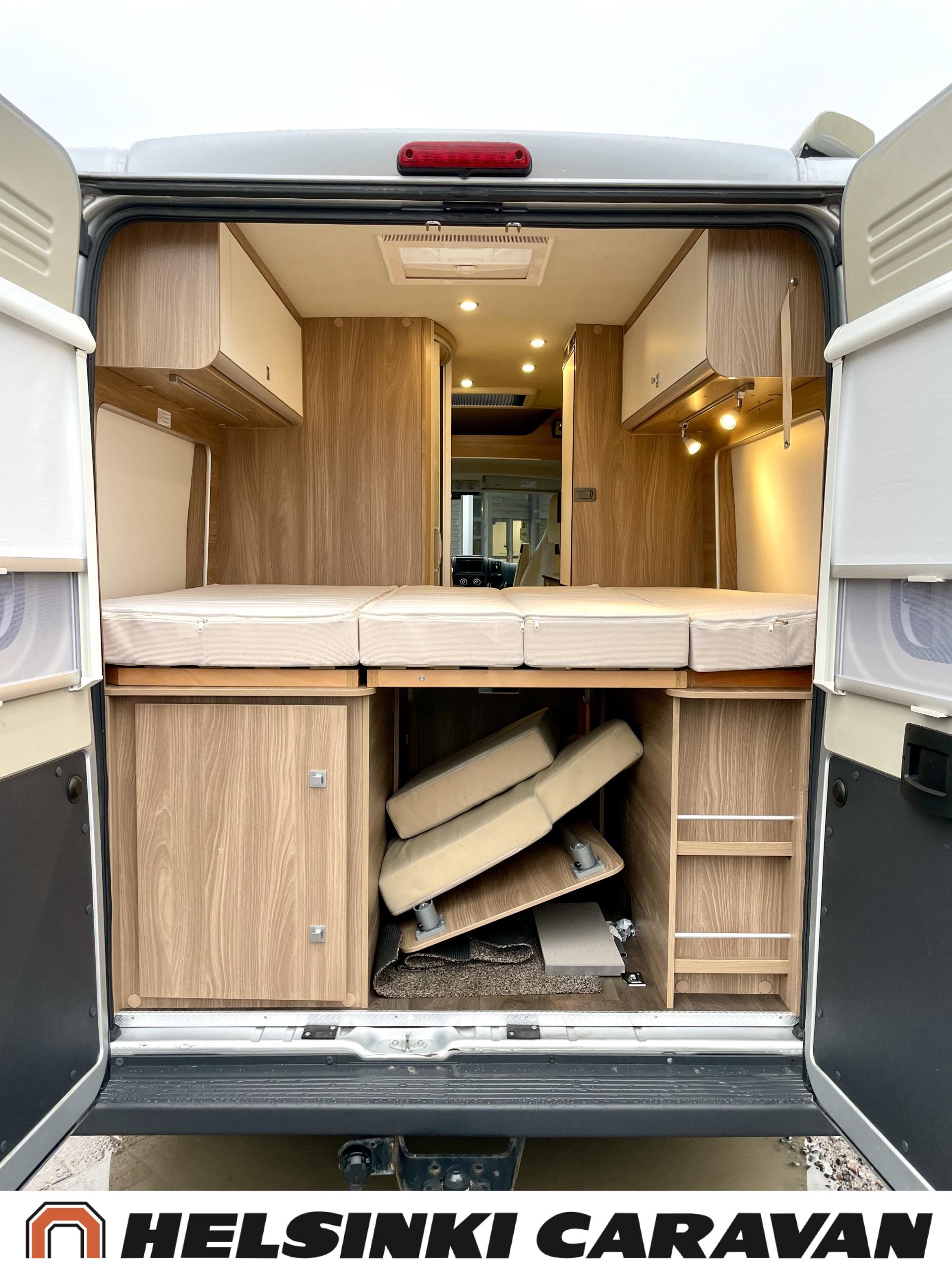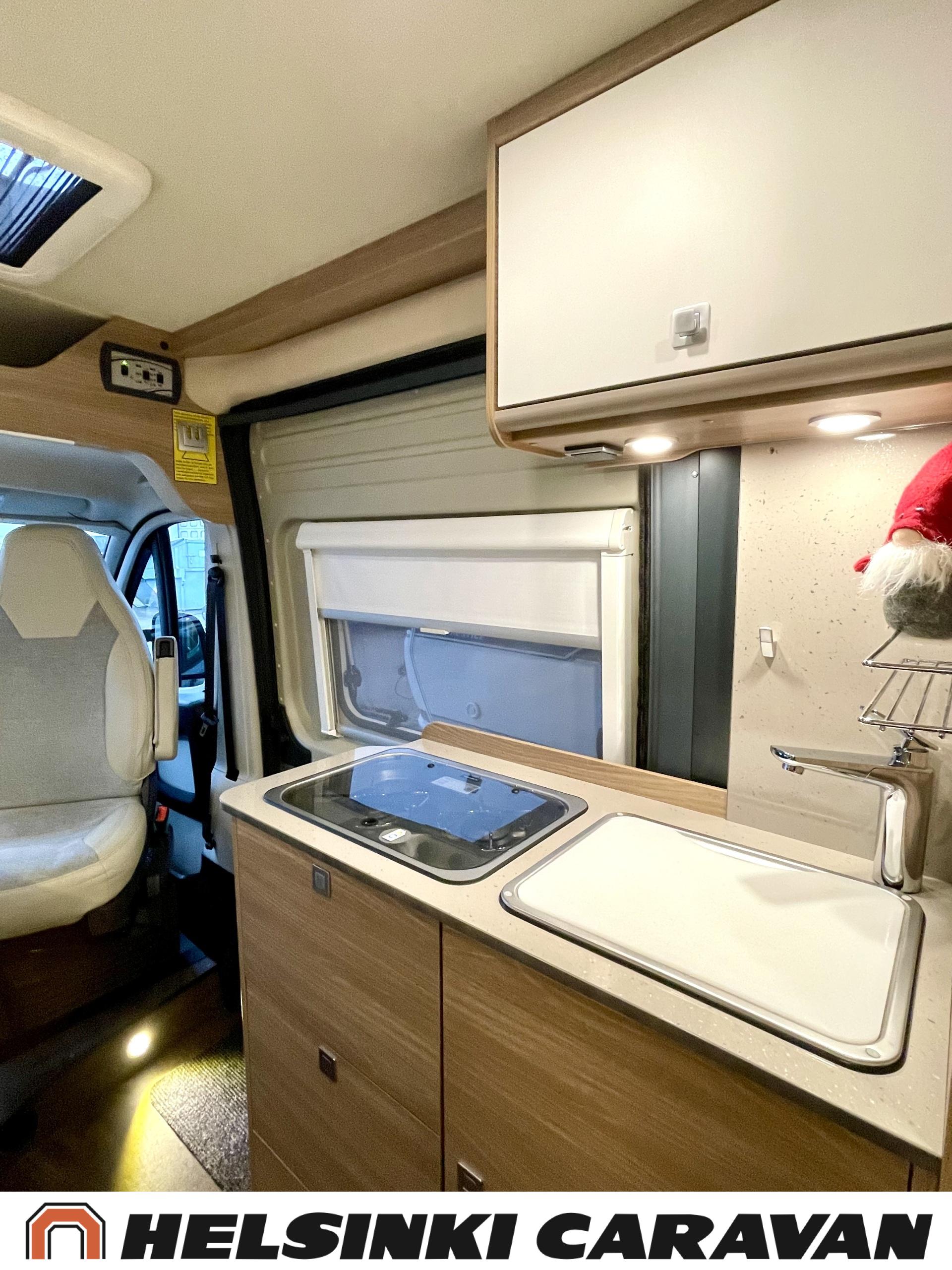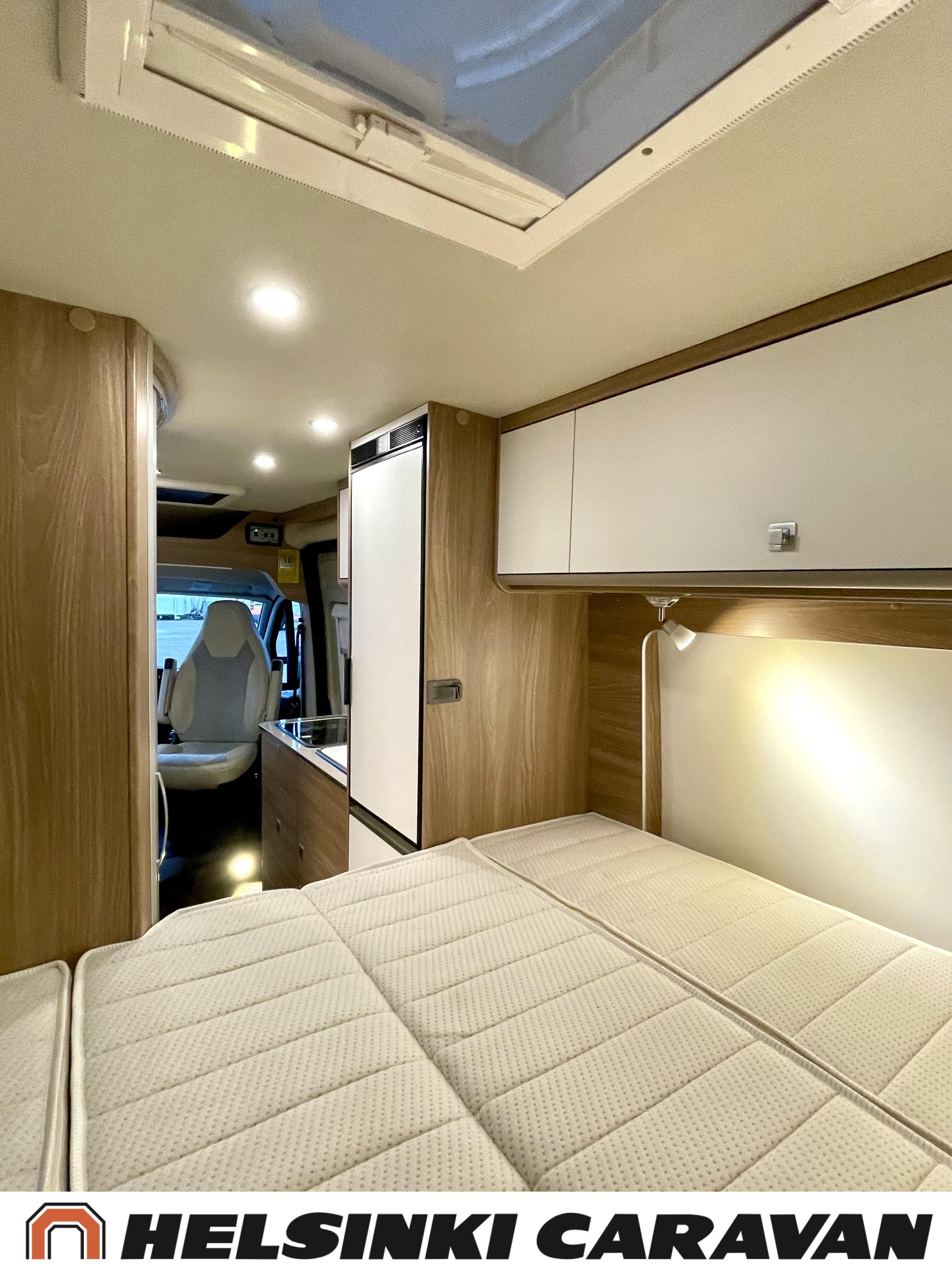 Kahdet renkaat, Suihku, Pesuallas, Markiisi, Liesi, Kasettiverhot, Kasetti- WC, Kaasupullonvaihtaja, Jääkaappi, Erillisvuoteet, Alde- nestekiertoinen keskuslämmitys, Eristetty harmaavesisäiliö, Ilmastointi ajotilassa, Kattoluukku, Lohkolämmitin, Lämminvesiboileri, Nestekiertolämmitys, Pakastelokero, Pysäköintikamera, Sähkökäyttöiset ikkunat, Sähköpatruuna, Sähköpeilit, Vakionopeudensäädin, Lattialämmitys (nestekierto), Ilmastointi (asuintila), 2 (ok) renkaat, Kesärenkaat, Talvirenkaat(nasta), Tupla-akut, Invertteri, 2 x kevytmet.vanteet, kwh-mittari, harmaavesisäiliön lämmitys, pullonvaihtaja, kaasun ulosotto, Multimedialaite (sis. p-kamera, navi, soitin, bluetooth, handsfree), Asuinosan hyttysovi/verho