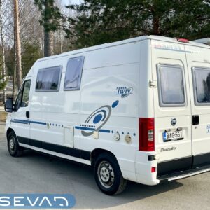 Jääkaappi, Kasetti WC, Kattoluukku, Liesi, Markiisi, Ohjaustehostin, Pakastelokero, Parivuode, Pesuallas, Suihku, Ilmastointi ajotilassa, Lämminvesiboileri, Radio, Sähkökäyttöiset ikkunat, Sähköpeilit, Trumatic, Kesärenkaat, kwh-mittari