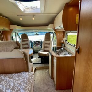 Kahdet renkaat, Tupla-akut, Pitkittäinen parivuode, Ohjaamoilmastointi- manuaalinen, Markiisi, Lattialämmitys- sähköinen, Trumatic, Asuinosan hyttysovi/verho, Vetokoukku, Vakionopeudensäädin, Sähkörappu, Sähköpeilit, Sähkökäyttöiset ikkunat, Sumuvalot, Suihku, Radio, Pyöräteline, Ohjaustehostin, Pakastelokero, Lohkolämmitin, Pesuallas, Kattoluukku, Jääkaappi, Ilmastointi: Manuaalinen, Ilmastointi ajotilassa, Kasetti WC, Kasettiverhot, liesituuletin, Lämminvesiboileri, Pysäköintikamera