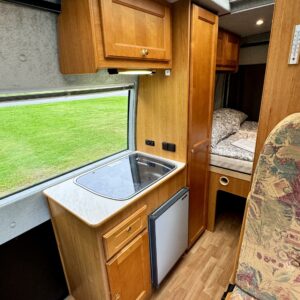 Poikittainen parivuode, Markiisi, Jääkaappi, Aurinkopaneeli, Kahdet renkaat, Kasetti WC, Kasettiverhot, Kattoluukku, Liesi, Pesuallas, Ohjaustehostin, Radio, Vetokoukku, Airbag, Polttoainekäyttöinen lisälämmitin