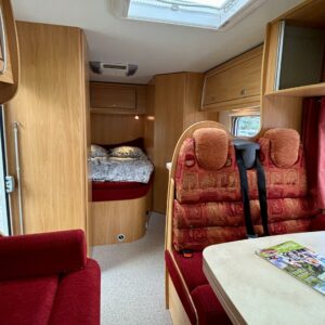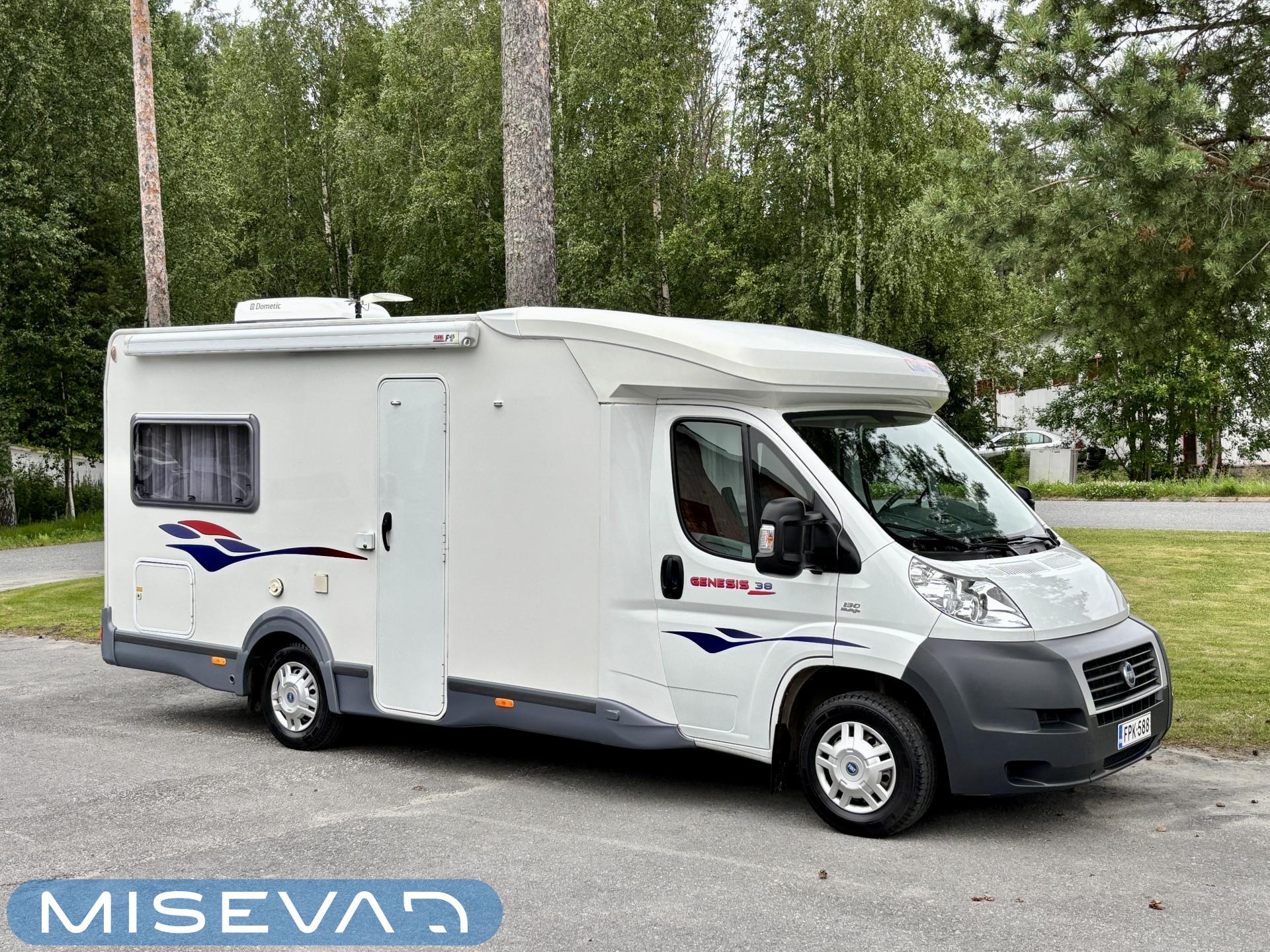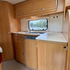 Trumatic- ilmapuhalluslämmitys, Pyöräteline, Pitkittäinen parivuode, Ohjaamoilmastointi- manuaalinen, Markiisi, Lämminvesiboileri, Asuintilan ilmastointi, ABS-jarrut, CD-soitin, Jääkaappi, Kasetti WC, Kasettiverhot, Kattoluukku, Keskuslämmitys, Liesi, Ohjaustehostin, Pakastelokero, Pesuallas, Suihku, Turbo, Kesärenkaat