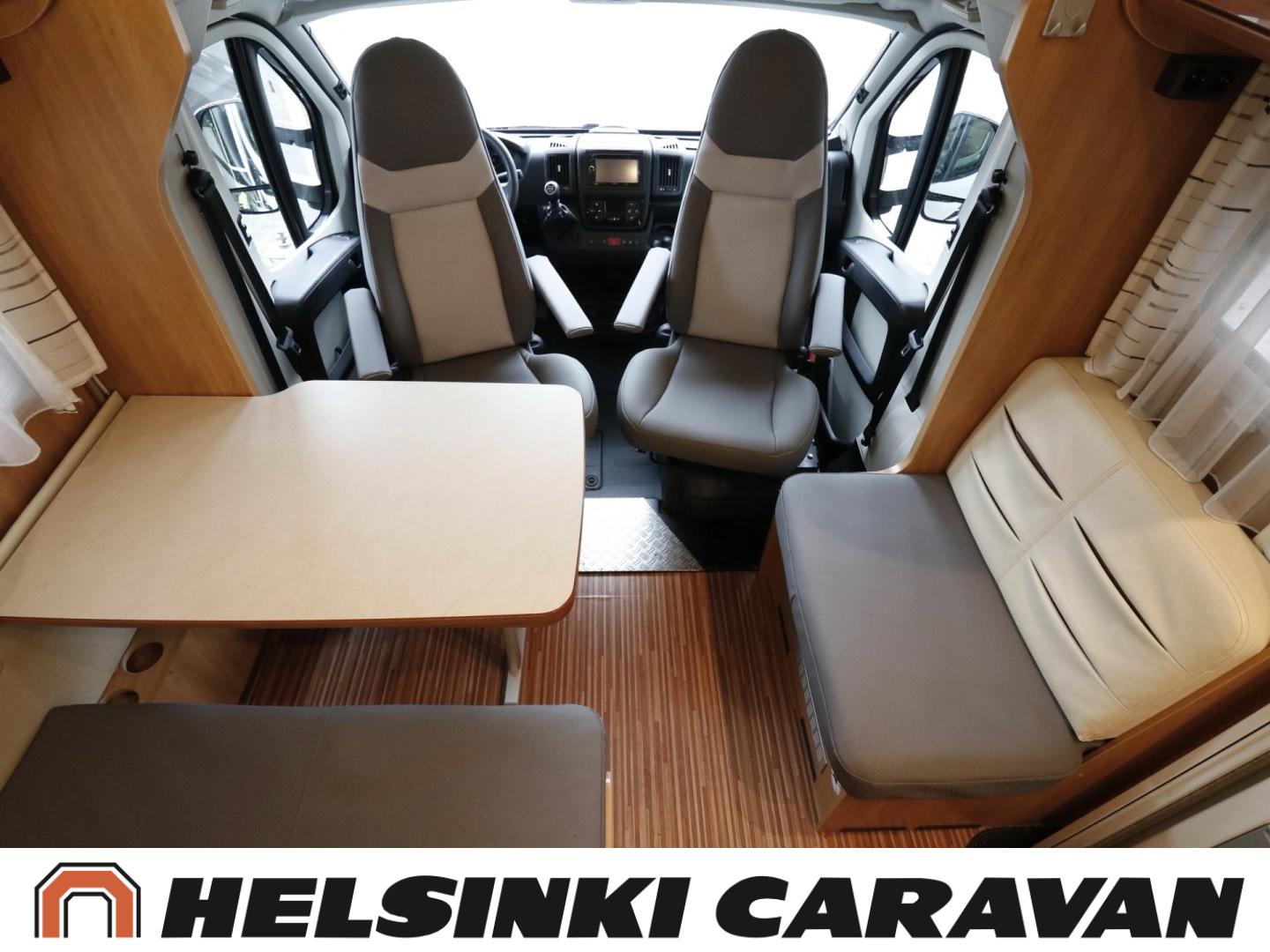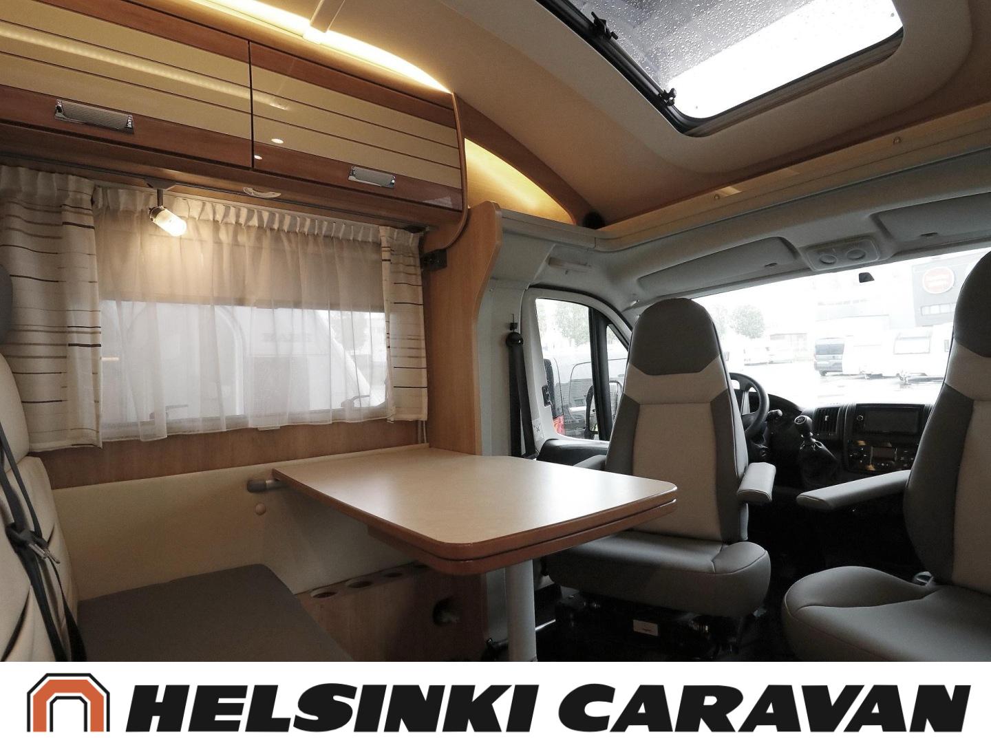 Alde, Bluetooth, Ilmastointi ajotilassa, Jääkaappi, Kaasu-uuni, Kasetti WC, Kasettiverhot, Kattoluukku, Lattialämmitys, Lämminvesiboileri, Lohkolämmitin, Markiisi, Nahkasisusta, Nestekiertolämmitys, Ohjaustehostin, Pakastelokero, Parivuode, Pesuallas, Pysäköintikamera, Pyöräteline, Suihku, Sähköpatruuna, Sähköpeilit, Sähkörappu, Vakionopeudensäädin, Vetokoukku, Aurinkopaneeli, Keskuslukitus: Kaukosäätöinen, kaasun ulosotto