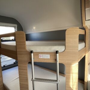 Alde, Jääkaappi, Kaasu-uuni, Kasetti WC, Kattoluukku, Kerrossänky, Lattiamatot asunto-osassa, Liesi, Mikroaaltouuni, Nestekiertolämmitys, Pakastelokero, Parivuode, Pesuallas, Suihku, TV-antenni tai lautasantenni, Tukijalat, Lattialämmitys (nestekierto), Tiiveystakuu voimassa, pullonvaihtaja, sähkön ulosotto, televisioteline, Ilmastointi: Automaattinen, Sähköpatruuna, Lämminvesiboileri, Erikoisvanteet, Kasettiverhot