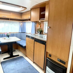 Jääkaappi, Kasetti WC, Kasettiverhot, Kattoluukku, Liesi, Lämminvesiboileri, Markiisi, Pakastelokero, Parivuode, Pesuallas, Sähköpatruuna, Trumatic, kaasun ulosotto, Asuinosan hyttysovi/verho