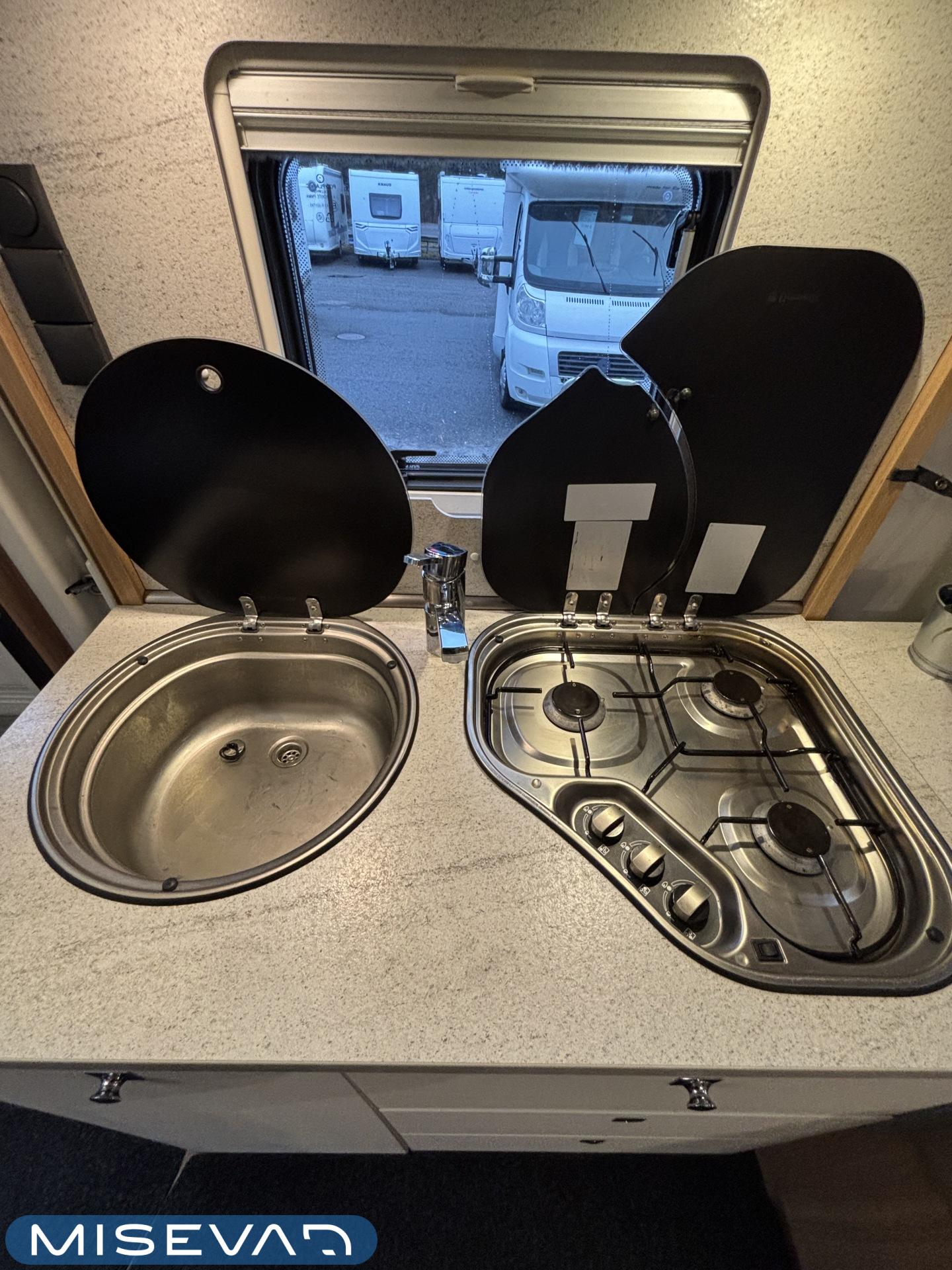 Pyöräteline, Pitkittäinen parivuode, Lämmönvaihdin, Lohkolämmitin, Alde- nestekiertoinen keskuslämmitys, Alde lämmönvaihdin, Lattialämmitys, ABS-jarrut, Airbag, Ajotietokone, Erikoisvanteet, Ilmastointi ajotilassa, Jääkaappi, Kahdet renkaat, Kasetti WC, Kasettiverhot, Kattoluukku, Keskuslukitus: Kaukosäätöinen, Keskuslämmitys, Lattiamatot asunto-osassa, Liesi, Luistonesto, Lämminvesiboileri, Navigaattori, Nestekiertolämmitys, Ohjaustehostin, Pakastelokero, Pesuallas, Polttoainekäyttöinen lisälämmitin, Pysäköintikamera, Radio, Suihku, Sähkökäyttöiset ikkunat, Sähköpatruuna, Sähköpeilit, Sähkörappu, Turbo, Vakionopeudensäädin, 2 (ok) renkaat, Talvirenkaat(nasta), Tupla-akut, Eristetty harmaavesisäiliö, Multimedialaite (sis. p-kamera, navi, soitin, bluetooth, handsfree), Asuinosan hyttysovi/verho