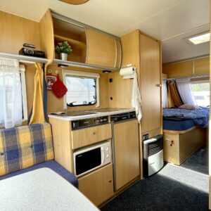 CD-soitin, Erillisvuoteet, Trumatic, Jääkaappi, Kasetti WC, Kasettiverhot, Kattoluukku, Liesi, Lämminvesiboileri, Markiisi, Pakastelokero, Pesuallas, TV-antenni tai lautasantenni, Tukijalat, Mikroaaltouuni, kwh-mittari