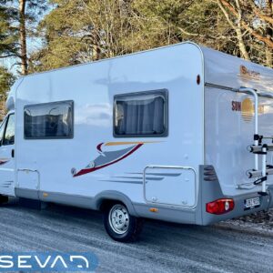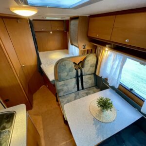 Truma, Jääkaappi, Kasetti WC, Kasettiverhot, Kattoluukku, Liesi, Lohkolämmitin, Lämminvesiboileri, Markiisi, Mikroaaltouuni, Ohjaustehostin, Pakastelokero, Parivuode, Pesuallas, Pyöräteline, Radio, Sähkökäyttöiset ikkunat, Sähköpeilit, TV-antenni tai lautasantenni, Turbo, Ilmastointi (ohjaamo)
