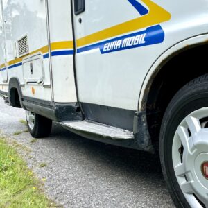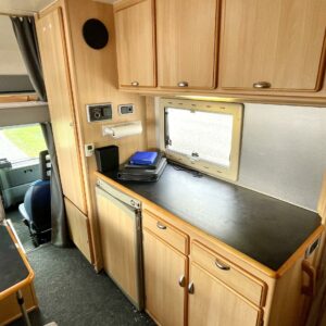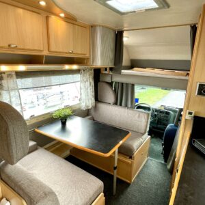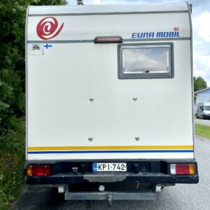 Truma, Jääkaappi, Kaasu-uuni, Kasetti WC, Kattoluukku, Liesi, Lohkolämmitin, Lämminvesiboileri, Markiisi, Ohjaustehostin, Pakastelokero, Pesuallas, Radio, Sähkörappu, Tuplapohja, Turbo, Vetokoukku