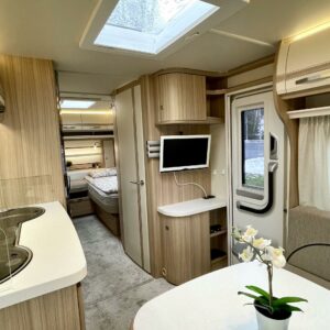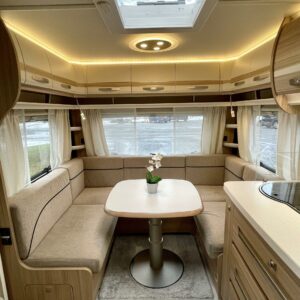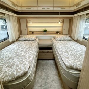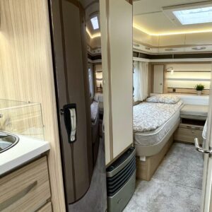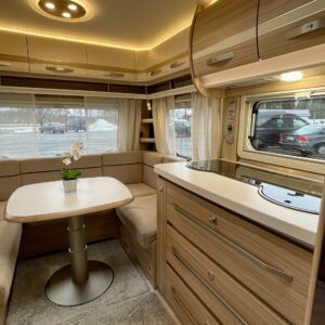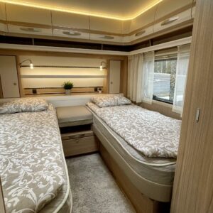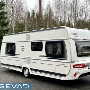 Markiisi, Kasetti WC, Kasettiverhot, Trumatic, Jääkaappi, Pakastelokero, Erillisvuoteet, Lattiamatot asunto-osassa, Kattoluukku, TV-antenni tai lautasantenni, Liesi, Lattialämmitys, Lämminvesiboileri, Pesuallas, Sähköpatruuna, Tukijalat, Mikroaaltouuni