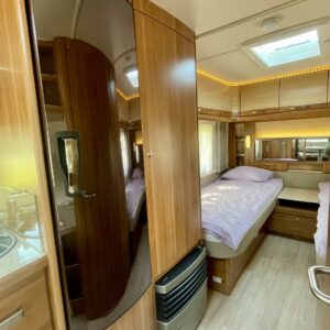 Erikoisvanteet, Erillisvuoteet, Kasettiverhot, Kasetti WC, Jääkaappi, Kattoluukku, Lattialämmitys, Liesi, Lämminvesiboileri, Markiisi, Pakastelokero, Pesuallas, Trumatic, Tukijalat, TV-antenni tai lautasantenni, Sähköpatruuna, Suihku